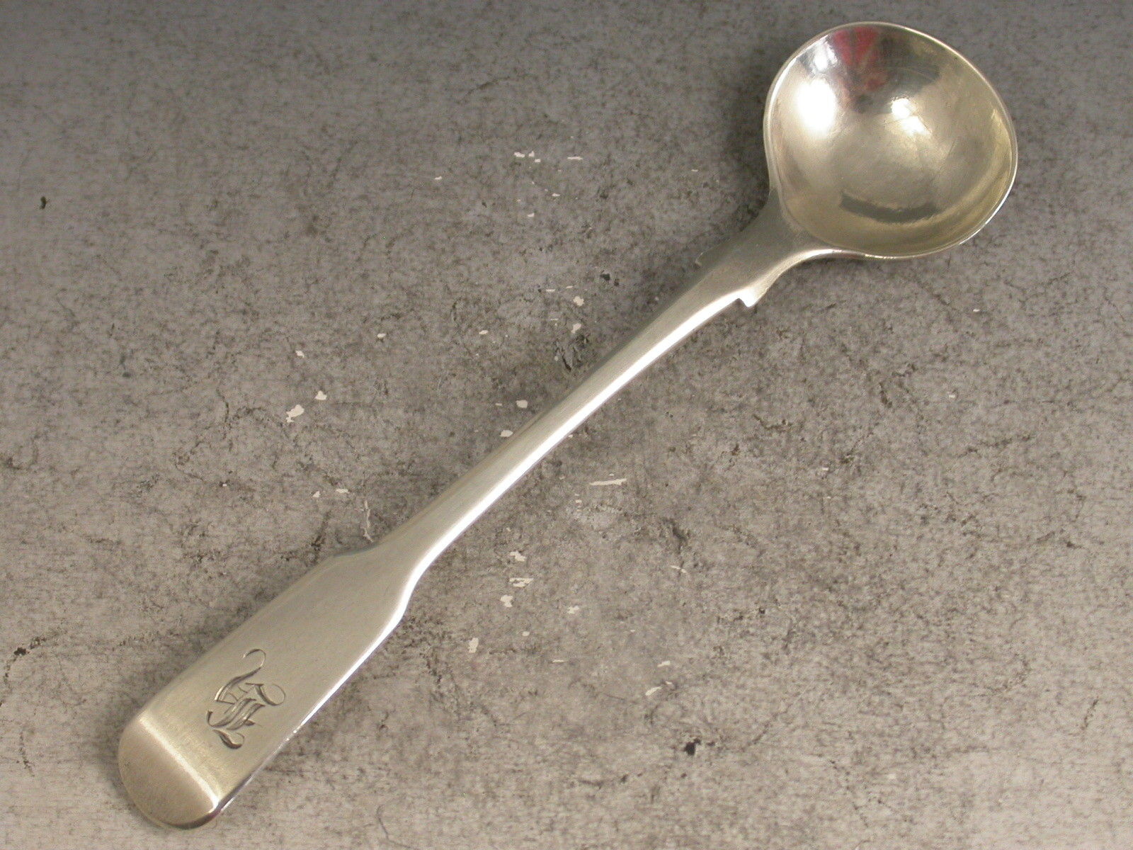 A George III Provincial silver Salt Spoon of plain fiddle pattern, the handle engraved with a contemporary initial H.