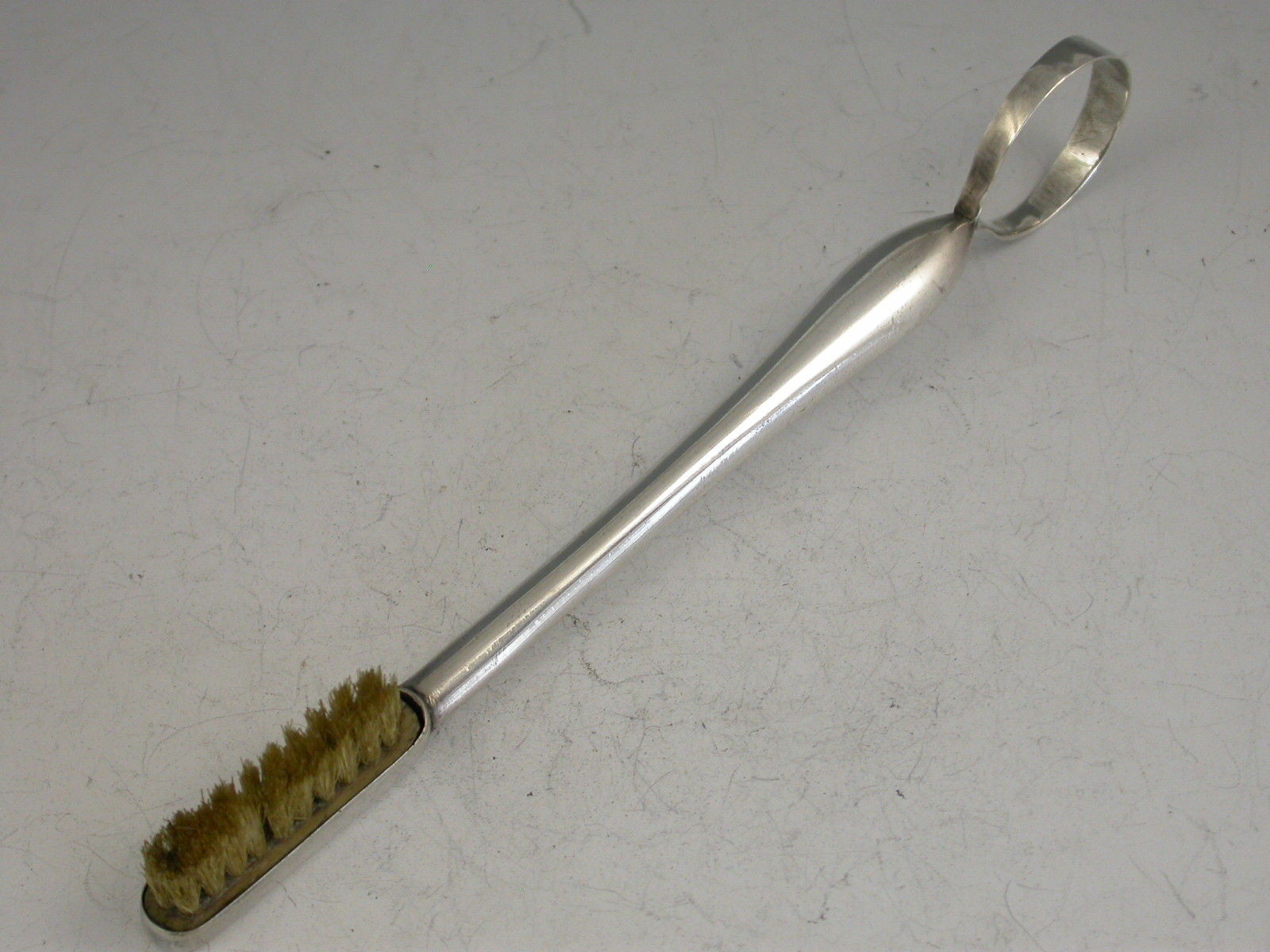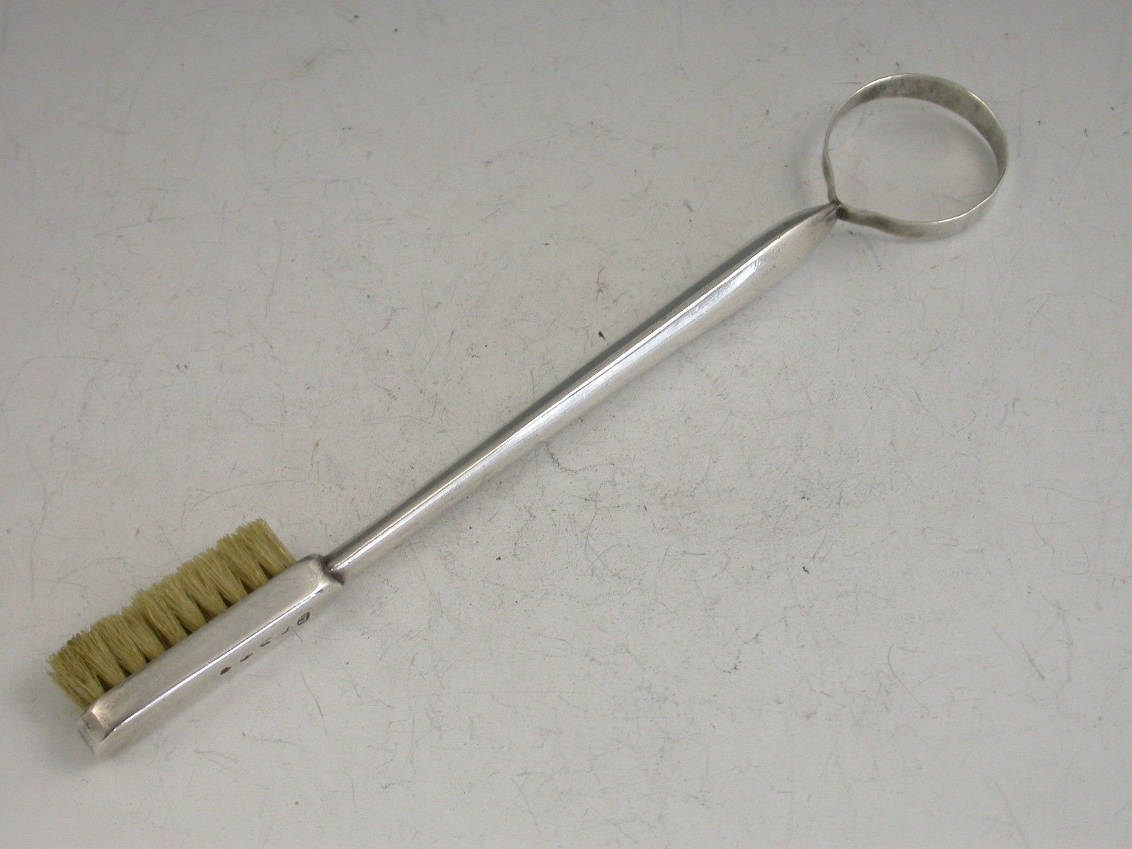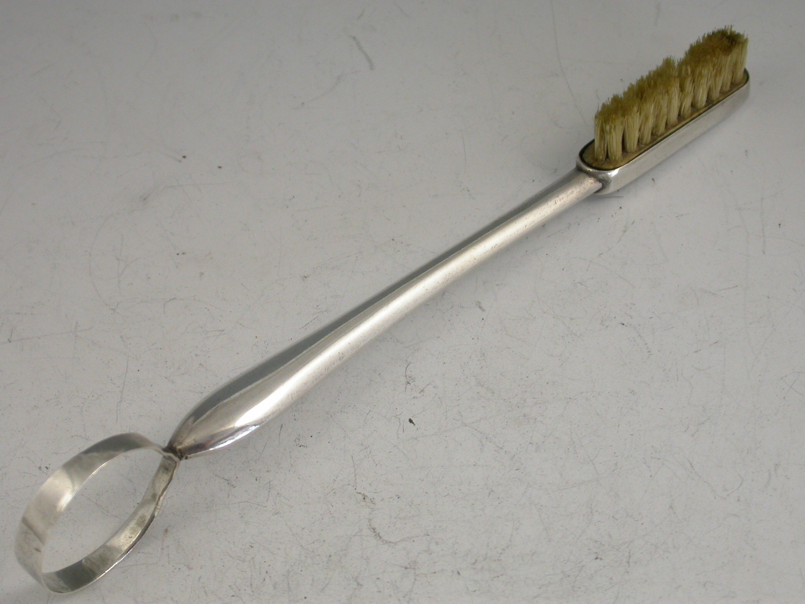 An extremely rare George III silver combination toothbrush and tongue scraper.