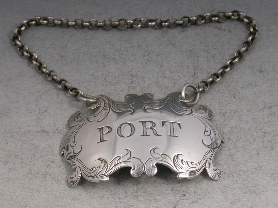 George III Antique Silver Engraved Escutcheon Wine Label 'Port'