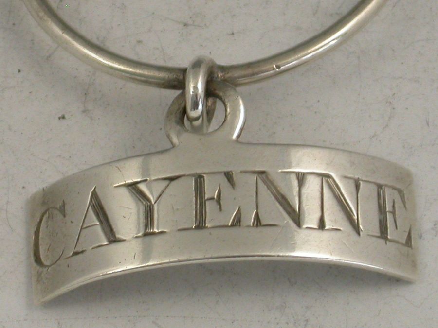 George III Antique Silver Neck Ring Sauce Label 'Cayenne'