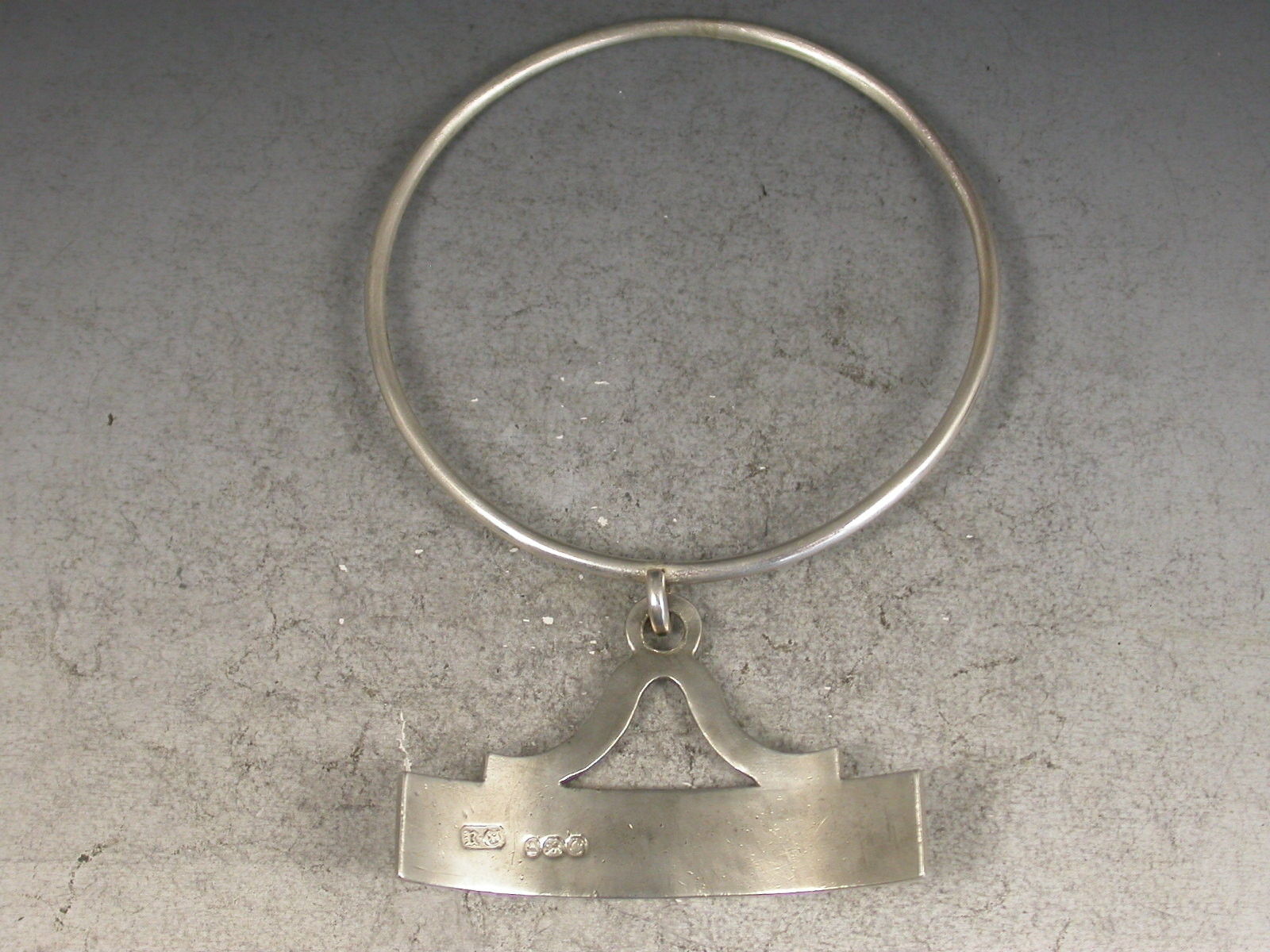 A George III silver Wine Label of narrow rectangular form with pierced domed surmount and solid circular silver wire neck-ring support, incised for Madeira.