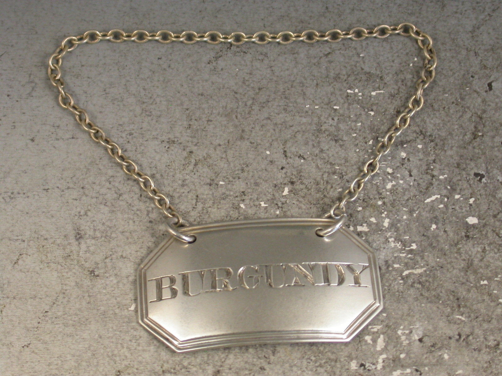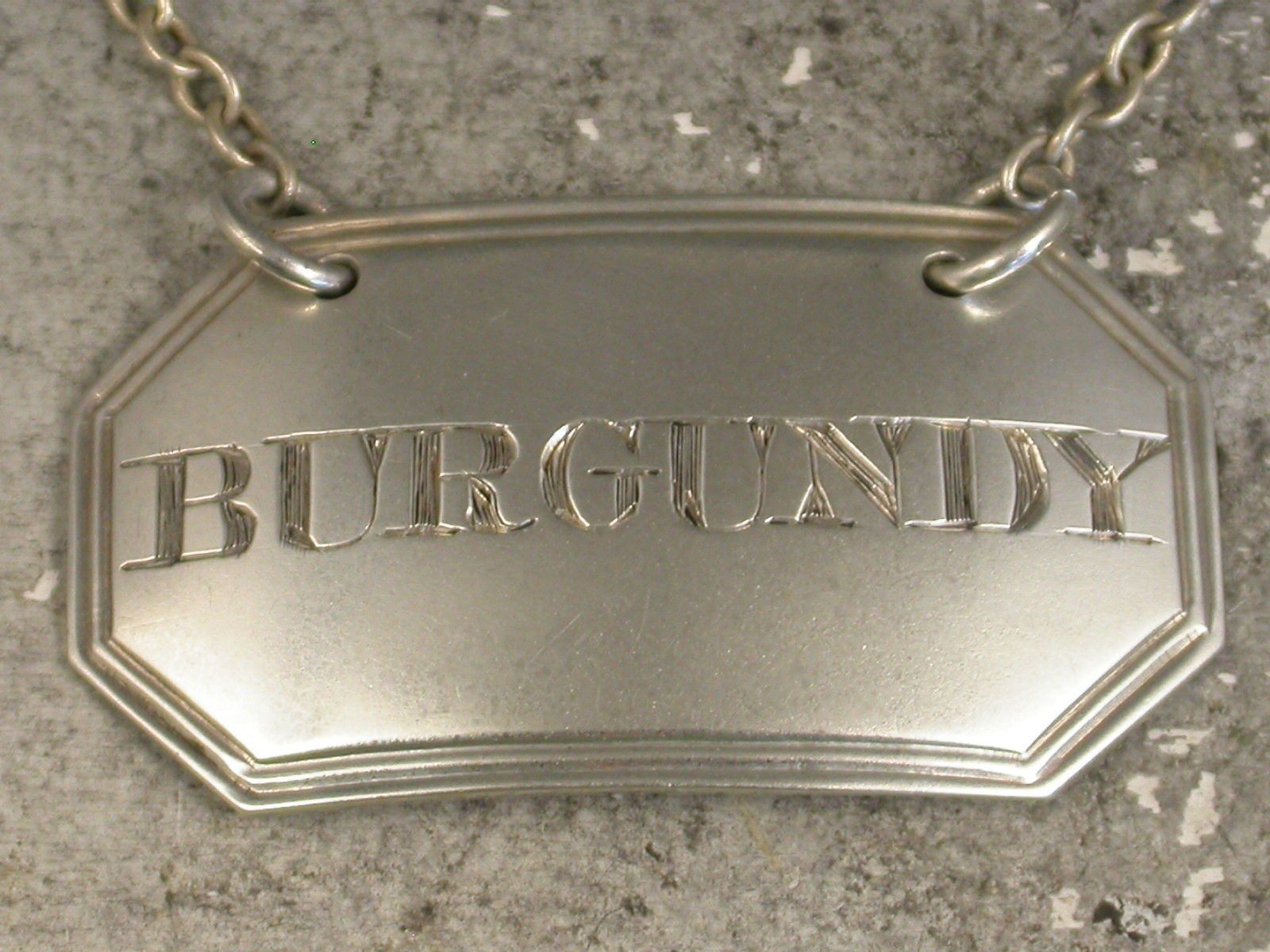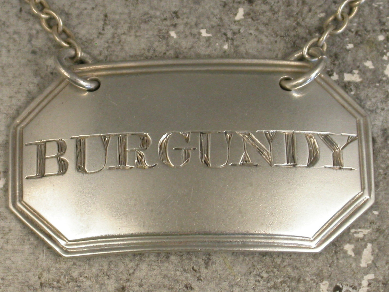 A George III silver Wine Label of plain rectangualr form with cut-corners and double reeded border, incised for Burgundy.