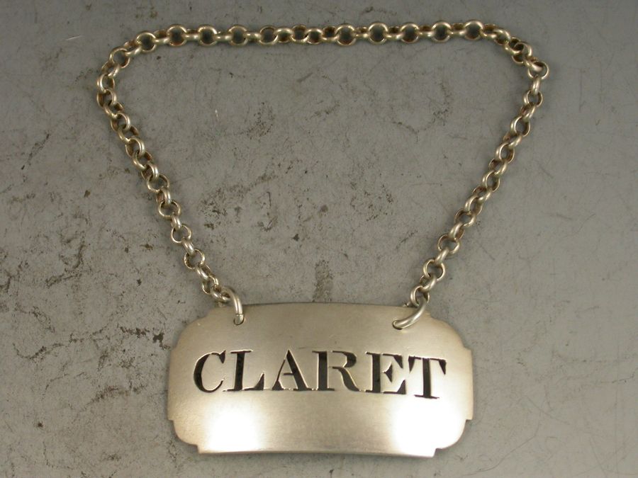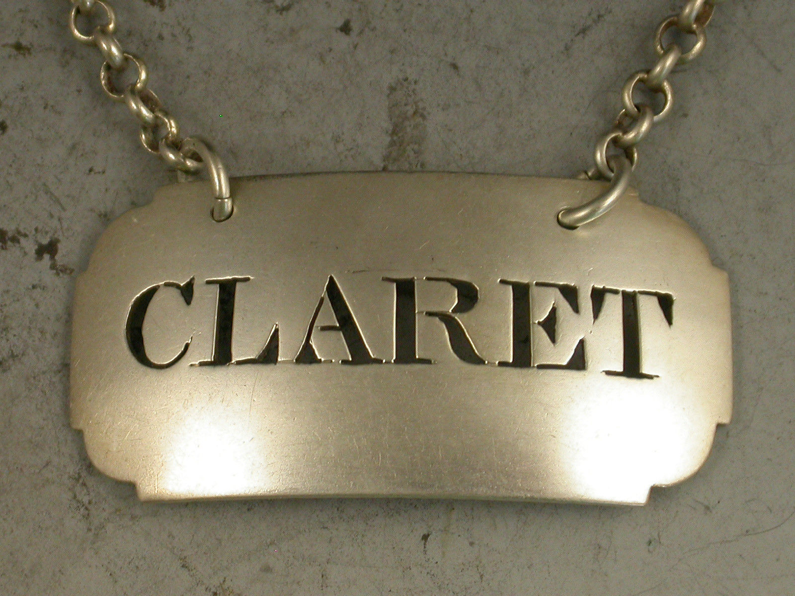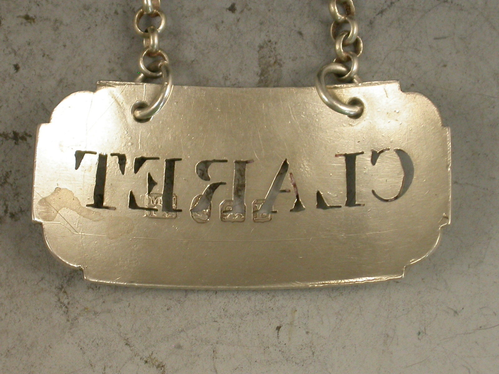 A rare George III silver Wine Label of plain rectangular form with convex stepped cut-corners, pierced for Claret.