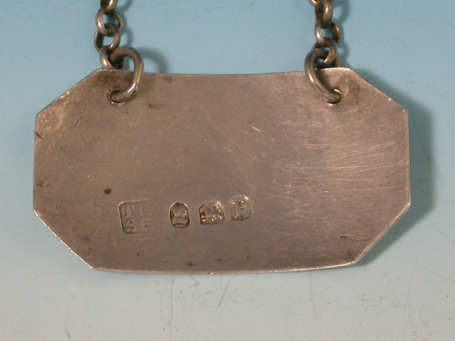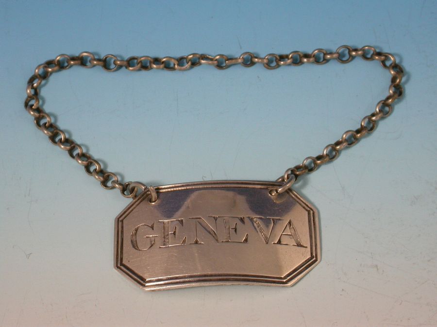 A rare George III silver Wine Label of rectangular form with cut-corners and double reeded border, incised for Geneva (Dutch Gin).