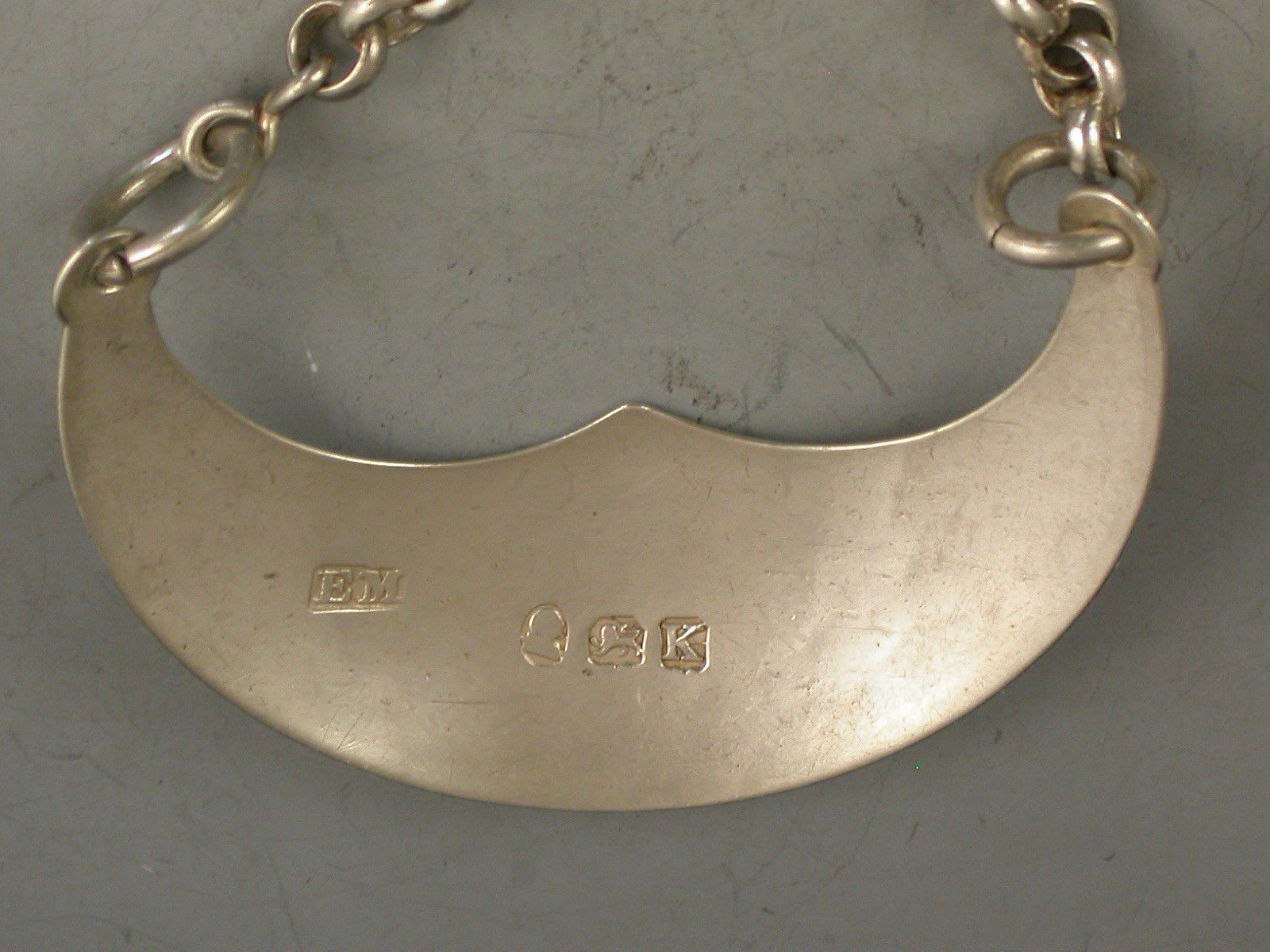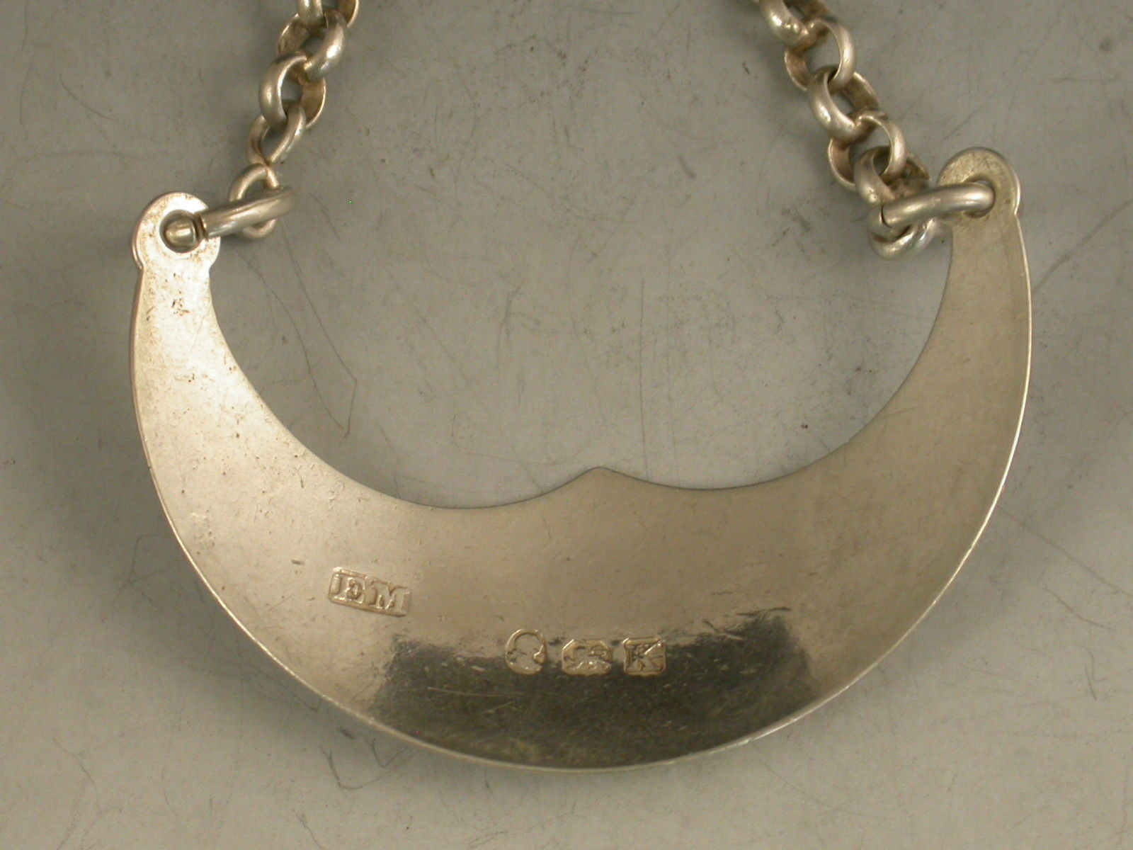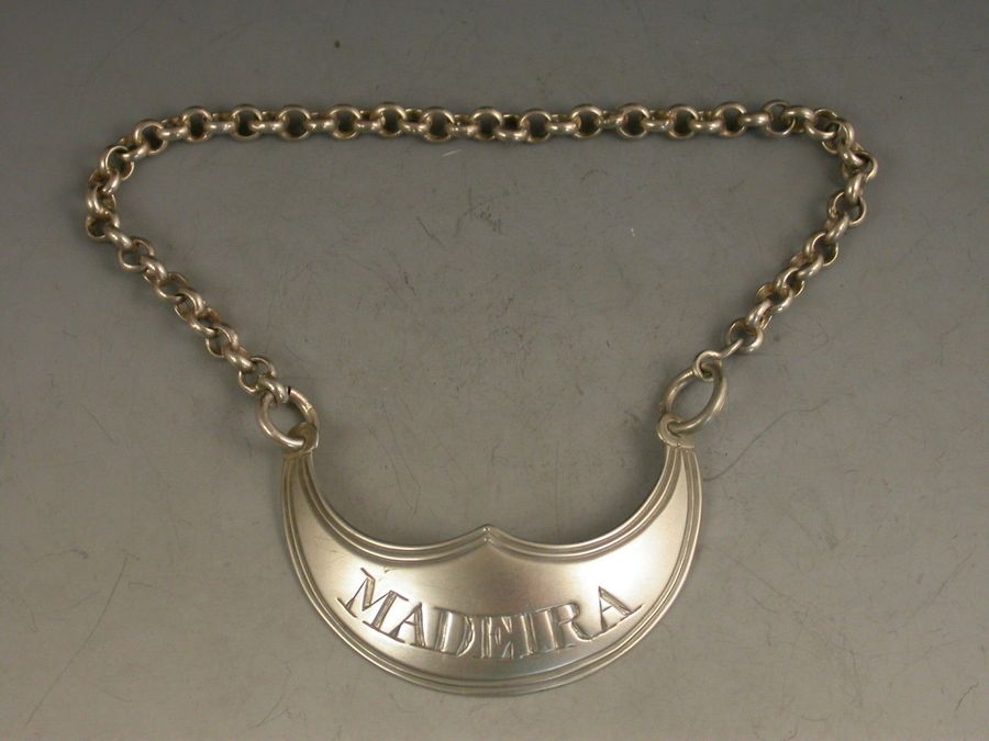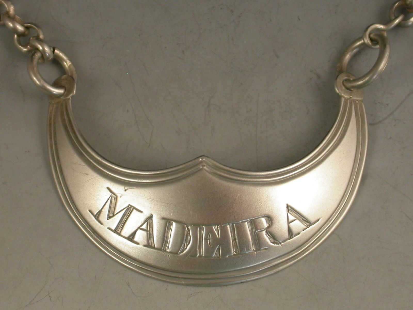 A good George III silver Wine Label of 'peaked' crescent form with double reeded border, incised for Madeira.
