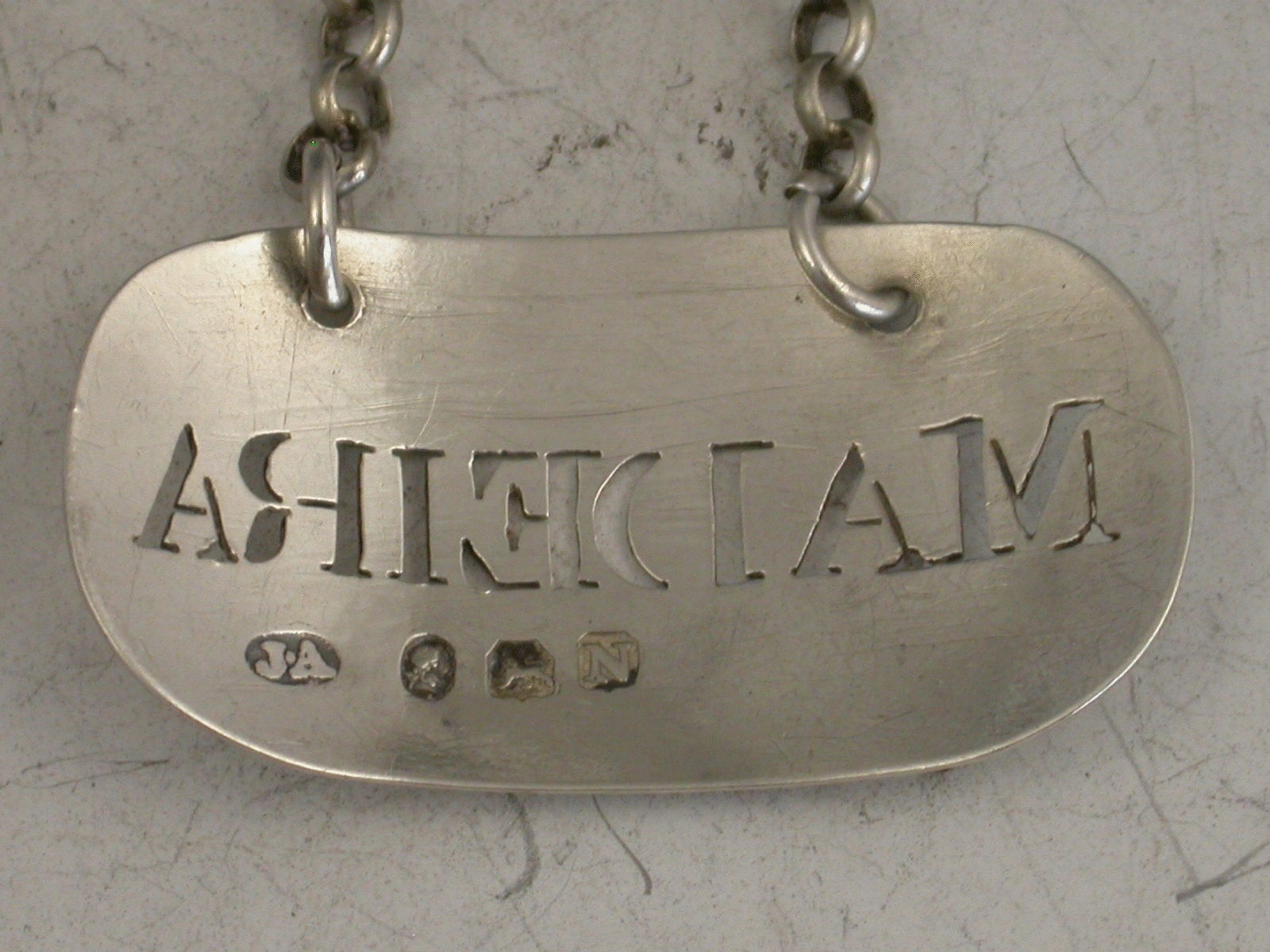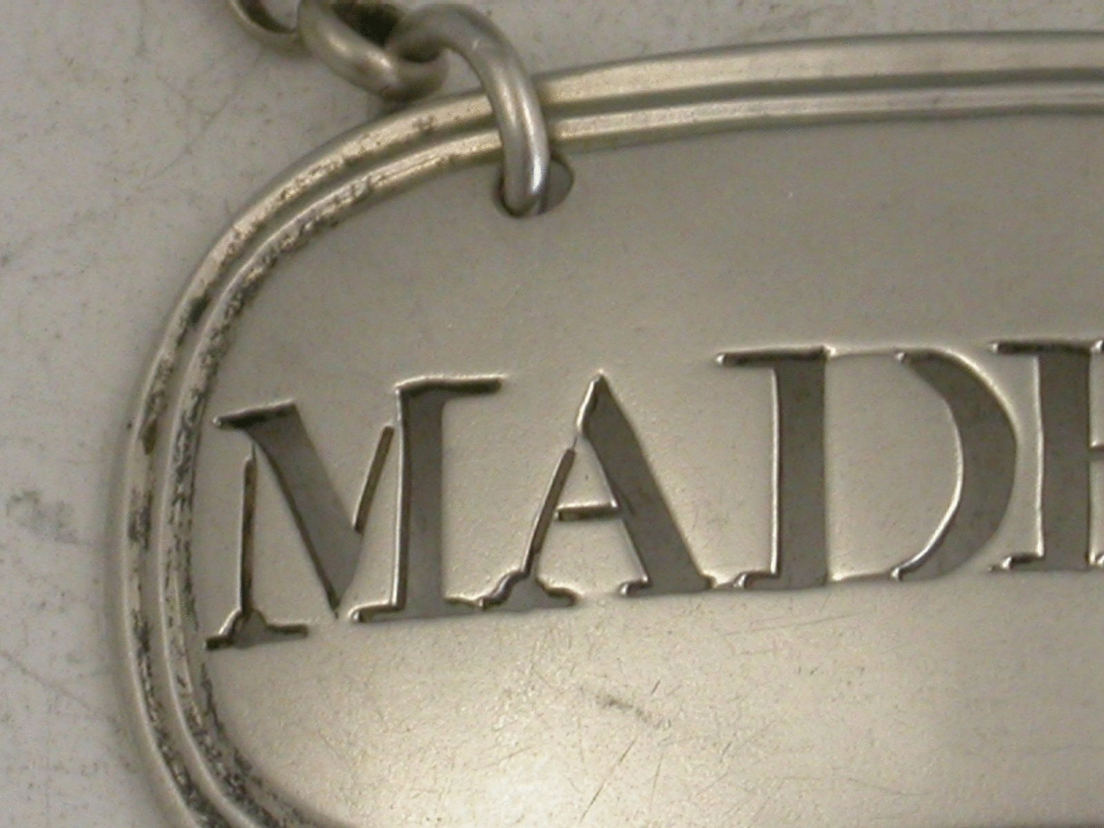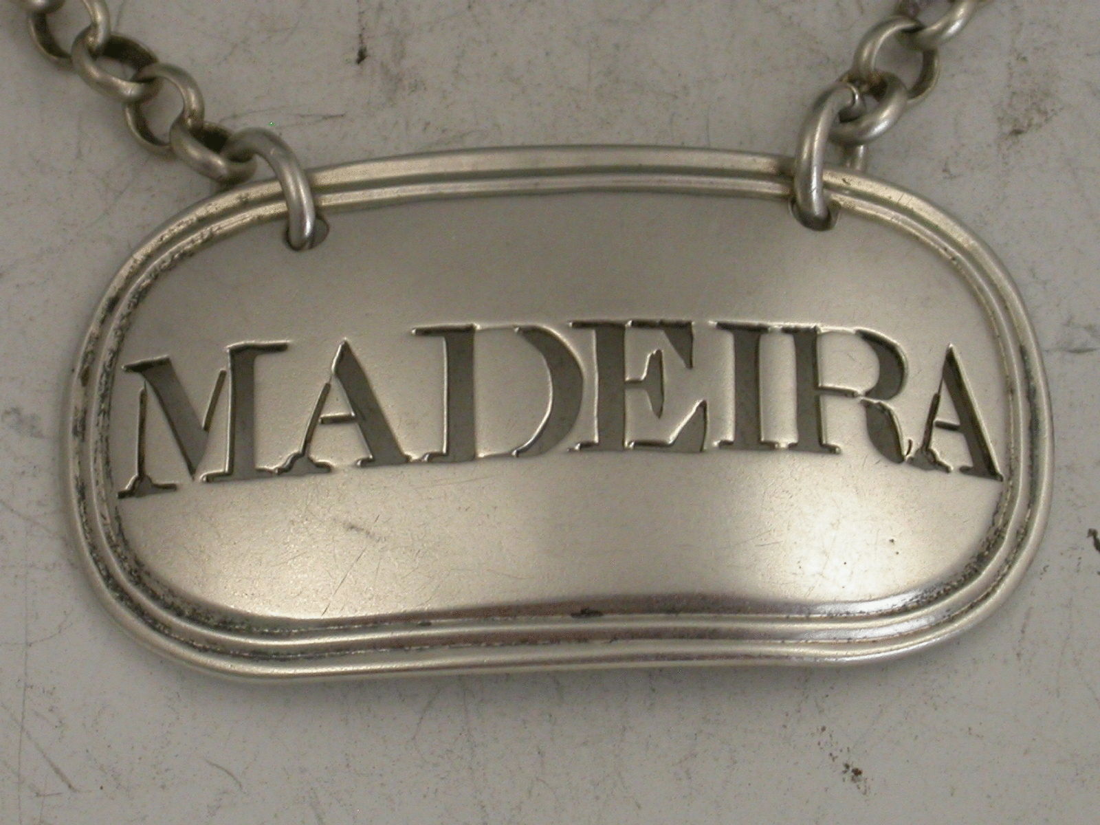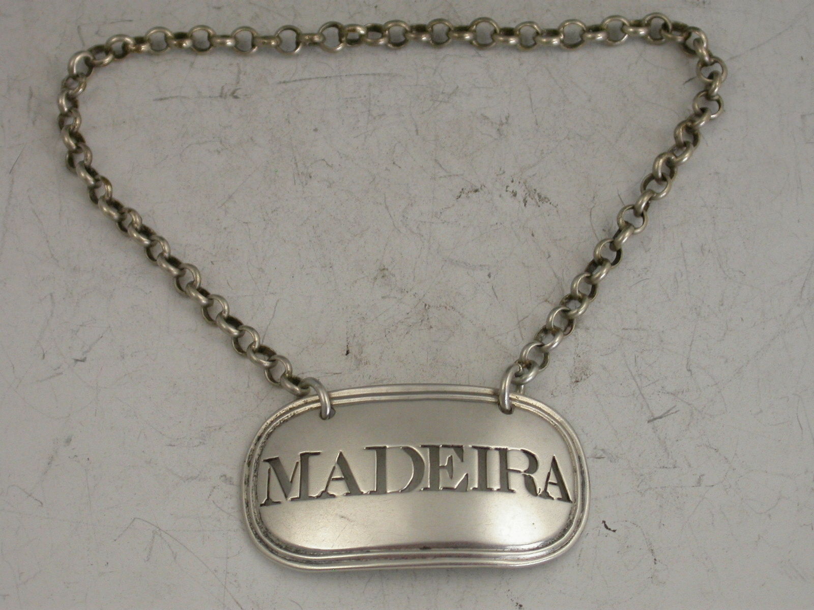 A George III silver Wine Label of rounded rectangular form with double reeded border, pierced for Madeira.