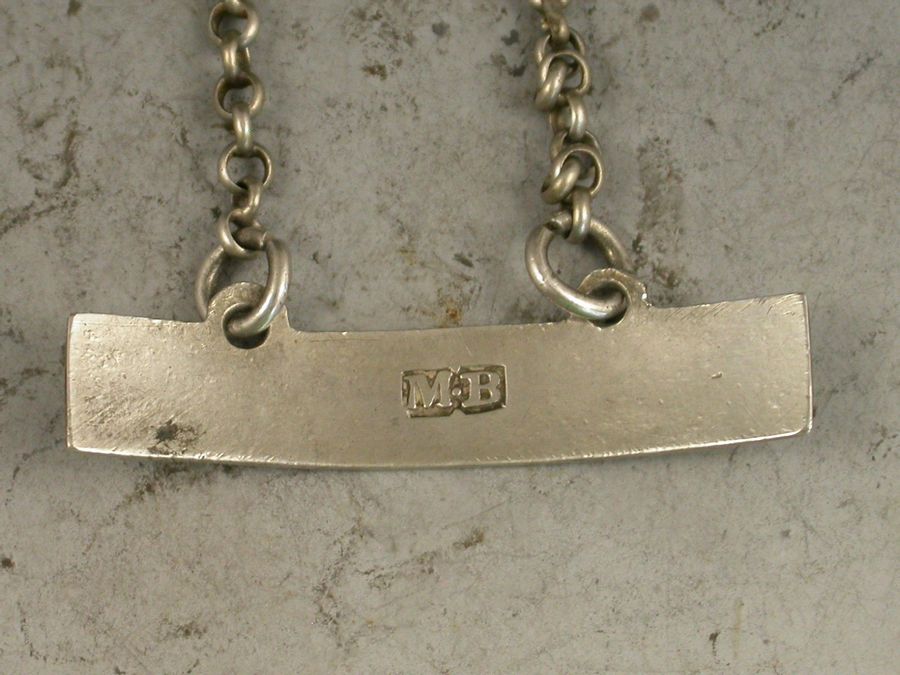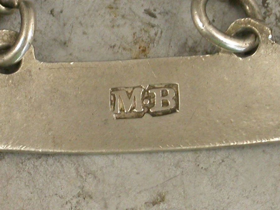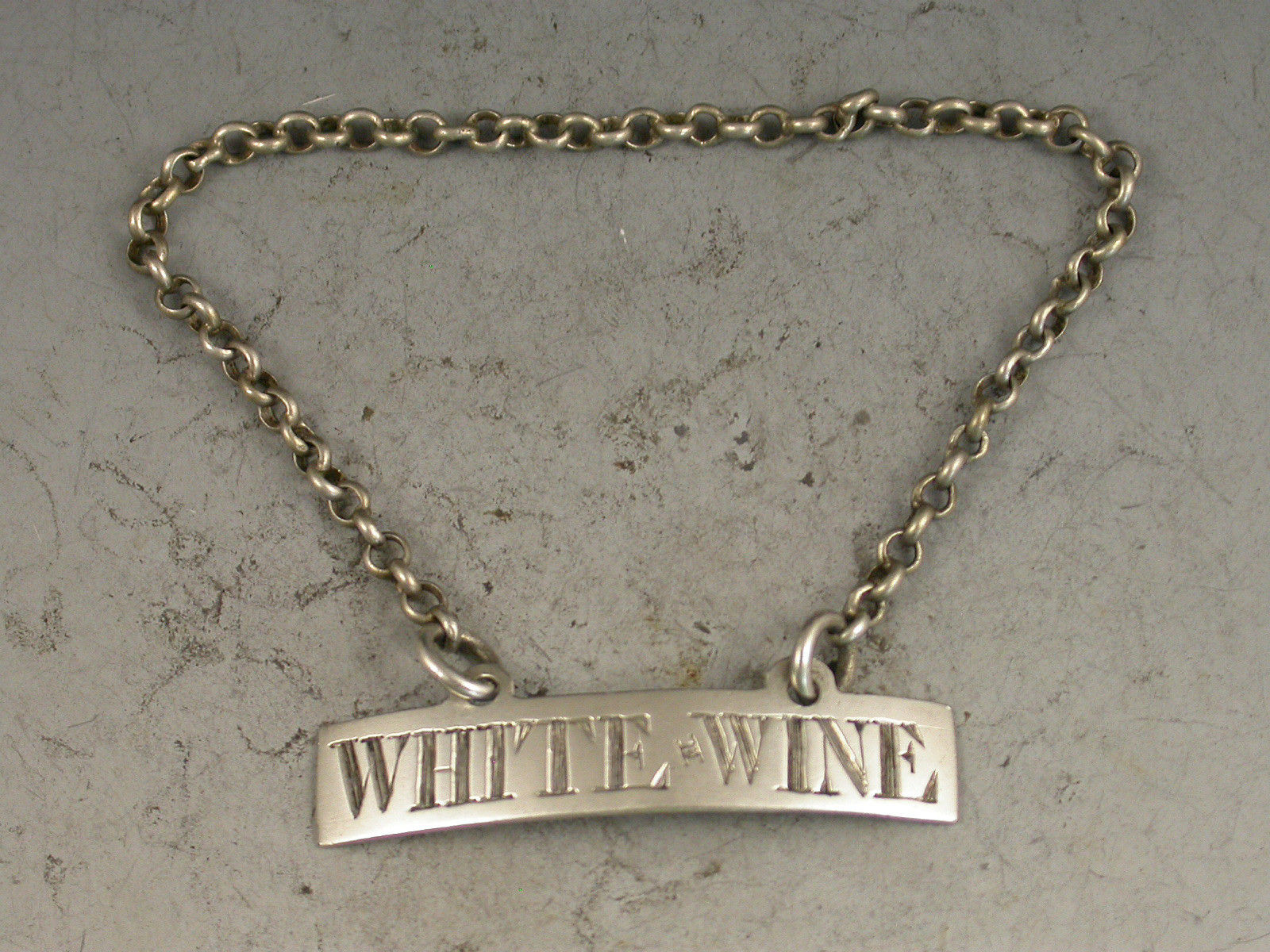 A good George III 18th century silver Wine Label of plain curved narrow rectangular form with raised eyelets, incised for White*Wine.