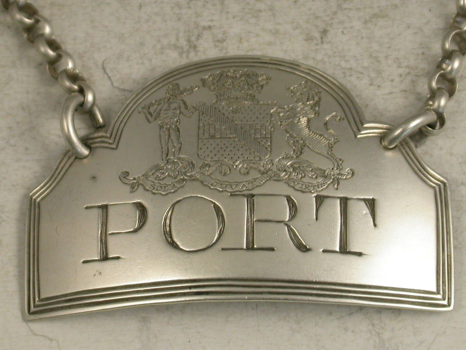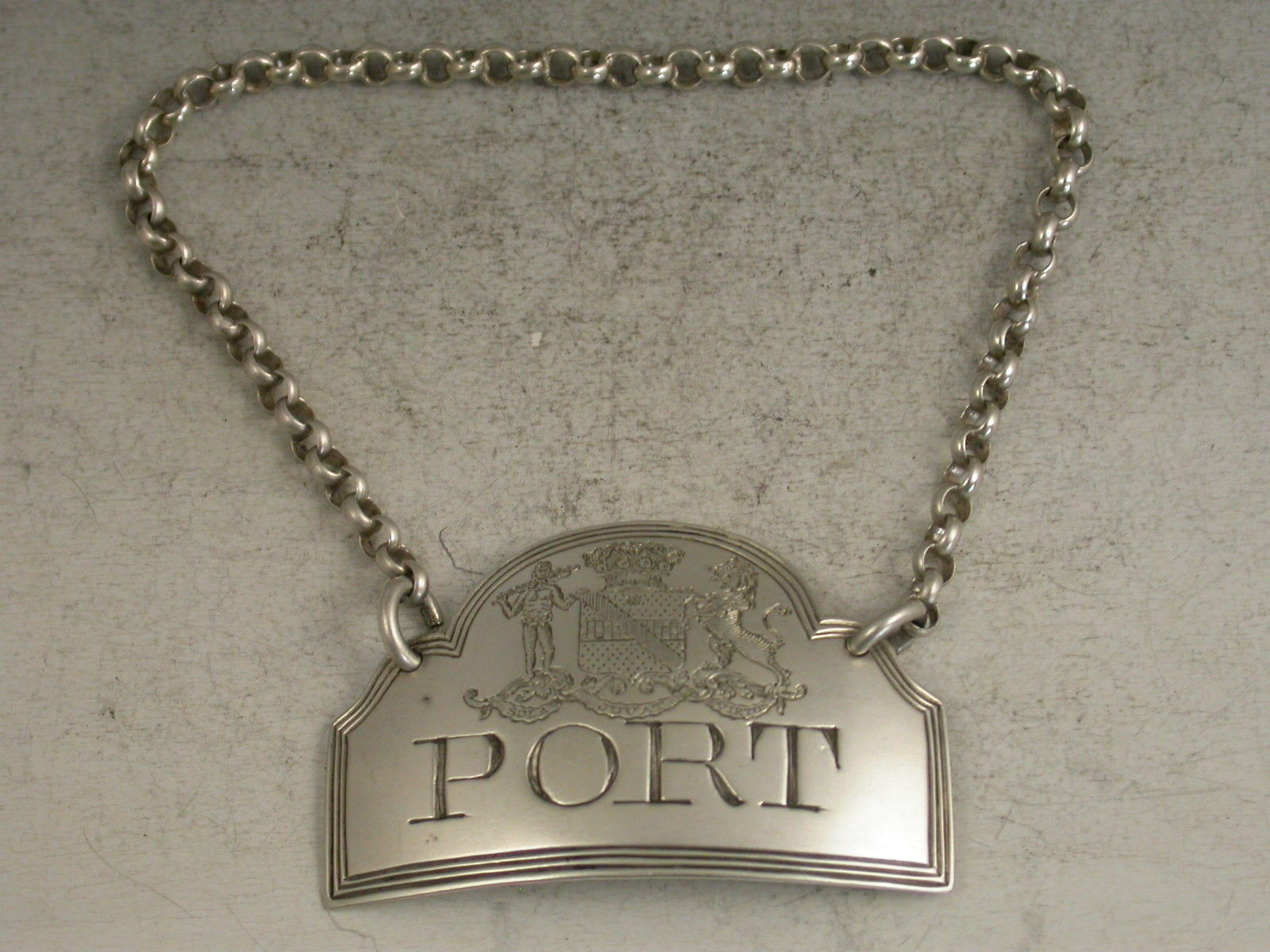George III Armorial Silver Wine Label Port 'Arms of Lord Blantyre'