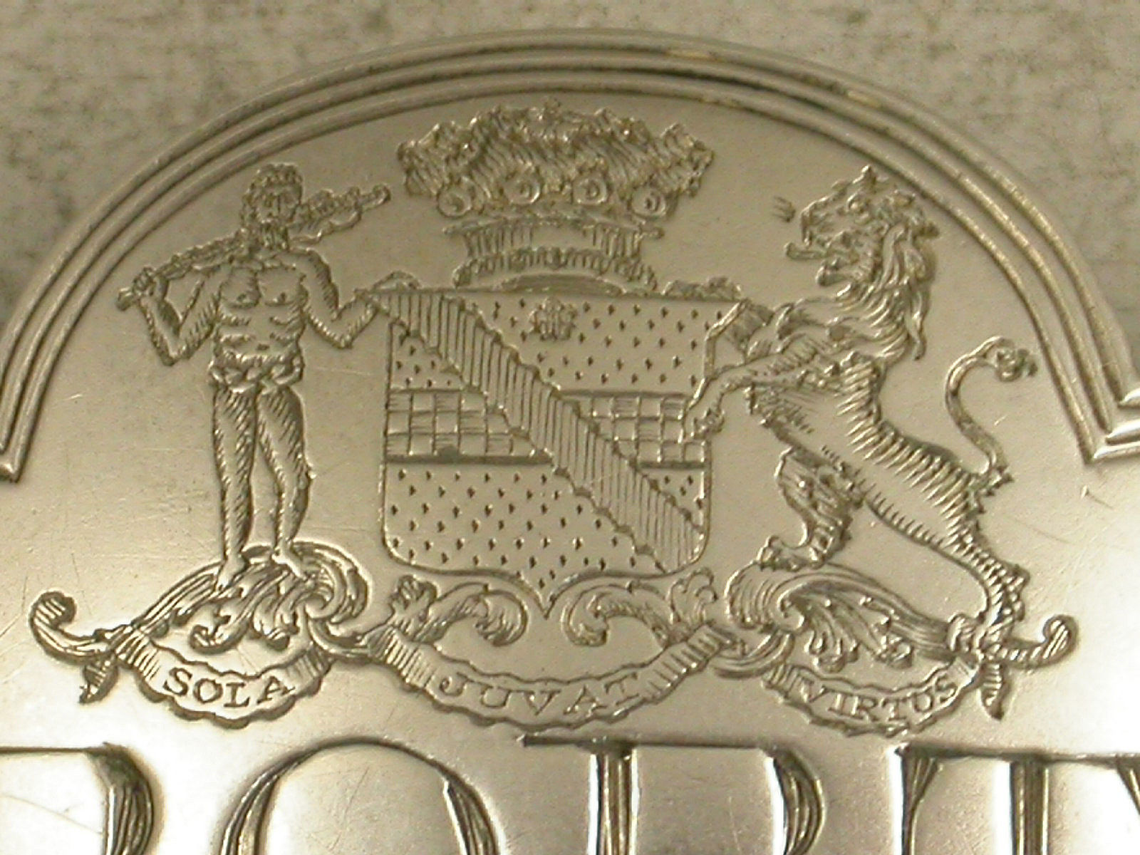 A rare George III Armorial silver Wine Label of domed rectangular form with shoulders and triple reeded border, finely engraved with the Coat of Arms of Robert Walter Stuart, 11th Lord Blantyre, above the incised title for Port.