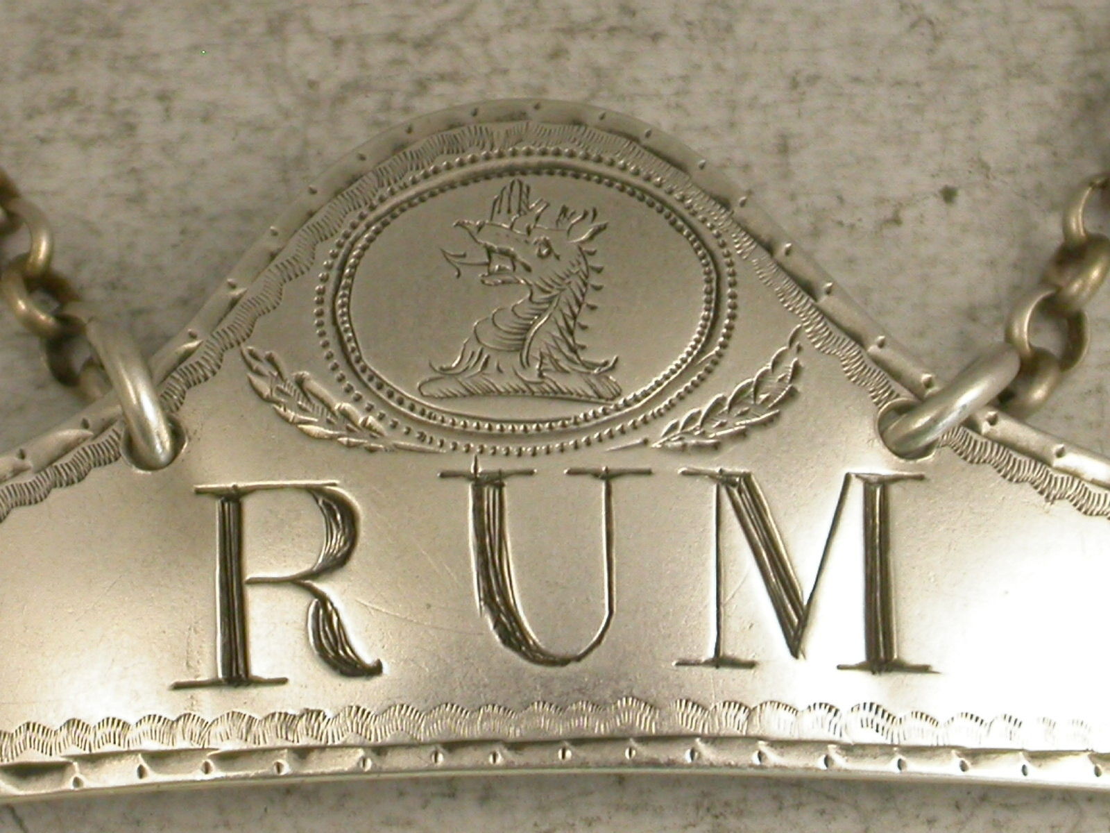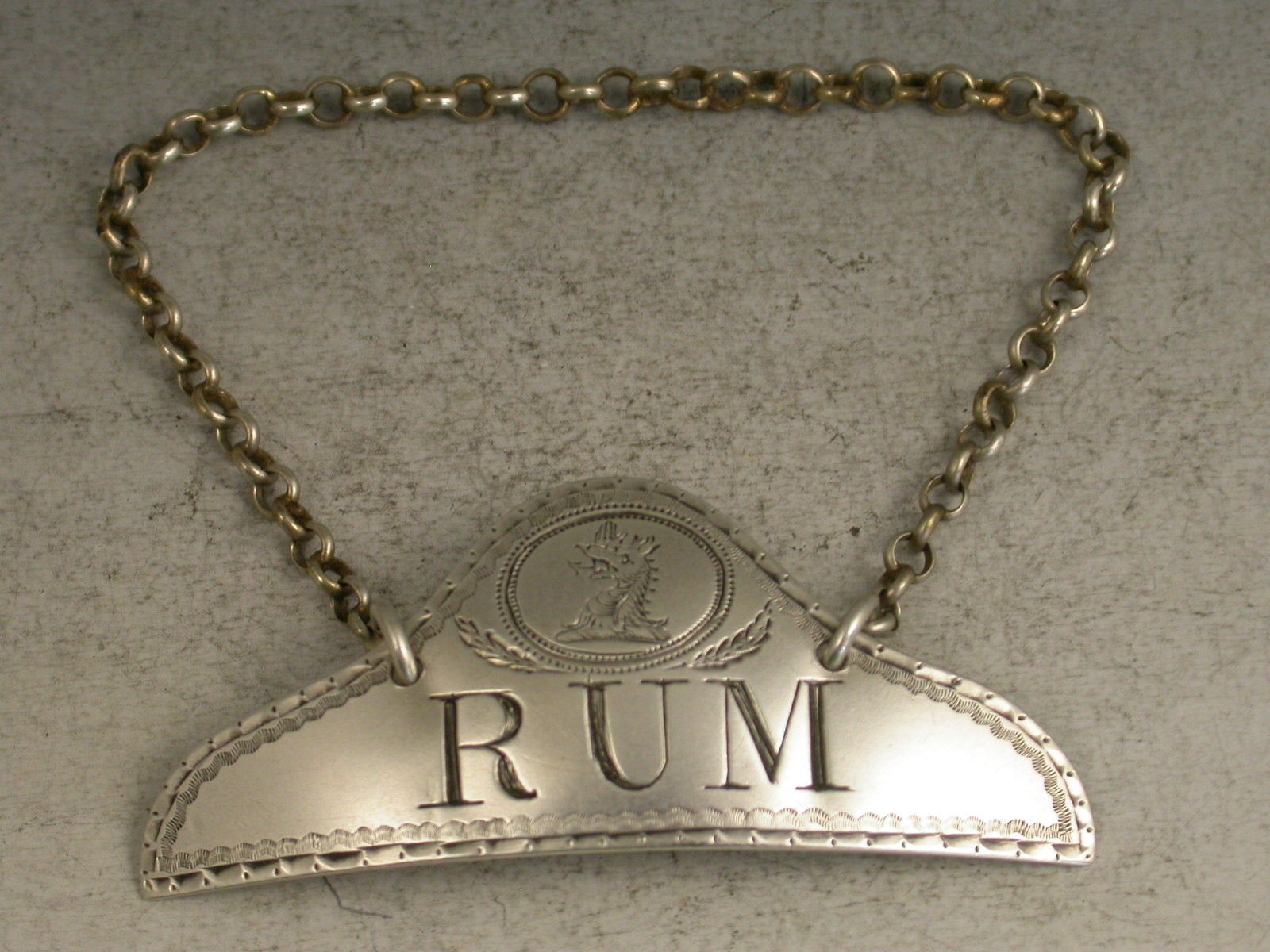 George III Bright Cut Silver Wine Label 'Rum'