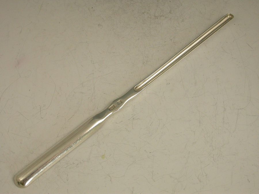 A rare George III early 19th century British Colonial silver Marrow Scoop of plain form with flared central stem and unusually, one bowl facing up and the other bowl facing down.