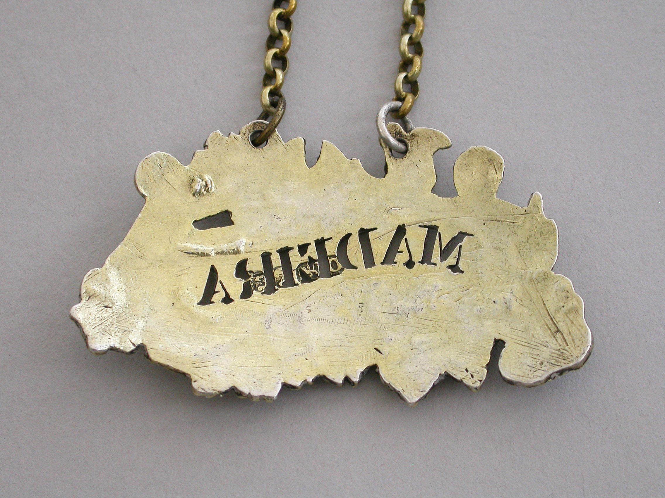 George III Cast Silver Gilt "Two Putti With Jug & Bottle" Wine Label 'Madeira'