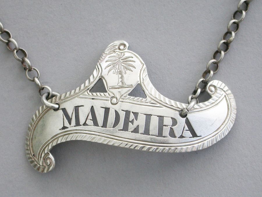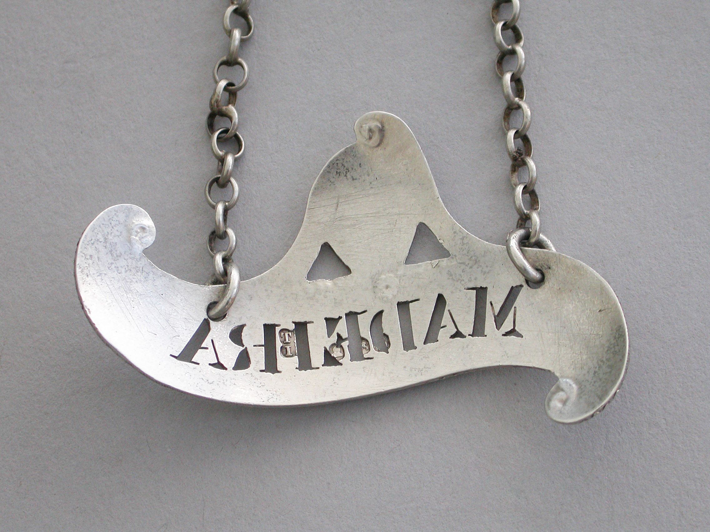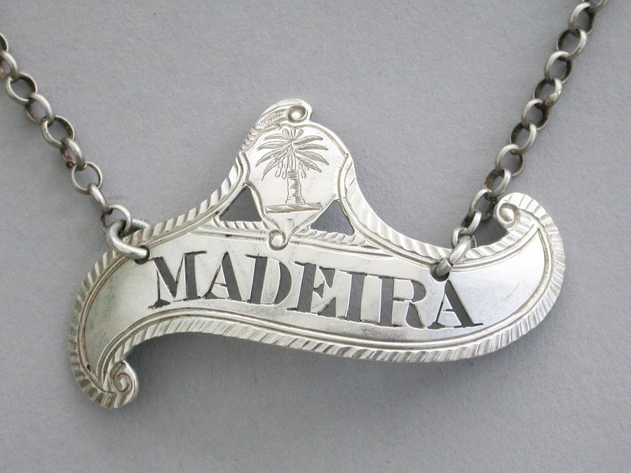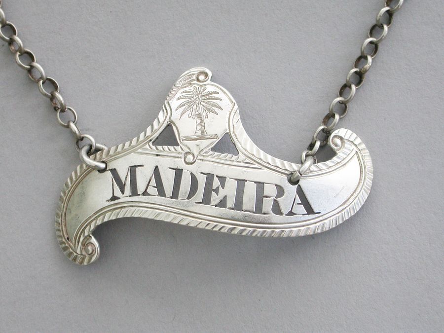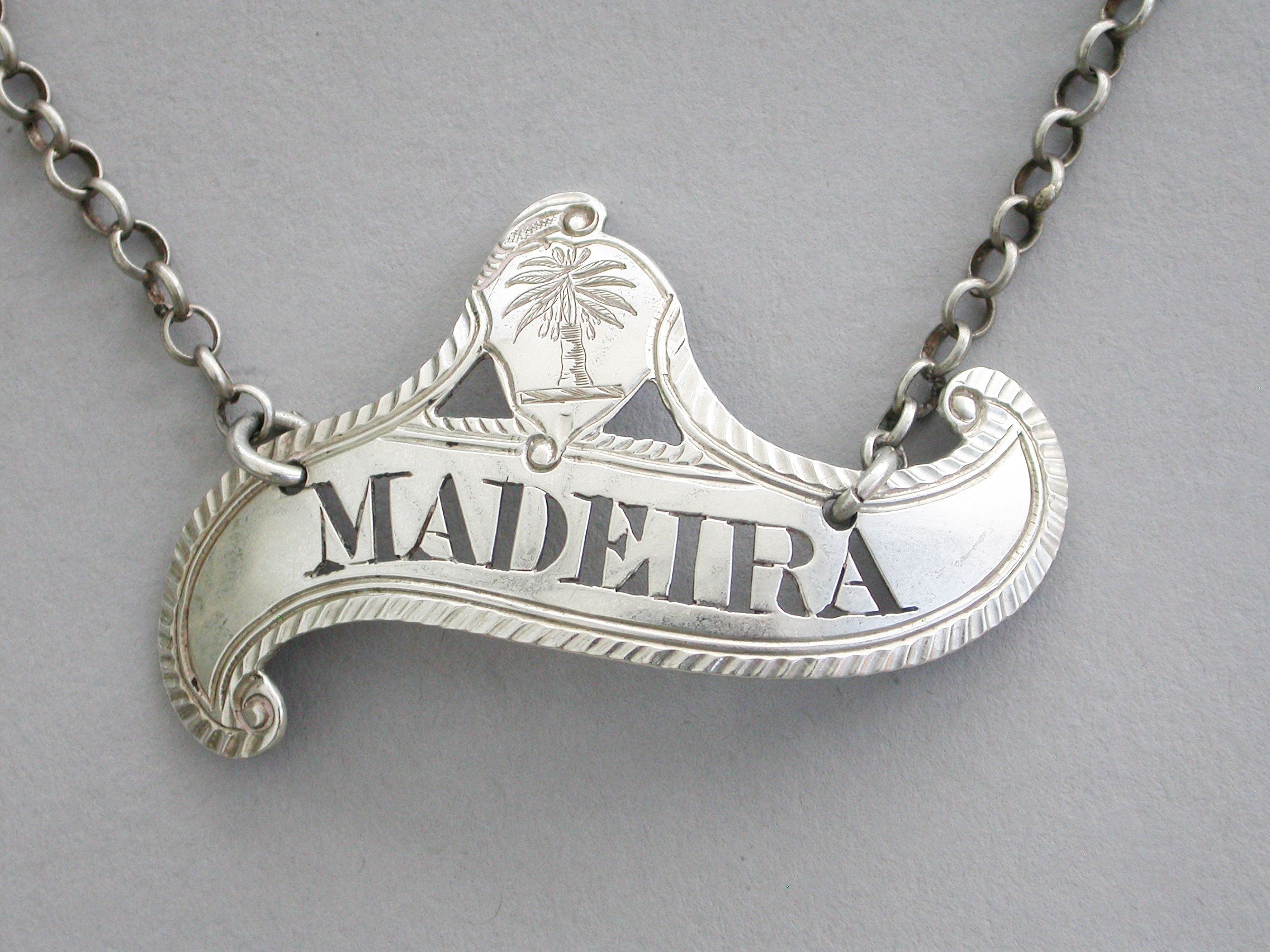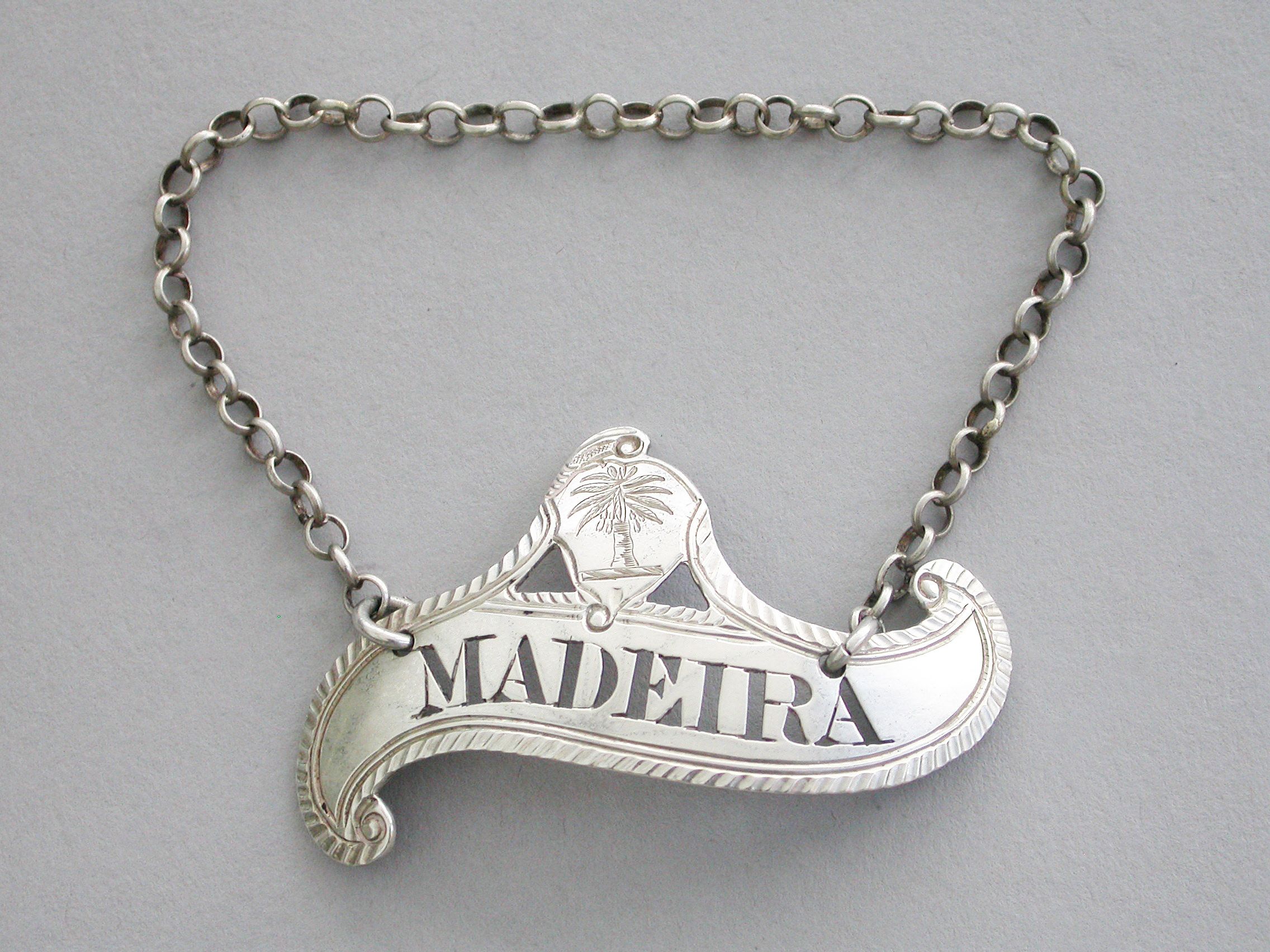George III Crested Silver Wine Label 'Madeira' Palm Tree