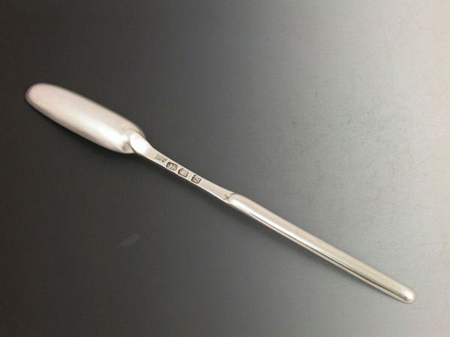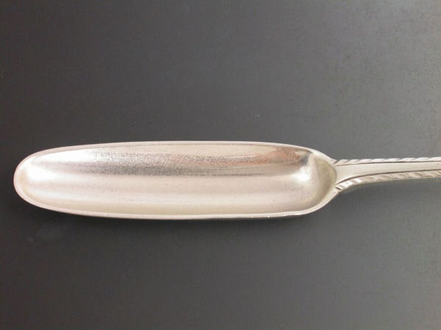 A good George III 18th century silver Marrow Scoop of typical form, the handle engraved with feather edge border.