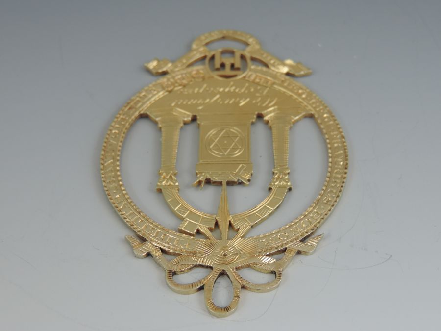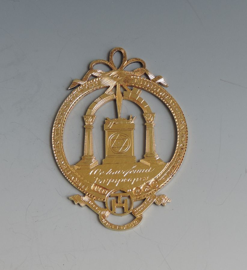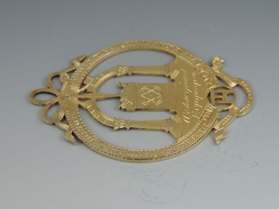 A rare George III silver gilt Masonic Royal Arch Chapter Jewel, pierced with Masonic emblems and numbered 384.