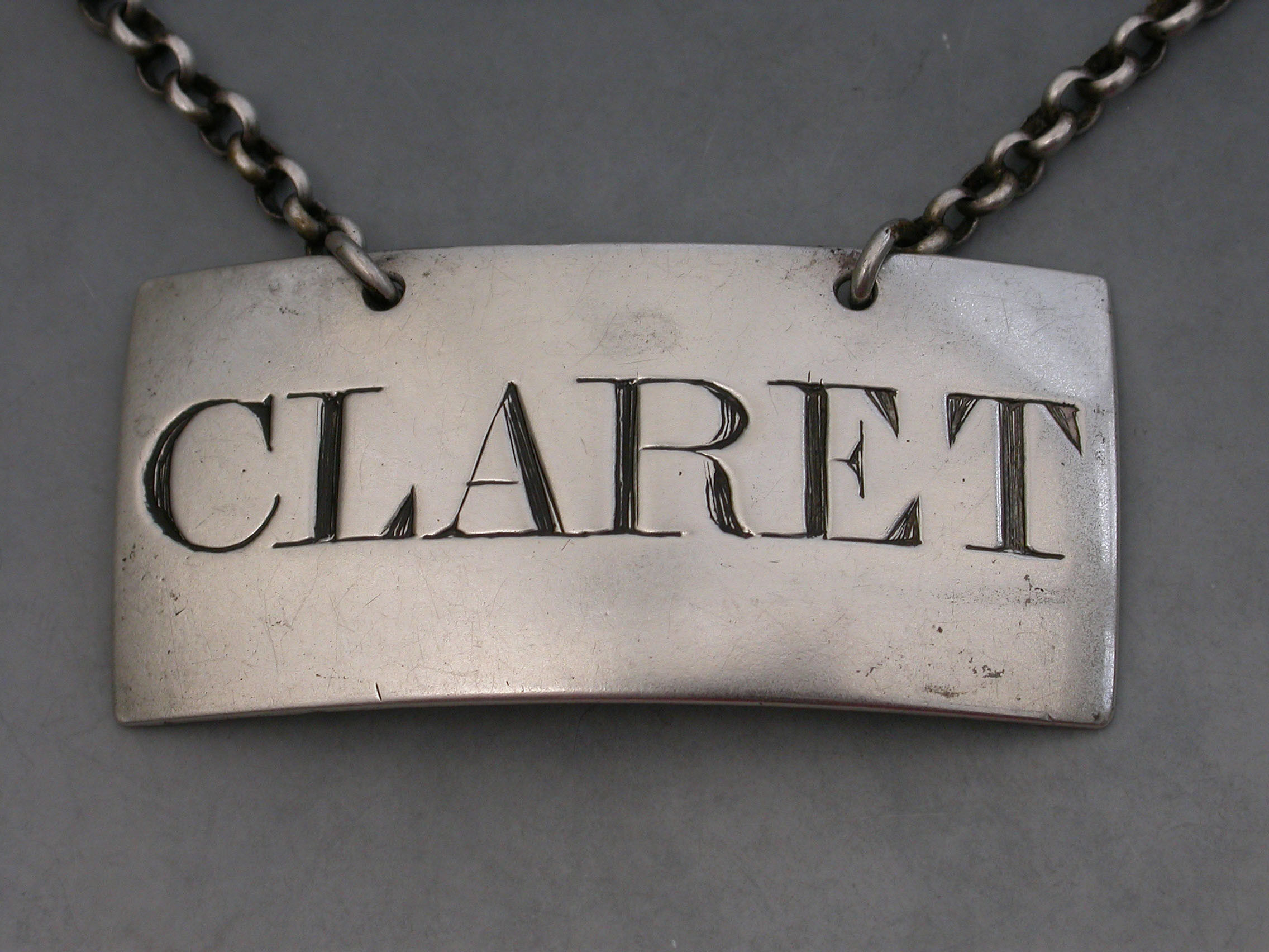 An unusual George III silver Wine Label of plain broad rectangular form and of larger than average size, incised for Claret.
