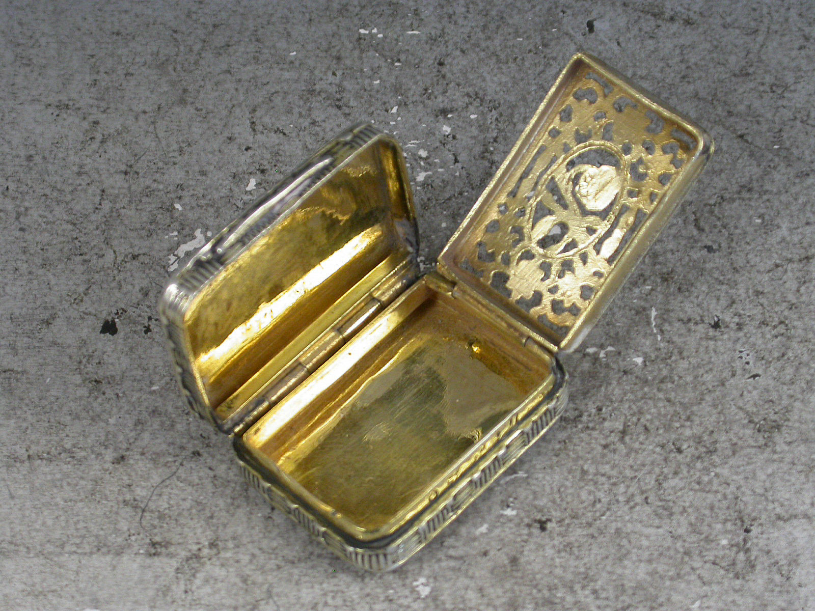 See ""Silver Boxes"" by Eric Delieb, plate 223, page 139 for a similar example decorated with British National Emblems.