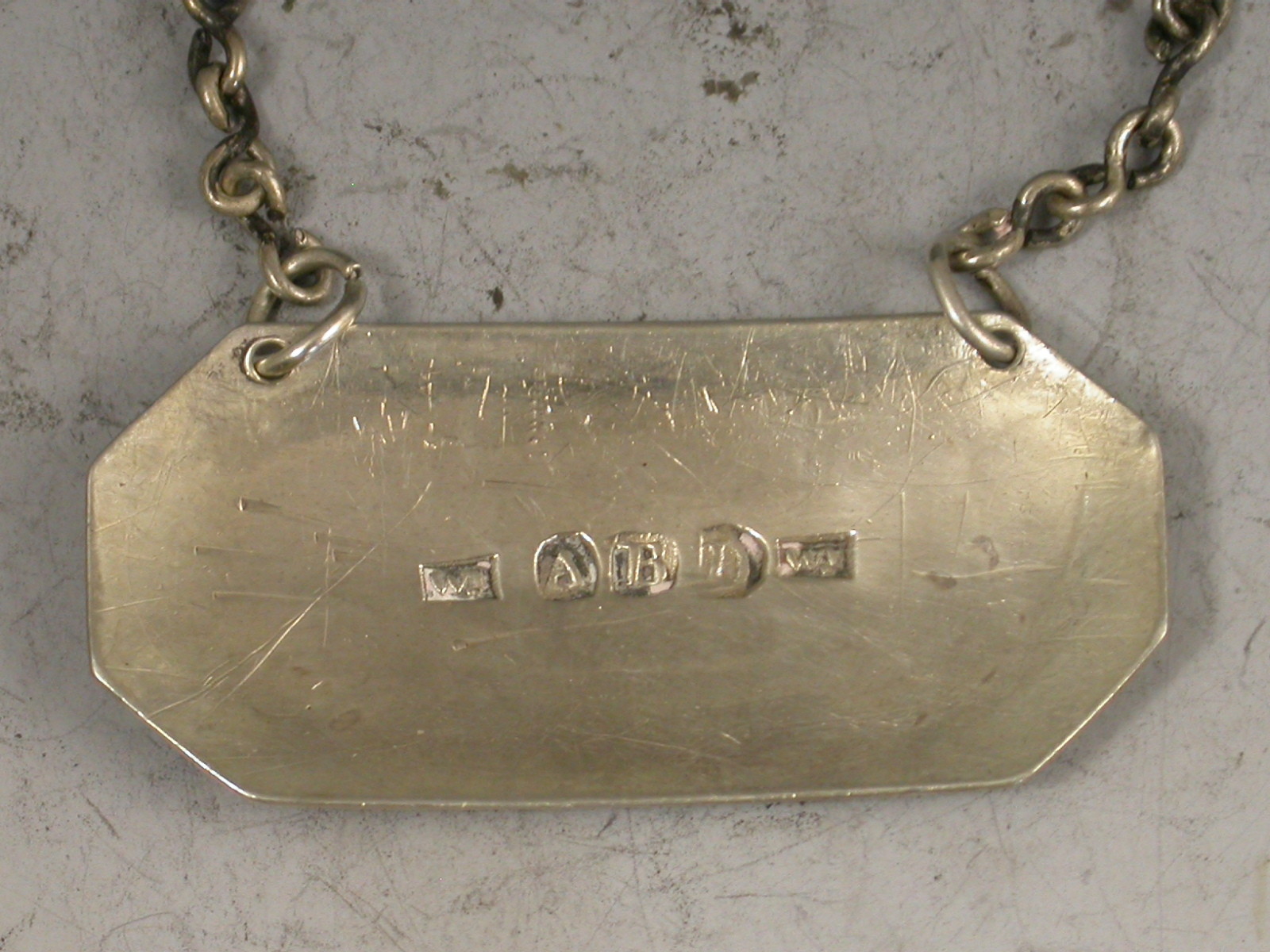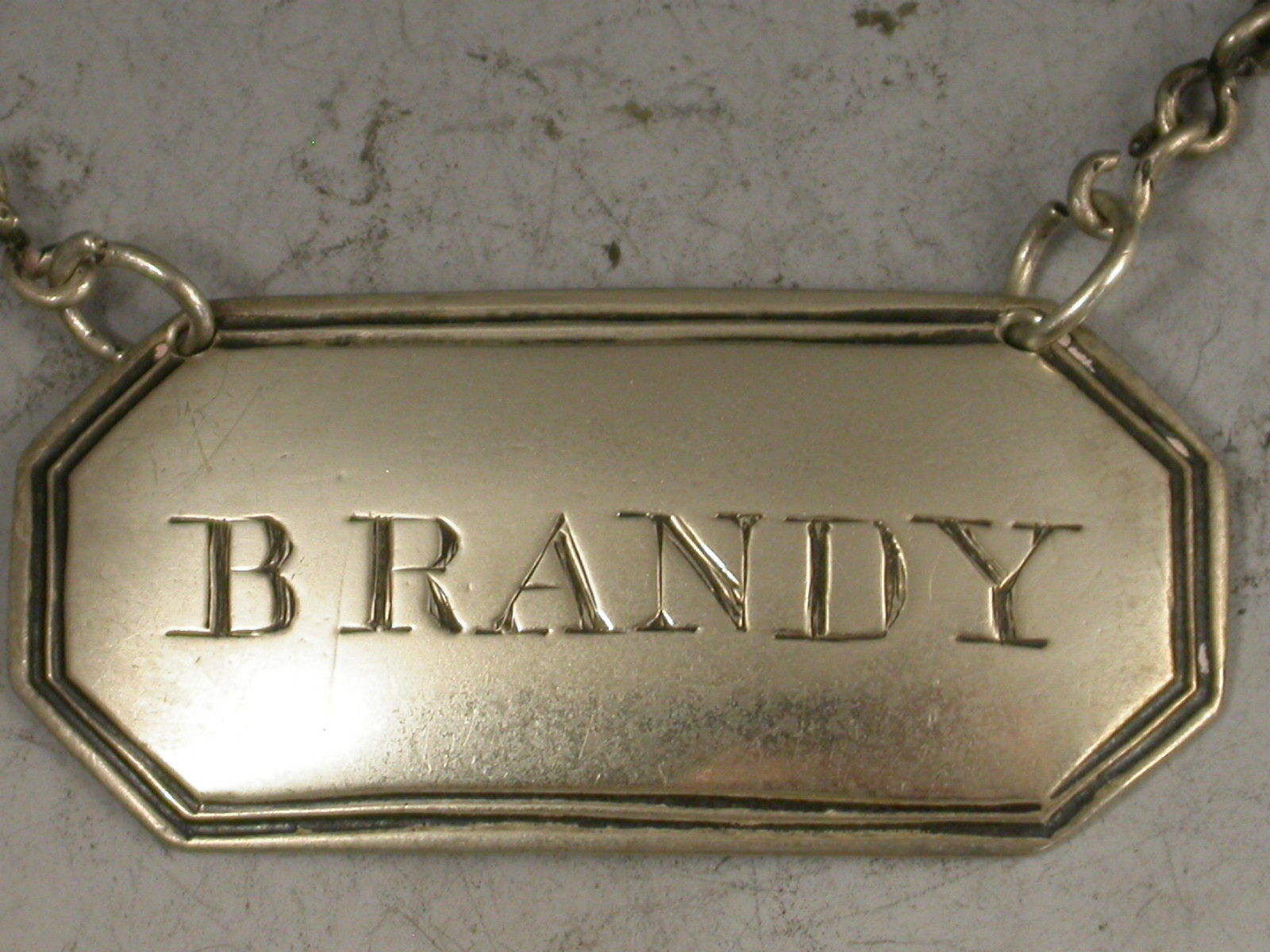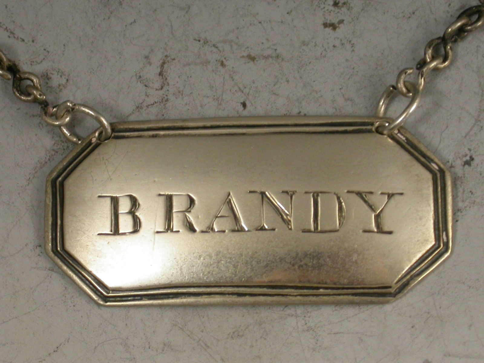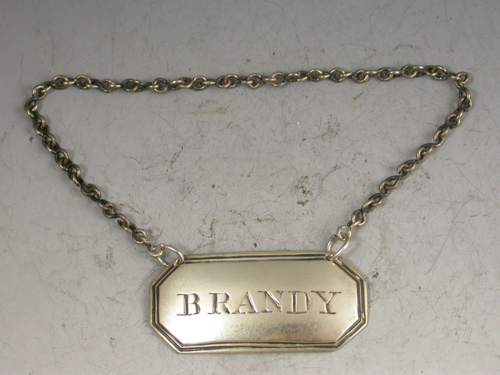 A rare George III Scottish Provincial silver Wine Label of rectangular form with cut corners and double reeded border, incised for Brandy.