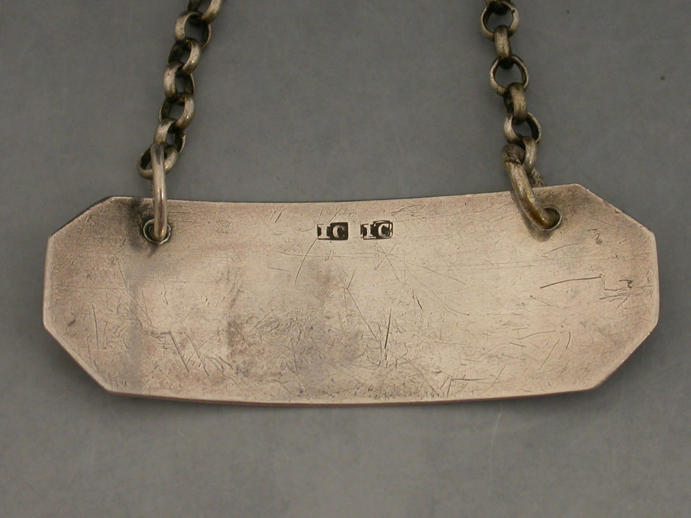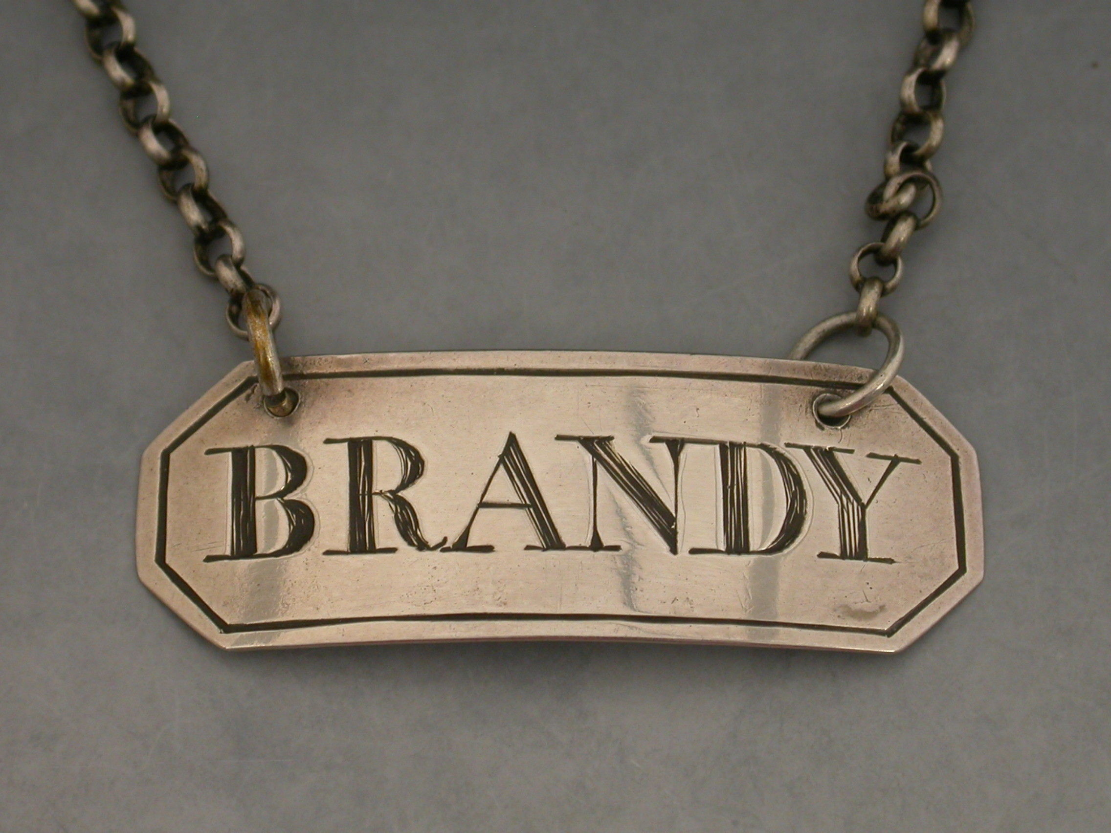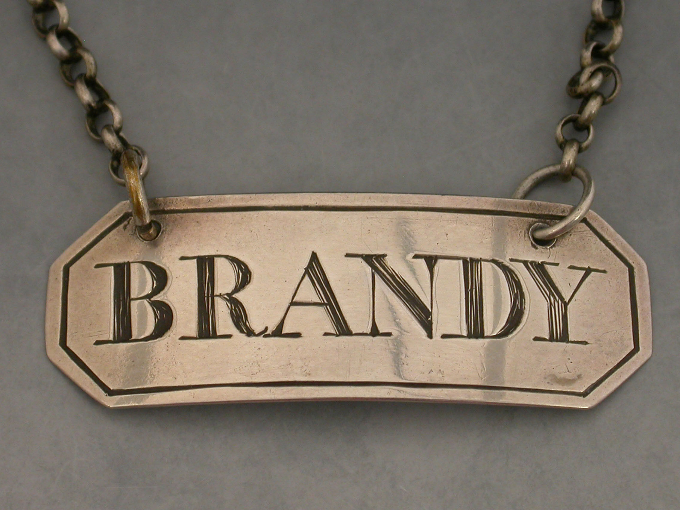 A rare George III Scottish Provincial silver Wine Label of narrow rectangular form with cut-corners and single reeded border, incised for Brandy.