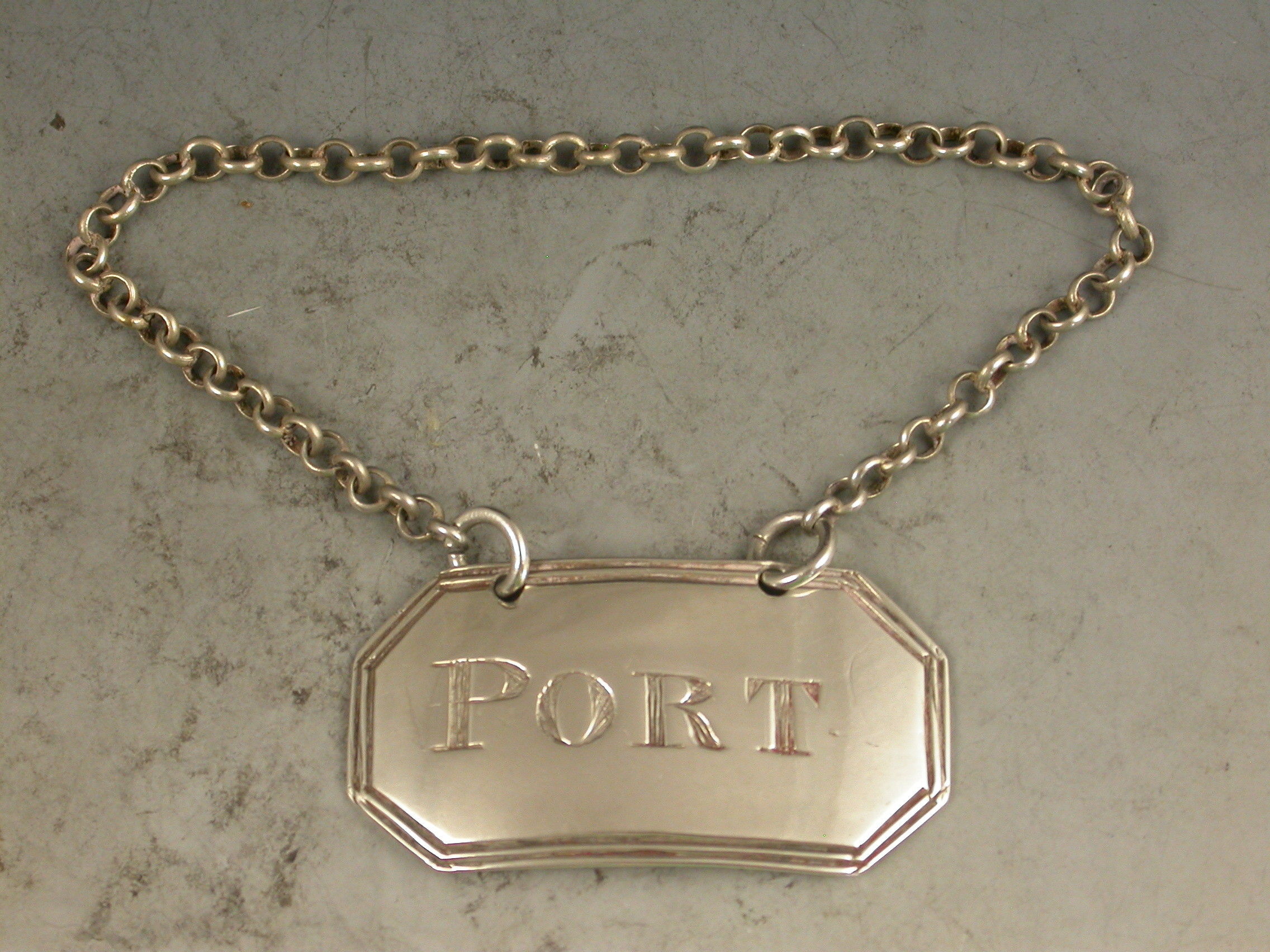 A rare George III Scottish Provincial silver Wine Label of rectangular form with cut- corners and double reeded border, incised for Port.