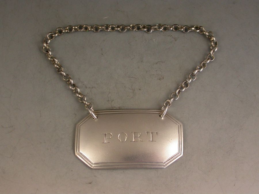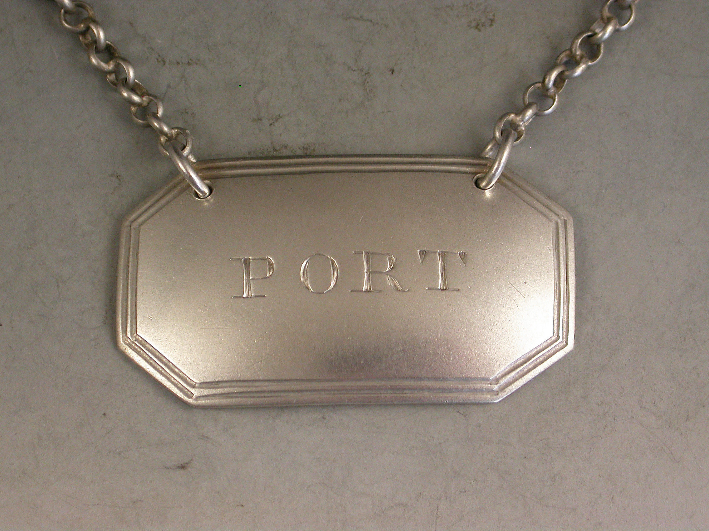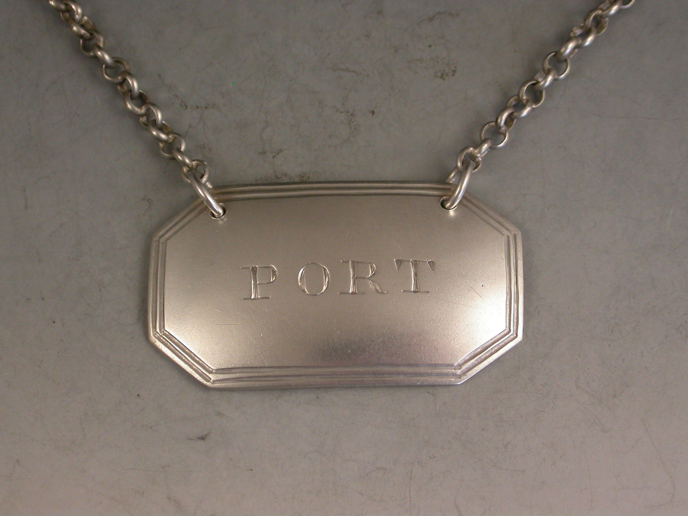 A rare George III Scottish Provincial silver Wine Label of rectangular form with cut-corners and double reeded border, incised for Port.