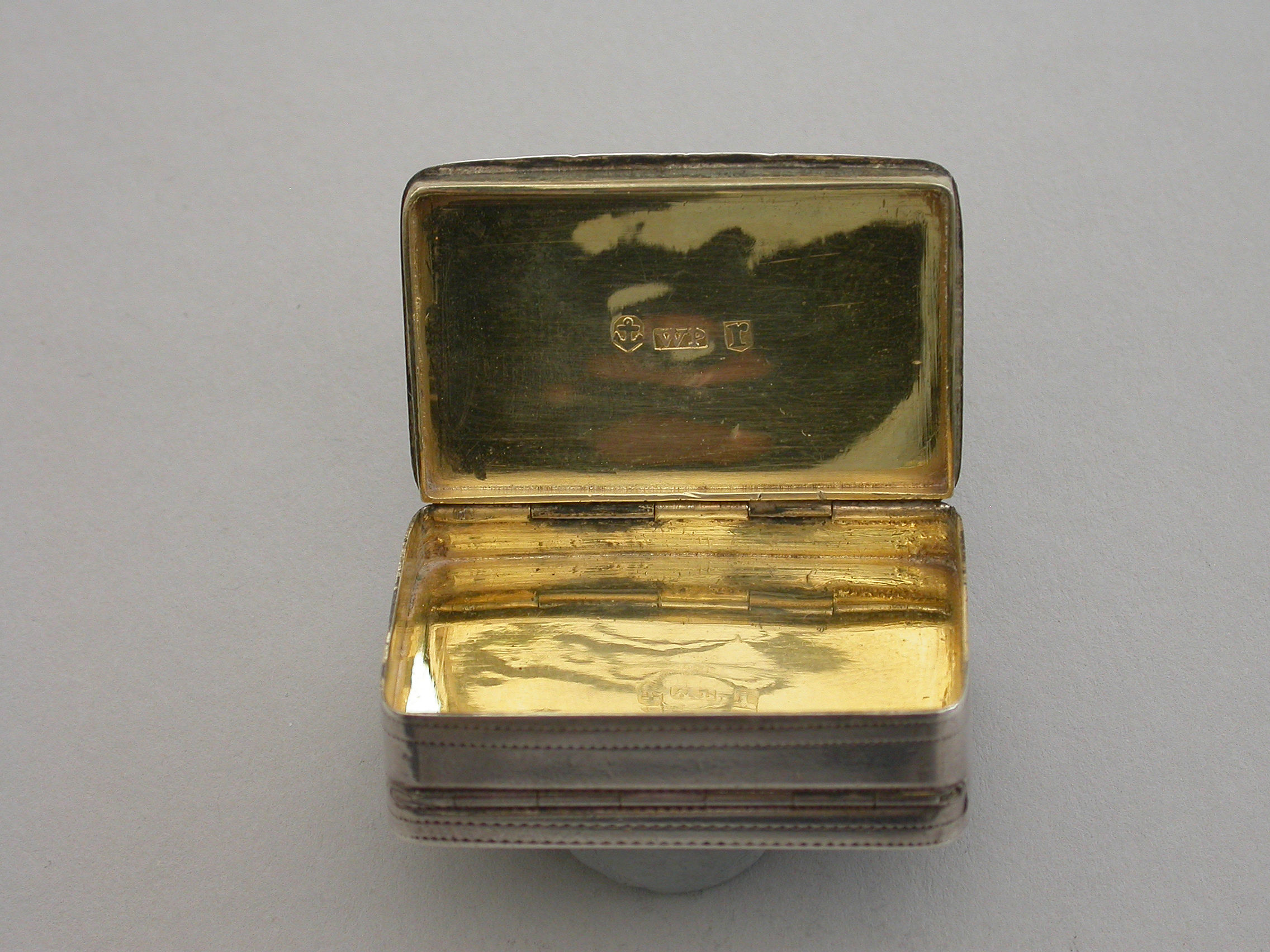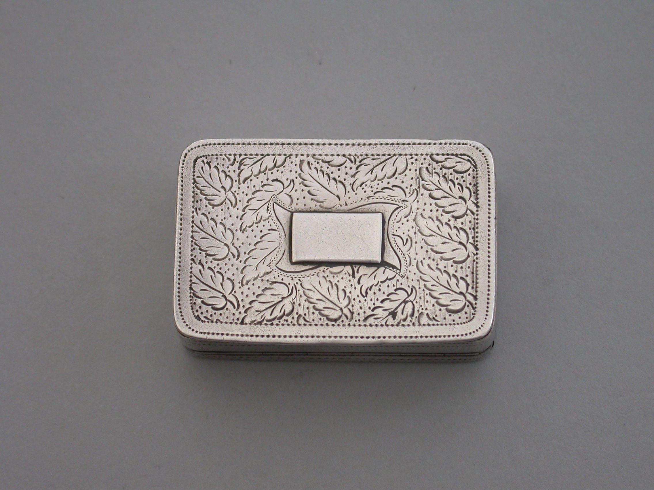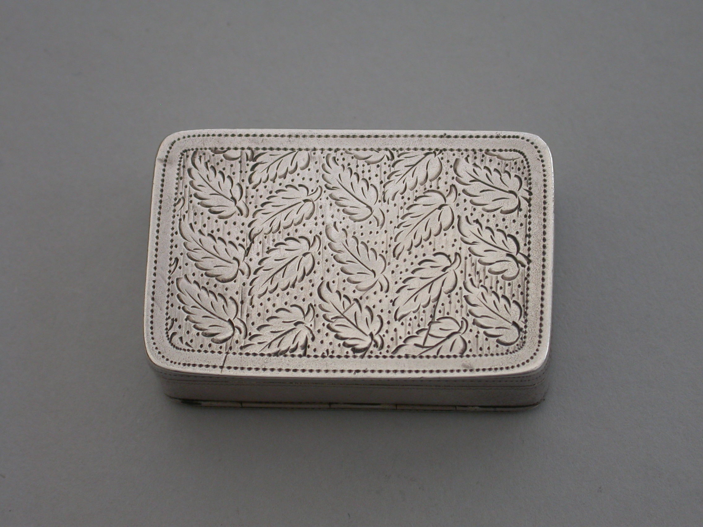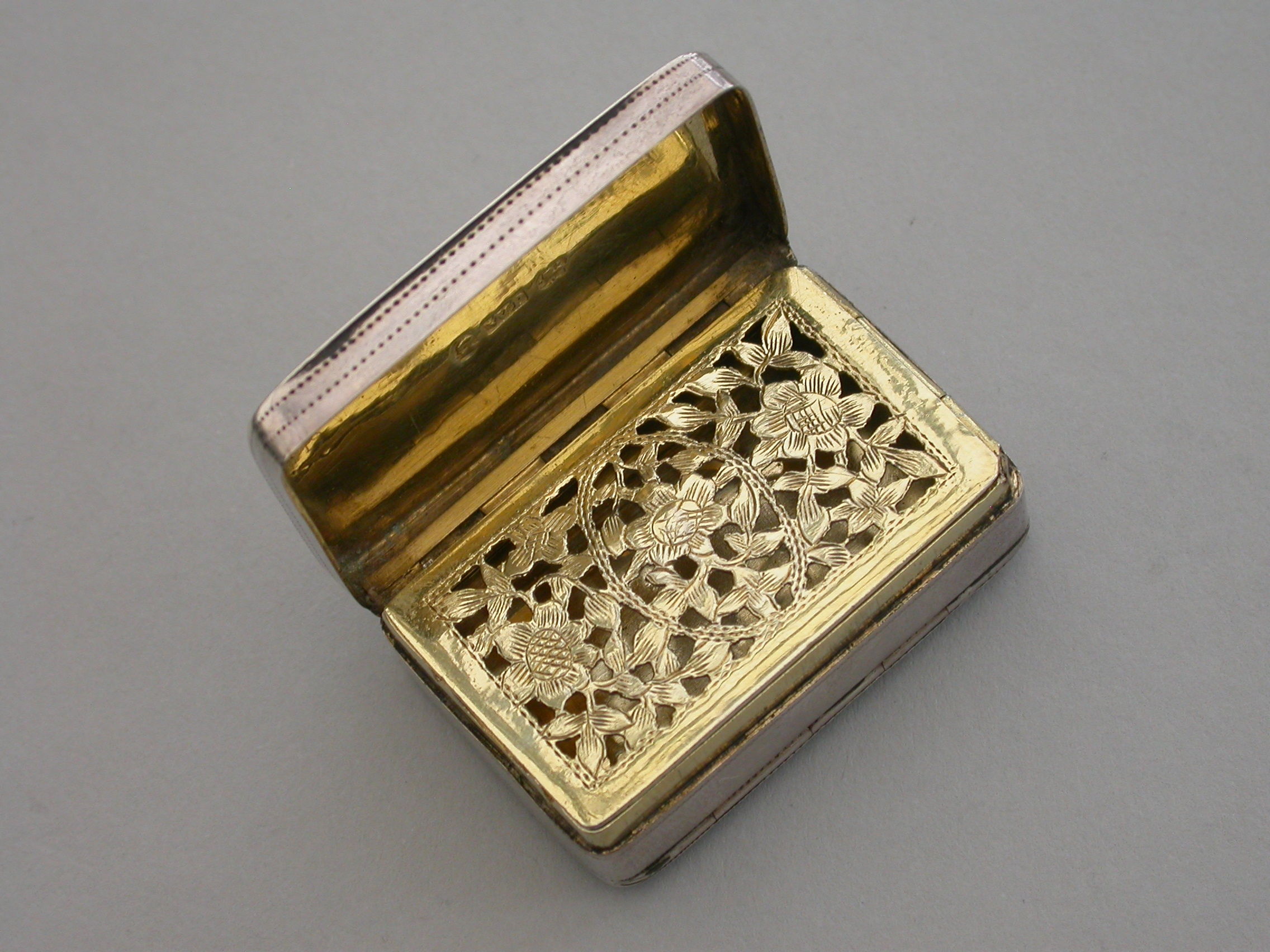 A rare George III silver combination Snuff Box and Vinaigrette of rounded rectangular form, the lid and base with foliate and prick-dot decoration, a vacant rectangular cartouche to the lid. Silver gilt interior.