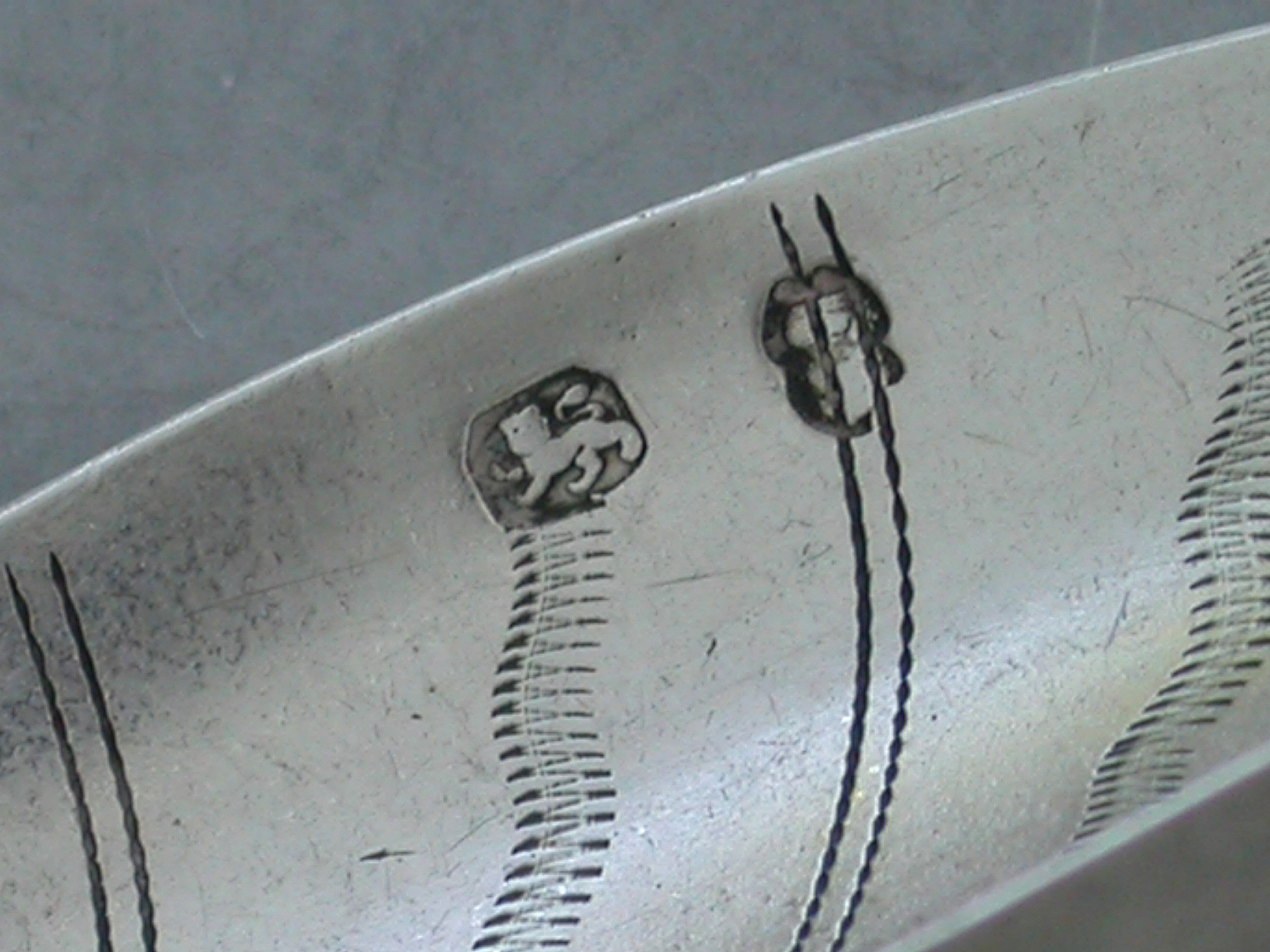 Hallmarked with just a lion passant and cusped duty mark. Probably by either Thomas or Joseph Willmore, Birmingham, c1797 -1820.