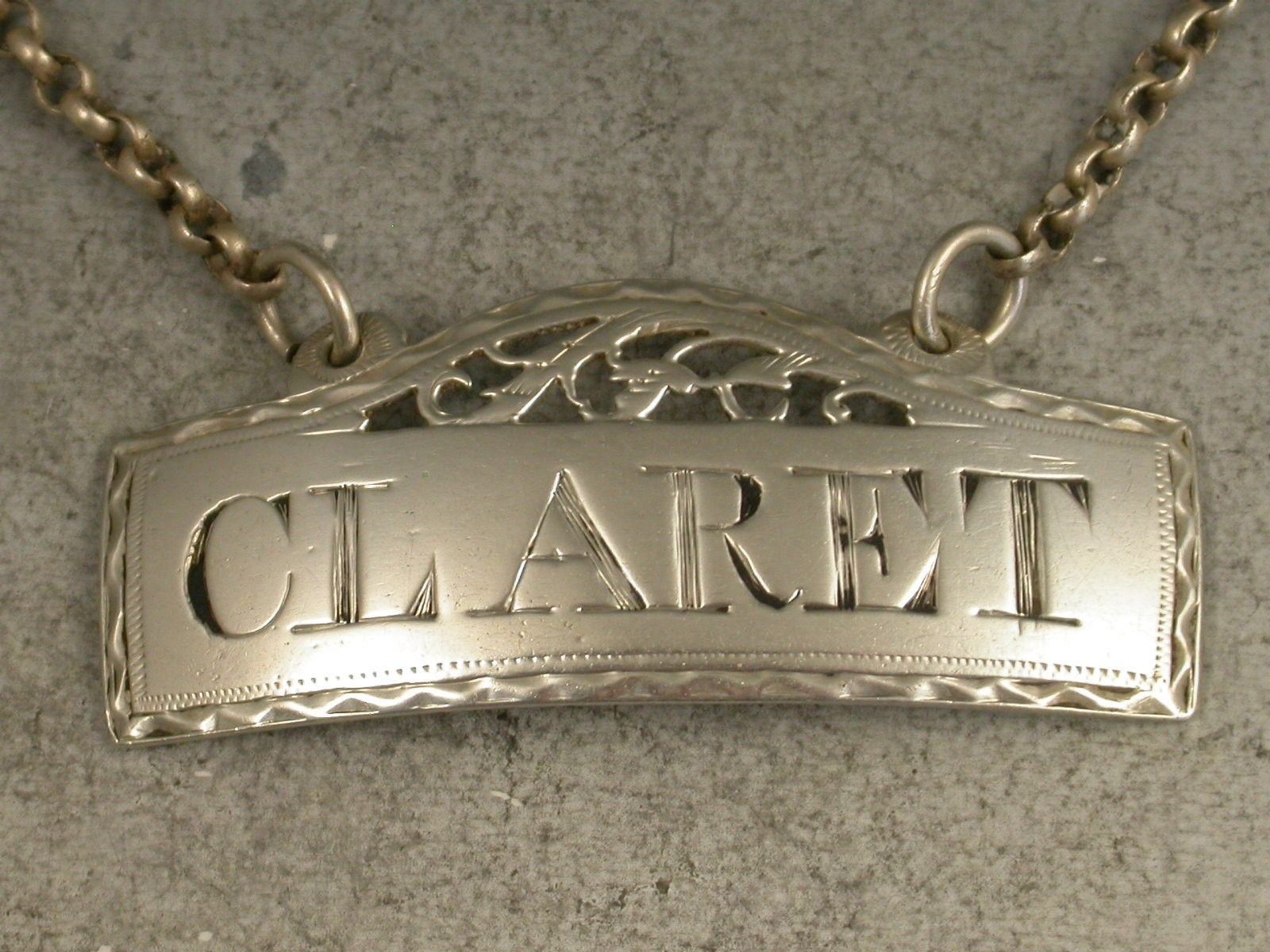 George III Silver Fret Domed Rectangular Wine Label 'Claret'