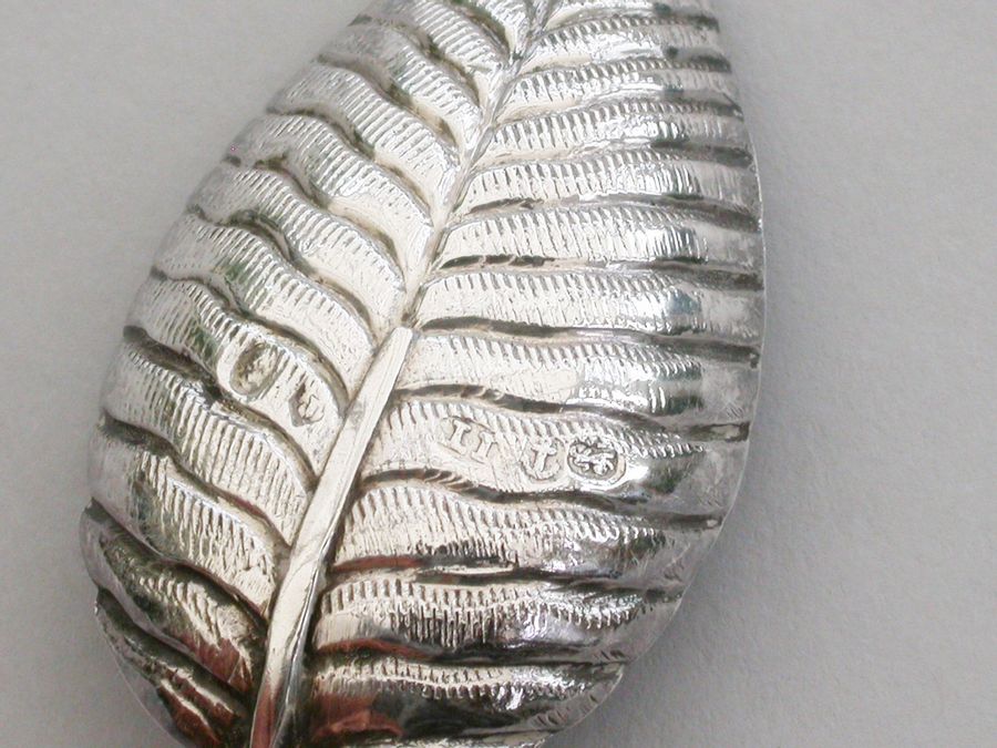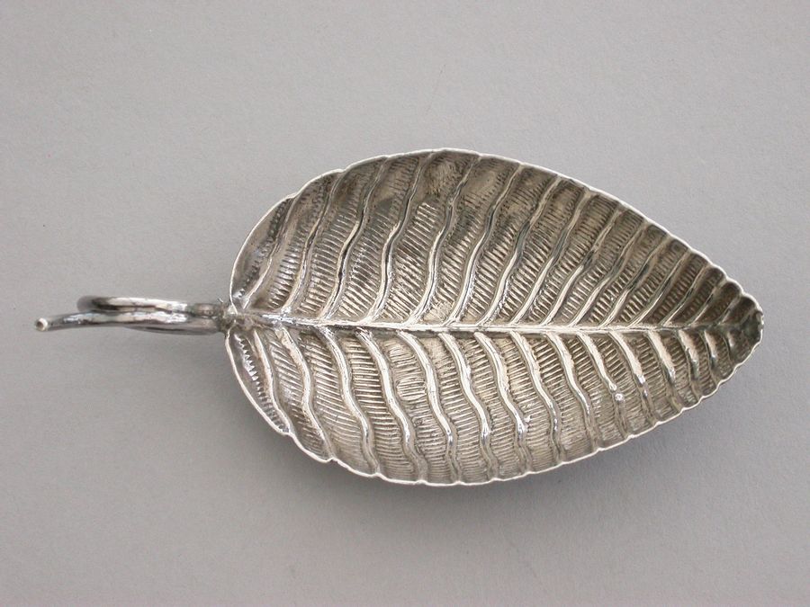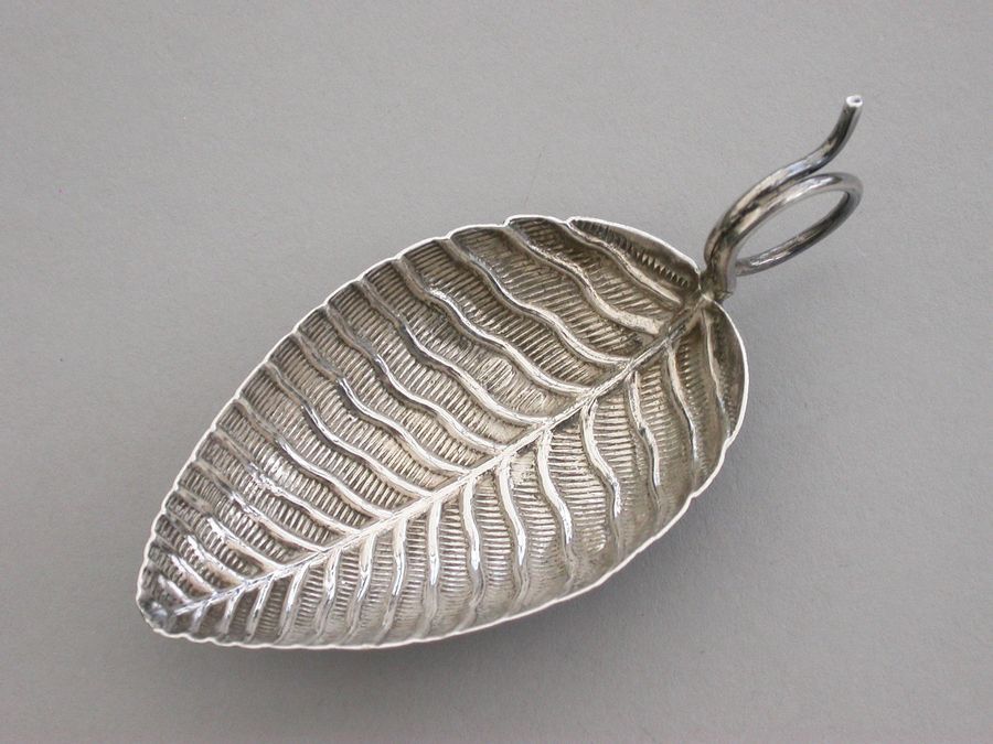 A good George III silver Caddy Spoon of veined leaf form with twisted loop handle,
