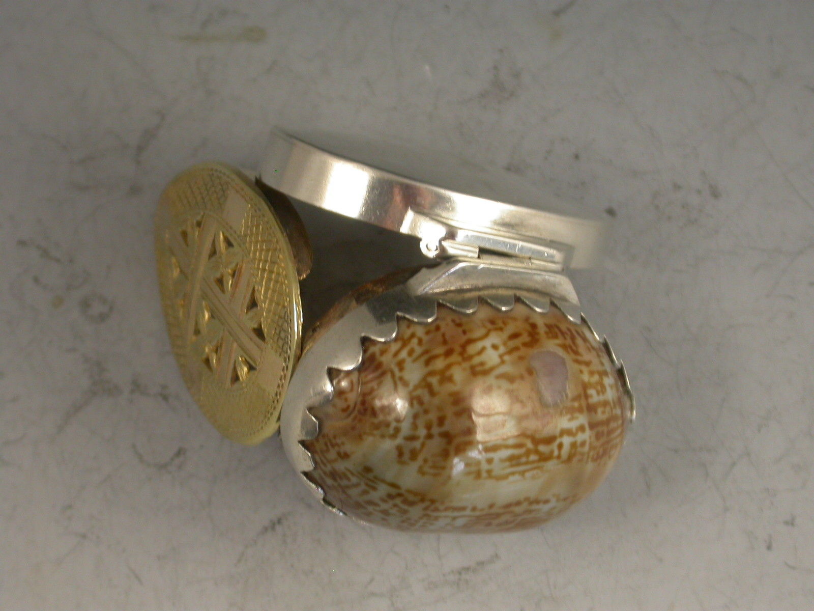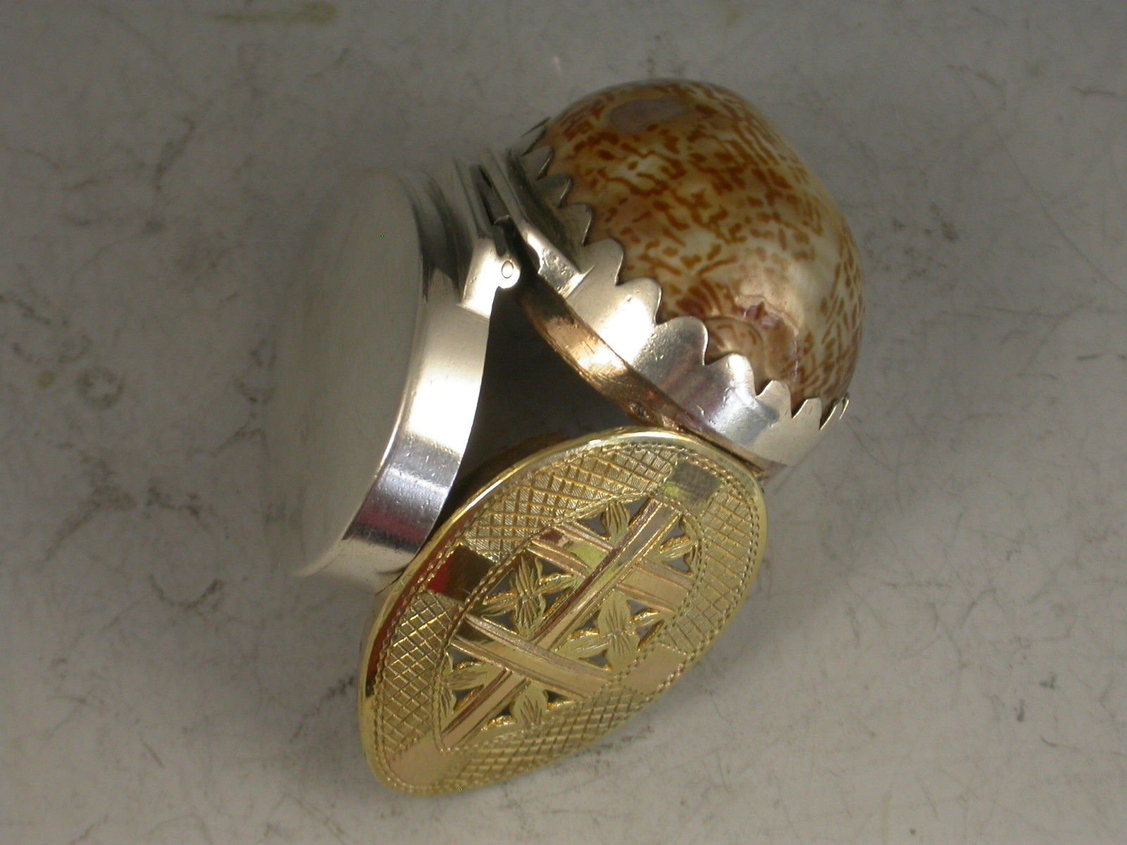 George III Silver Mounted Cowrie Shell Vinaigrette