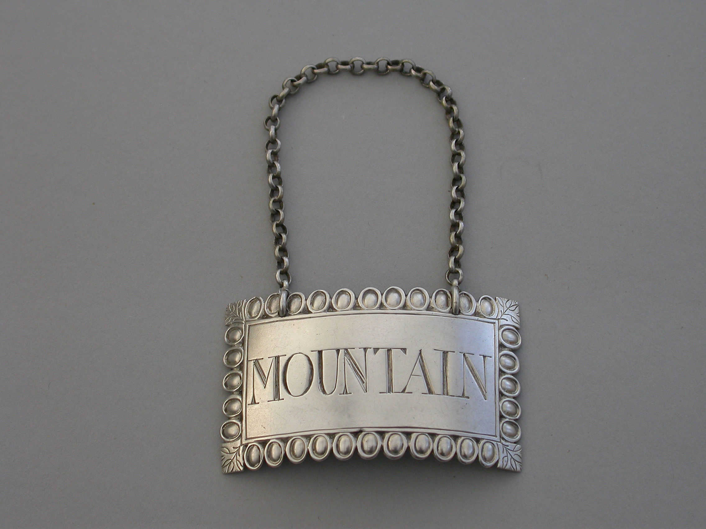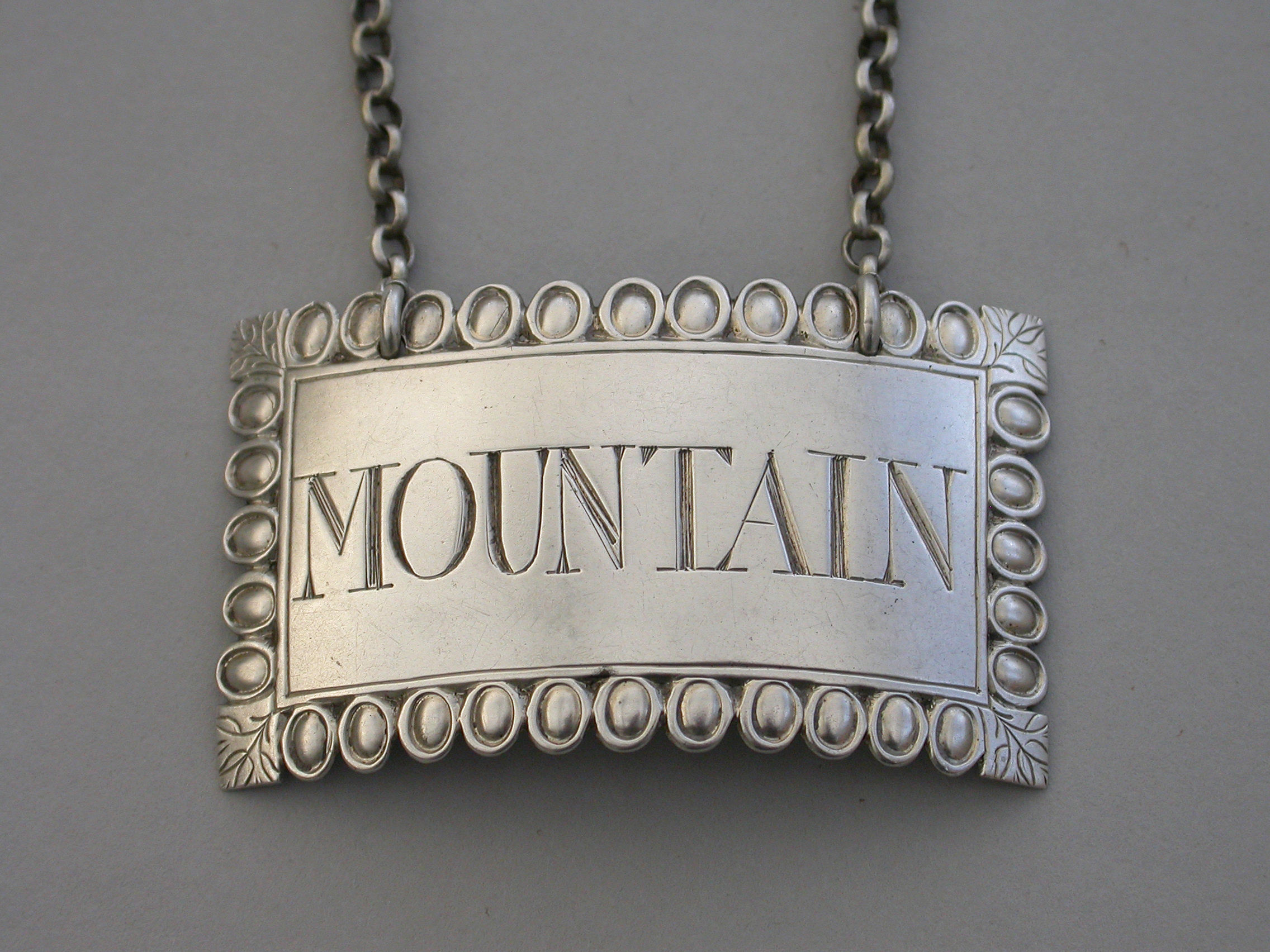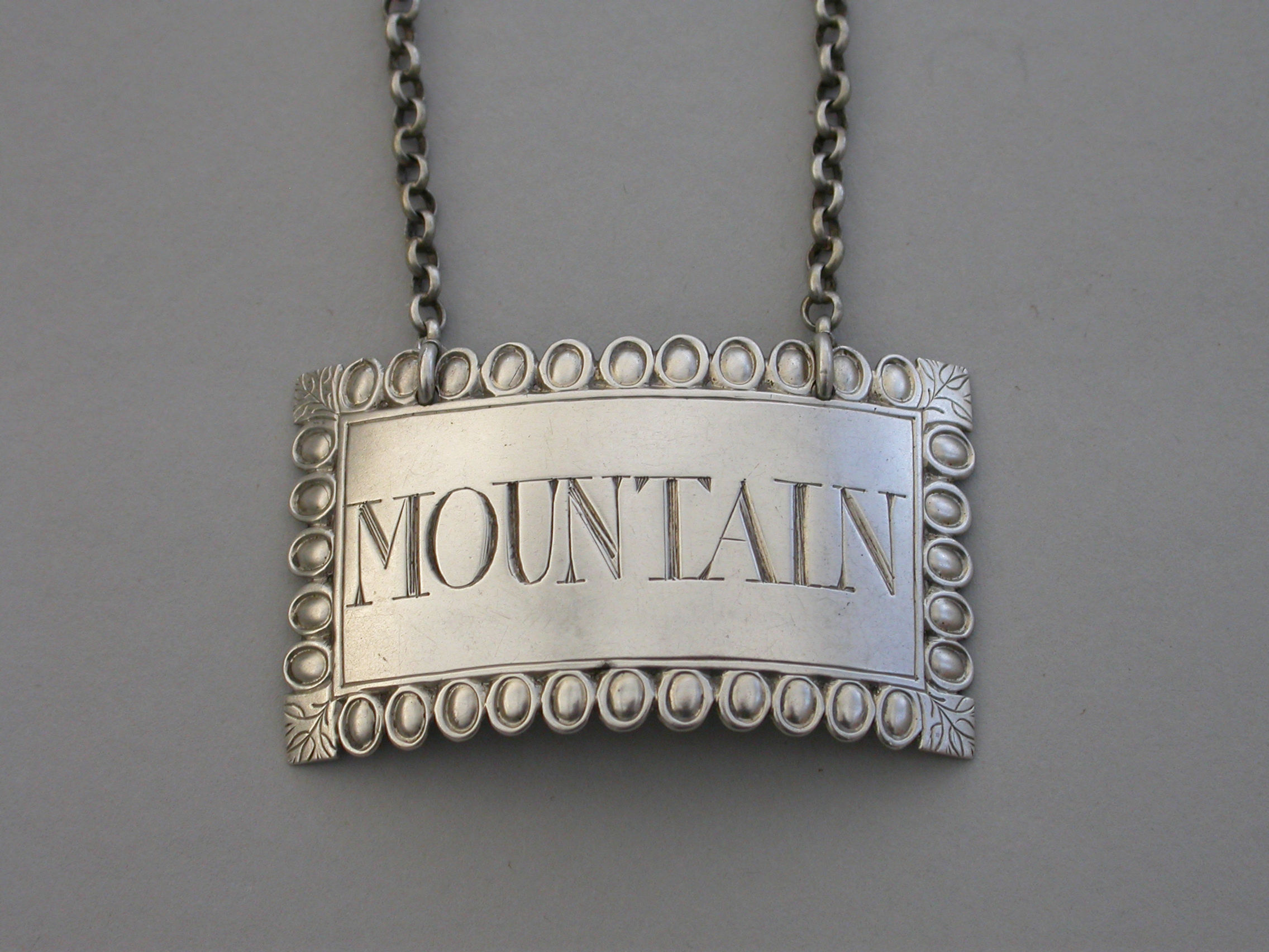 George III Silver Ovolo Border Wine Label 'Mountain'