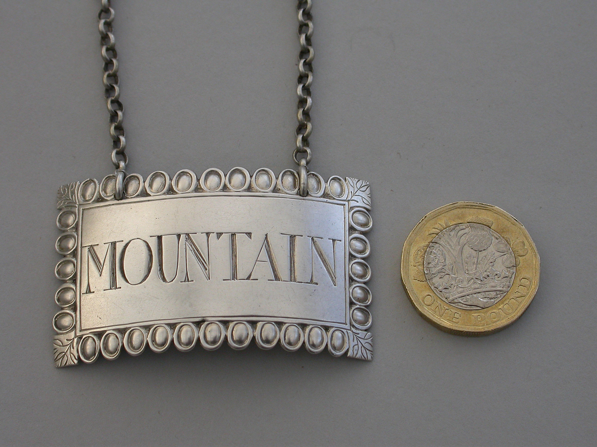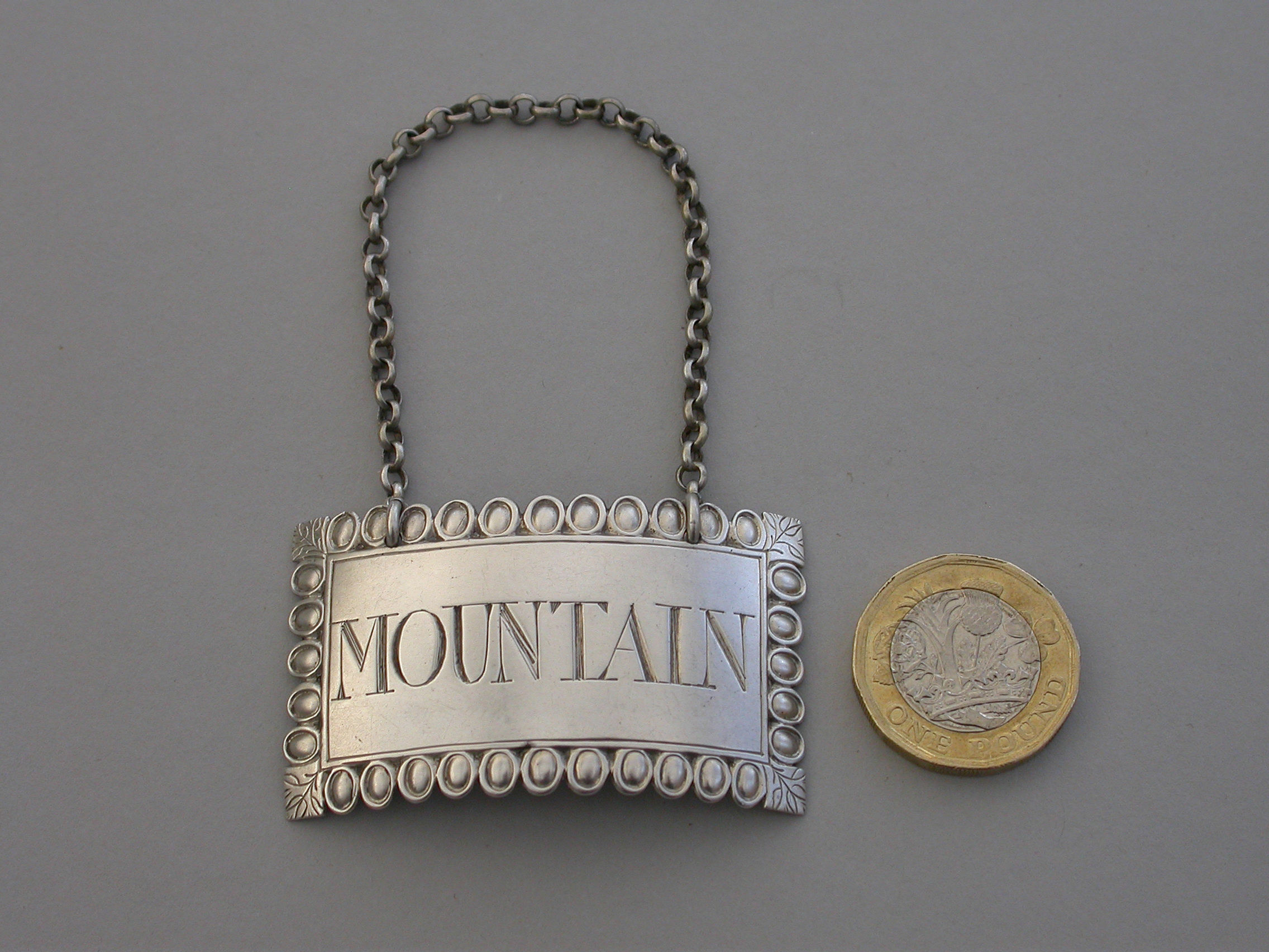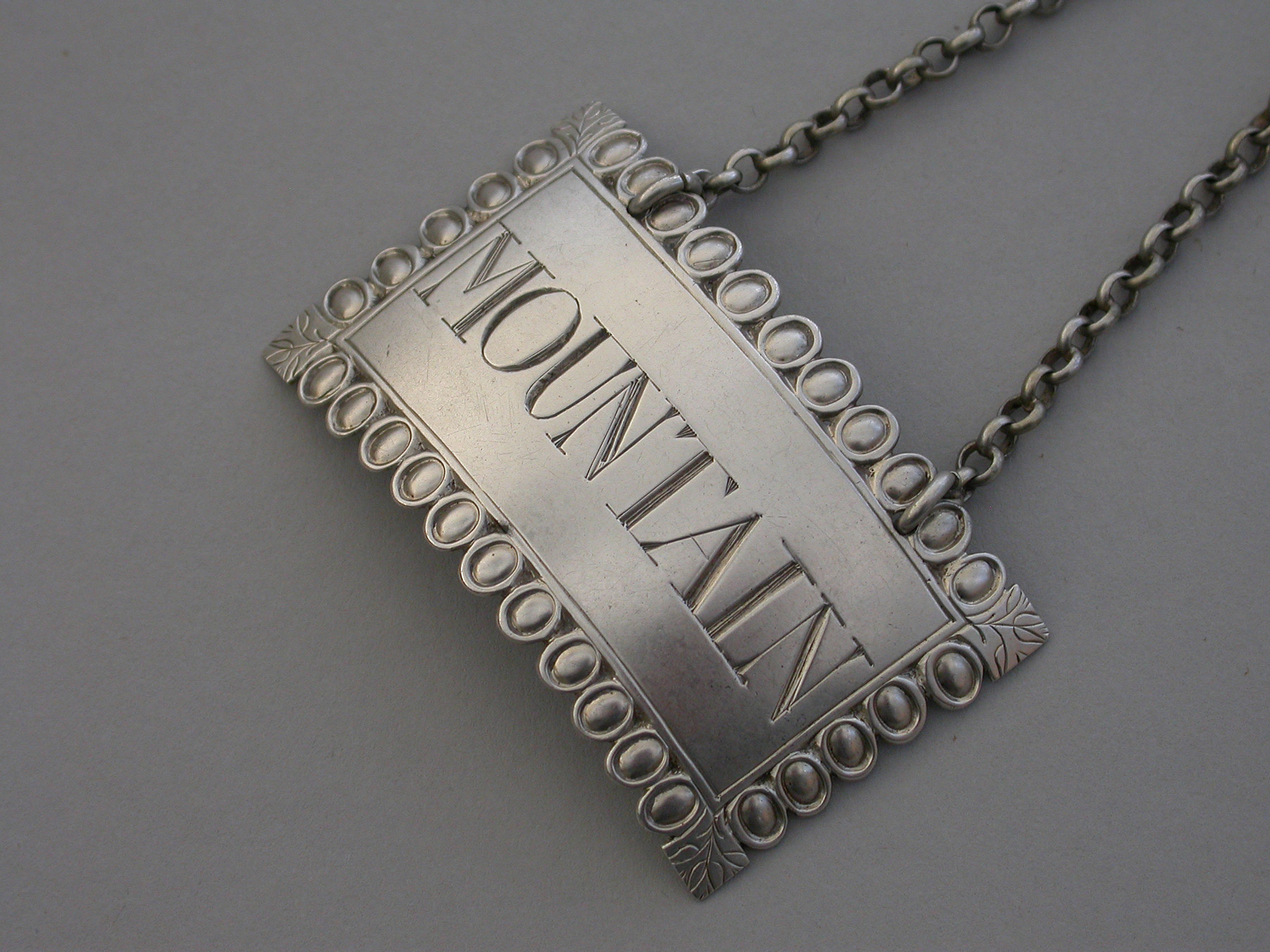 George III Silver Ovolo Border Wine Label 'Mountain'