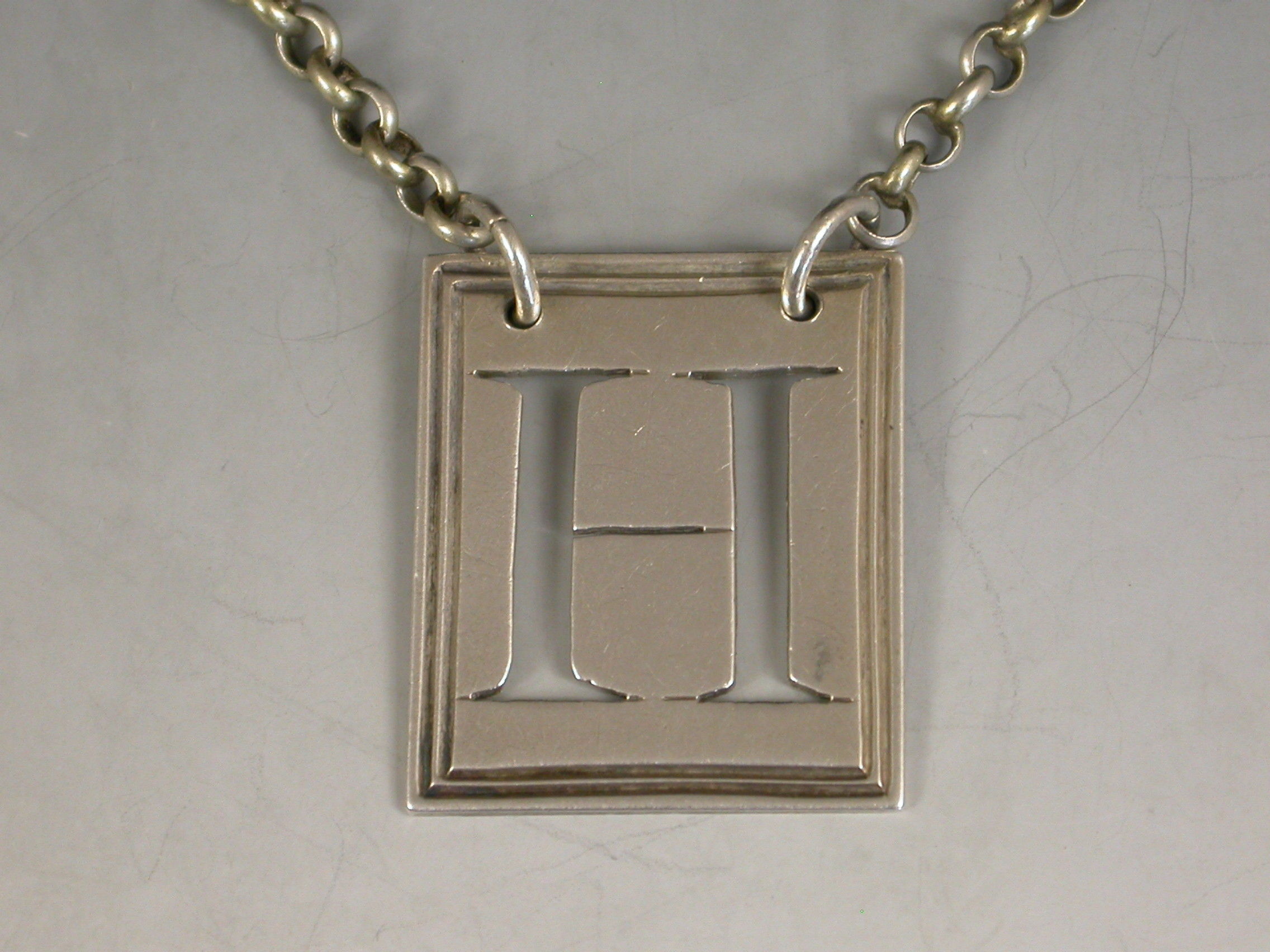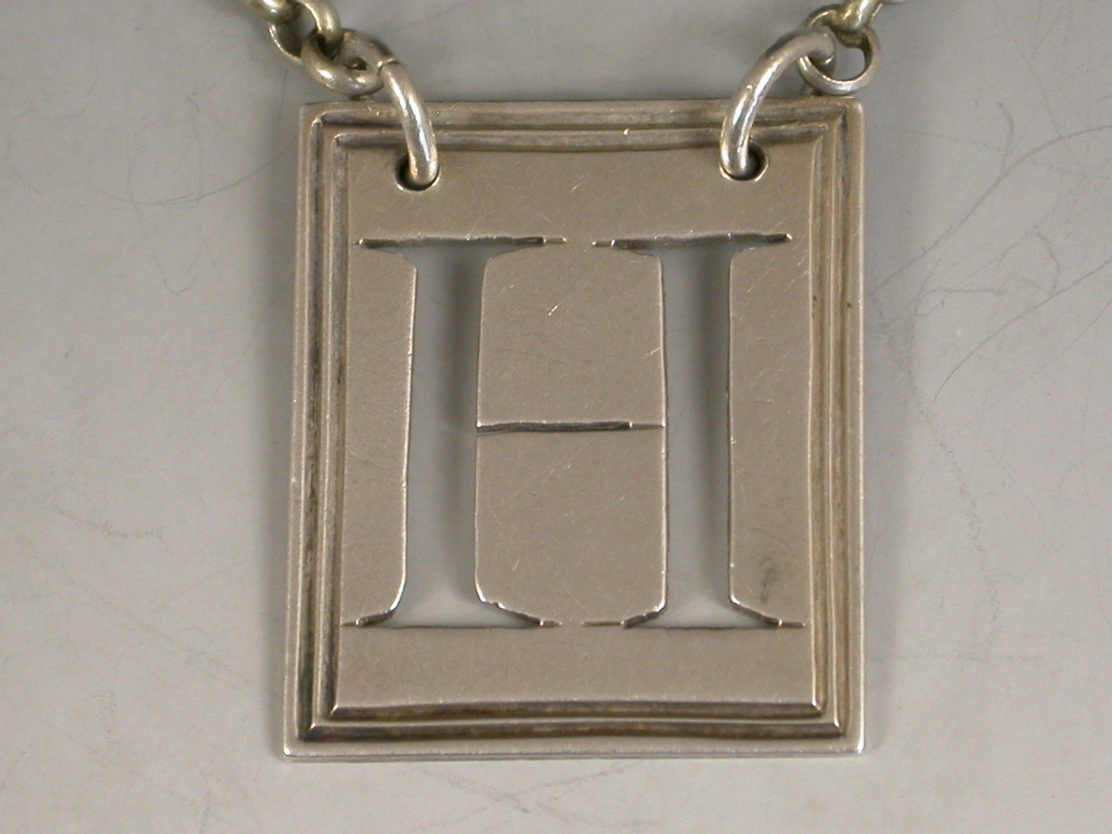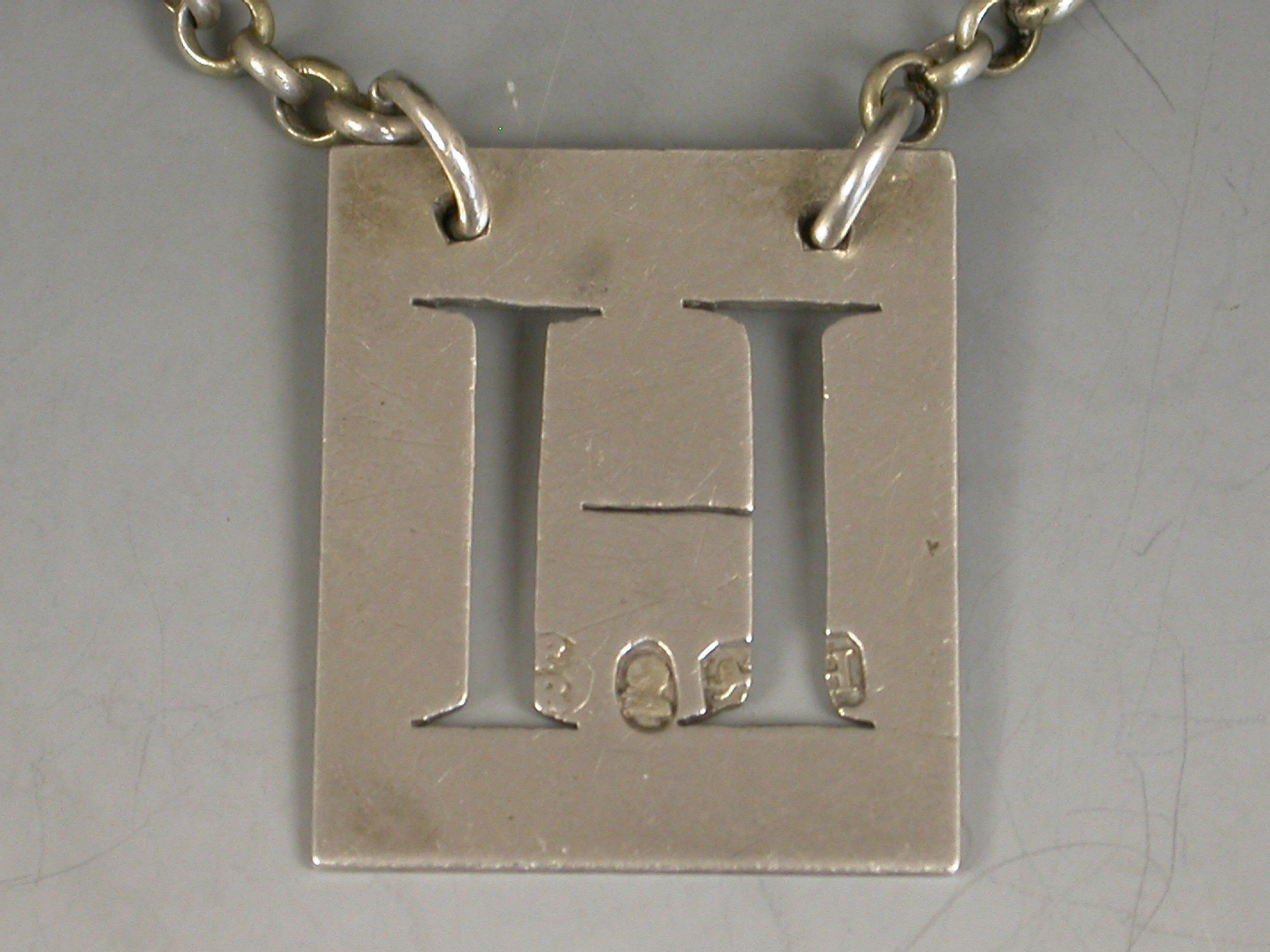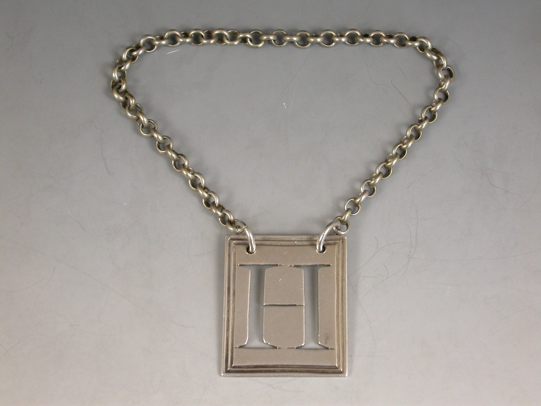 A good George III silver Wine Label of rectangular postage stamp form with double reeded border pierced with a capital letter 'H' (for Hollands).