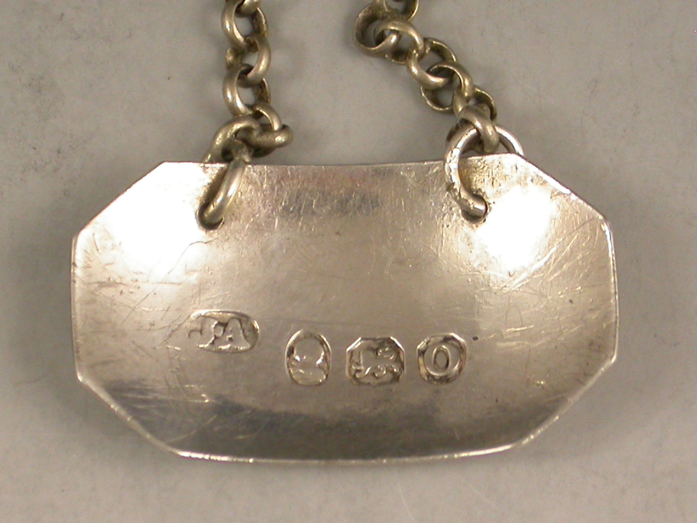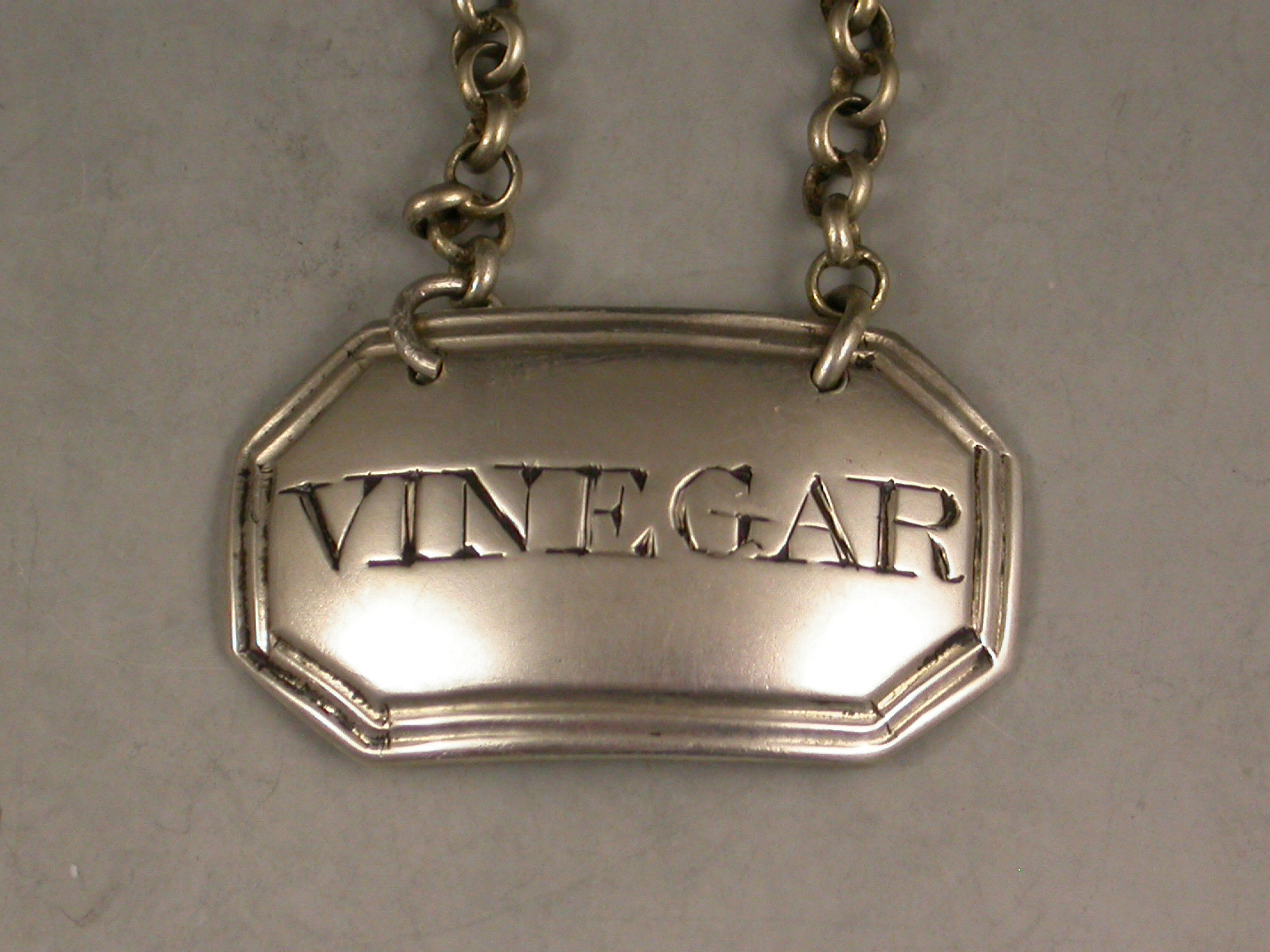 A rare George III silver Sauce Label of cut-cornered rectangular form with double reeded border, incised for Vinegar.