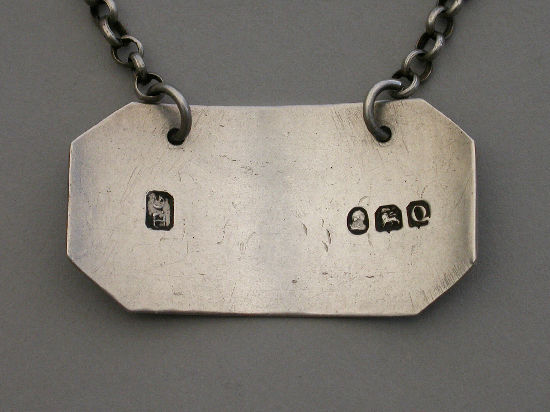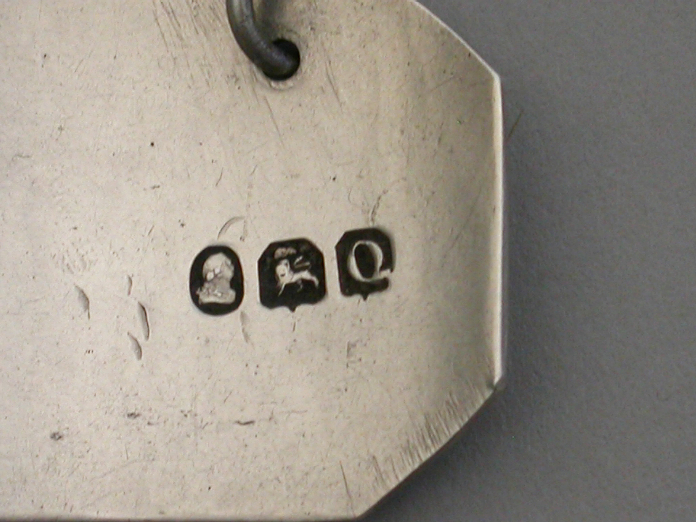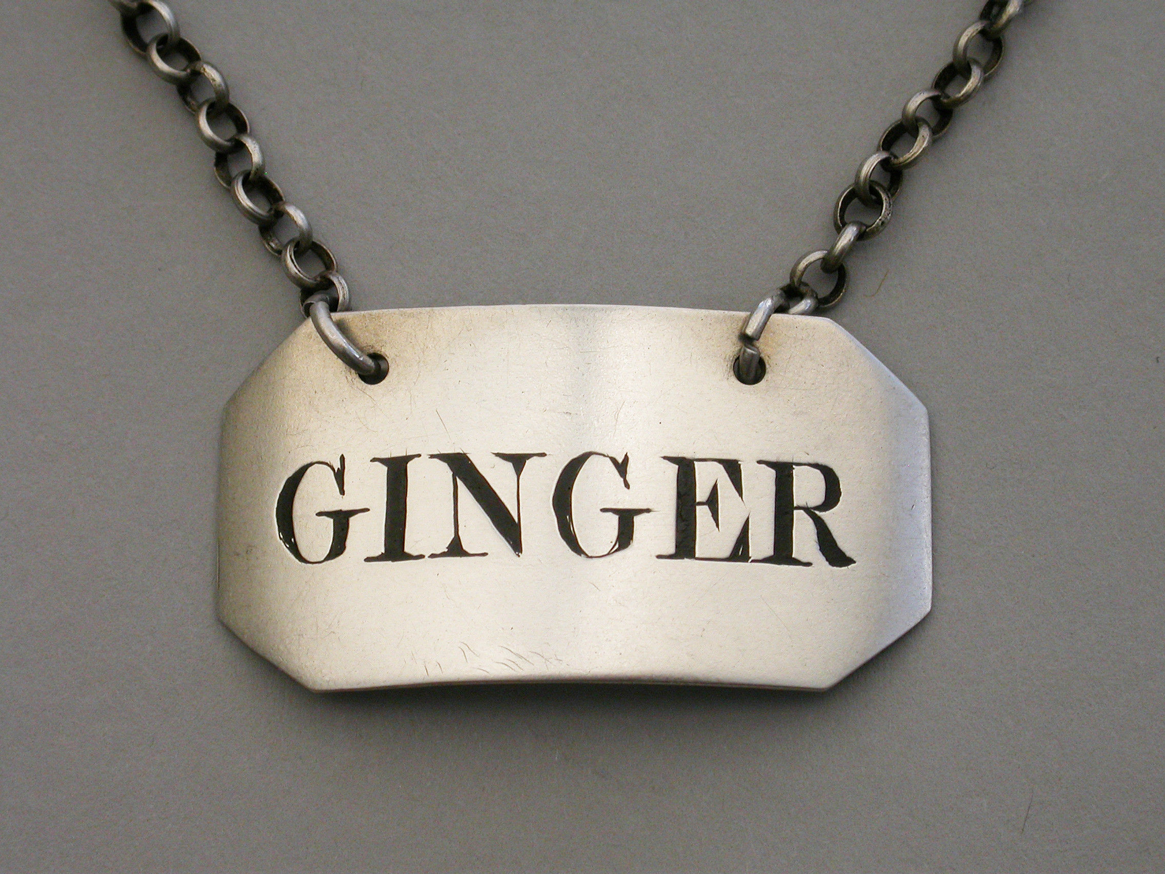A rare George III silver Wine Label of plain cut-cornered rectangular form, incised and niello filled for Ginger.