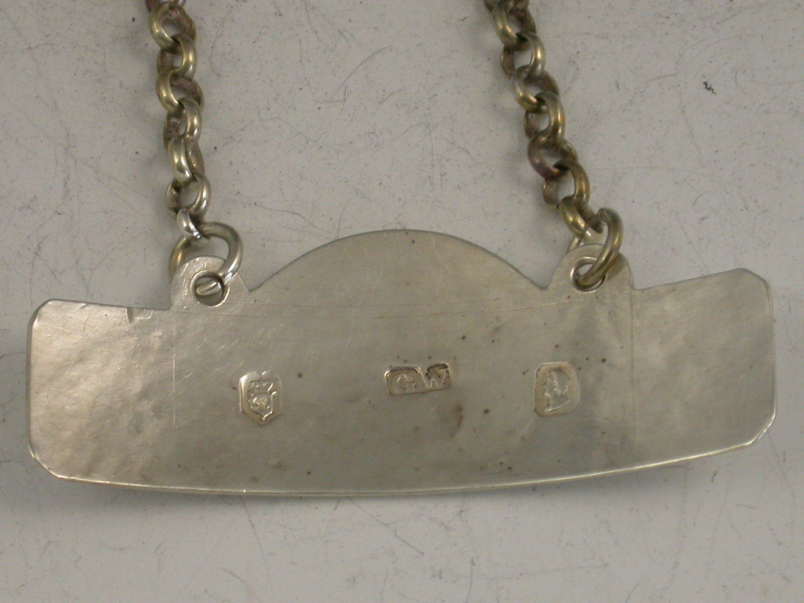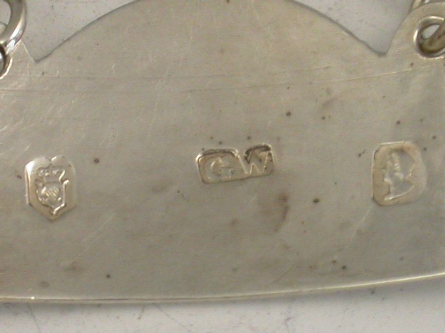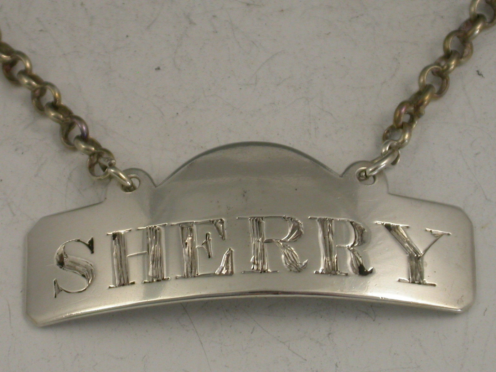 A rare George III Irish silver Wine Label of plain domed rectangular form with raised eyelets, incised for Sherry.