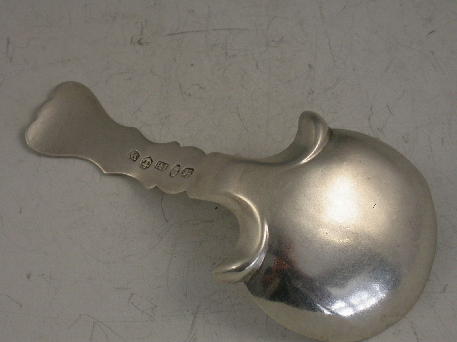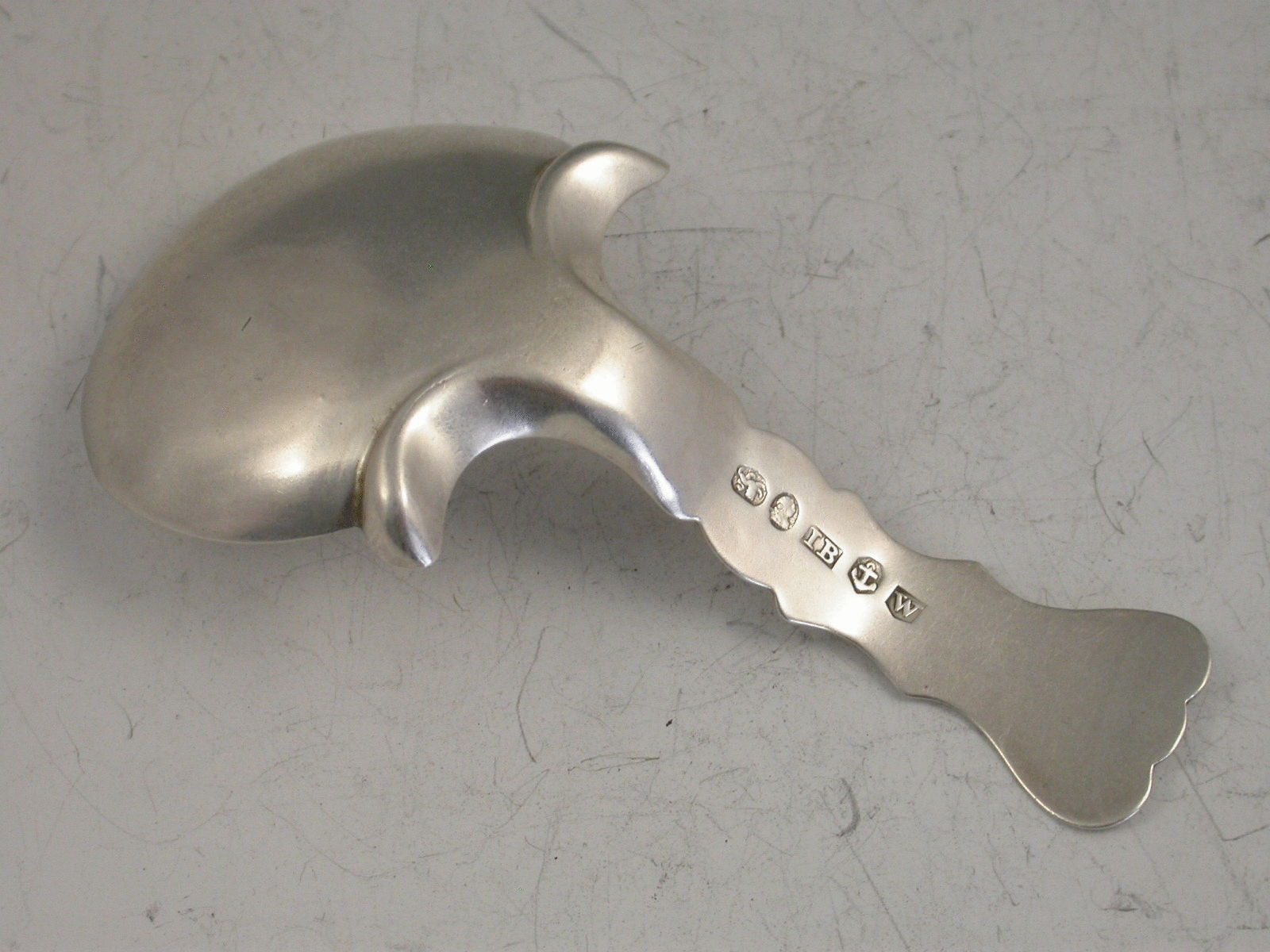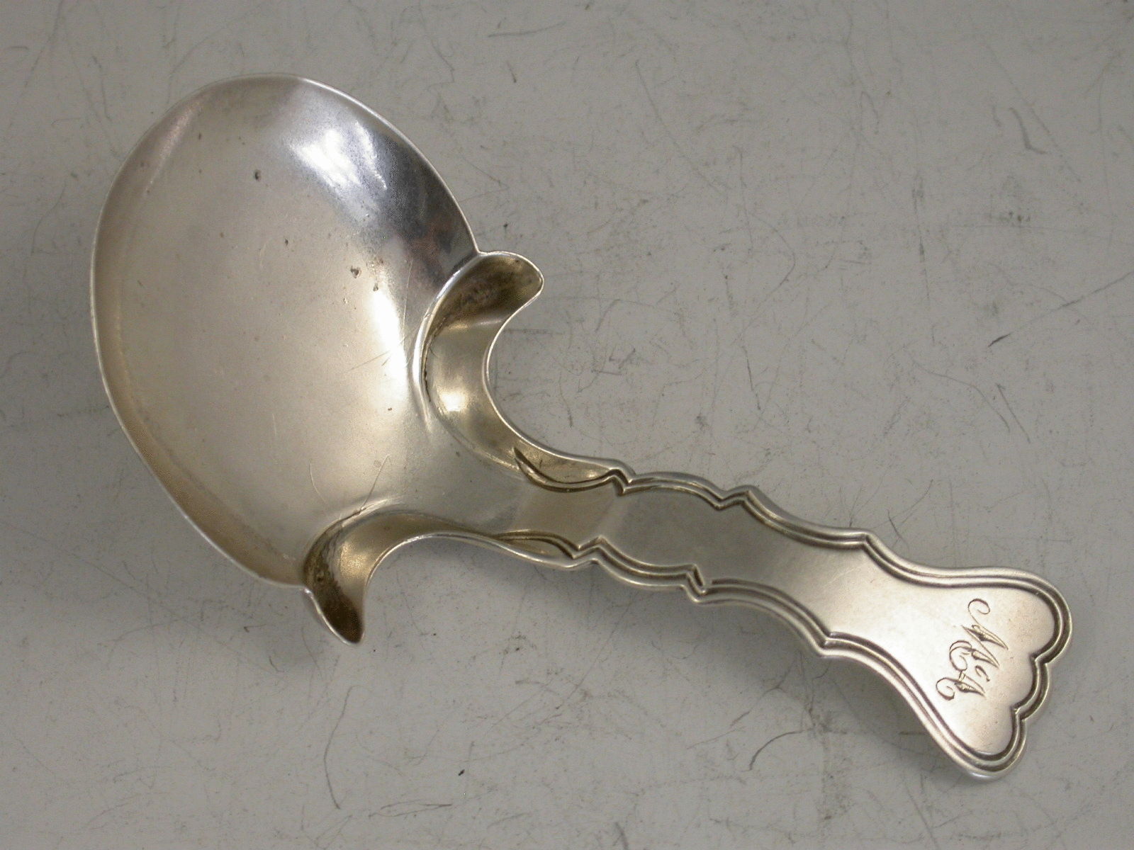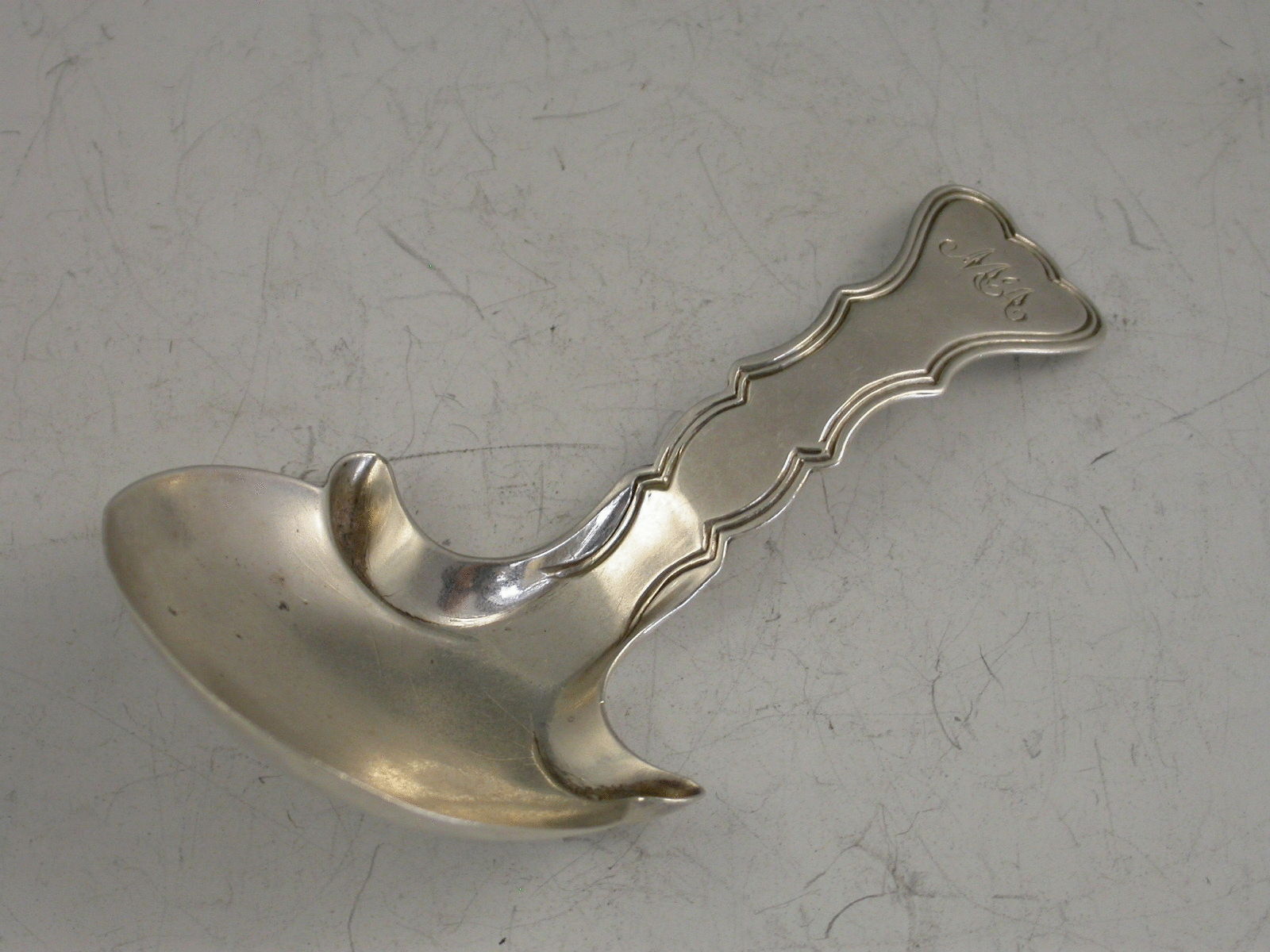 A good George IV silver Caddy Spoon, the plain semi circular bowl with flared flutes at the base of the shaped handle, with double thread boarder. Engraved with initials ‘MA’.