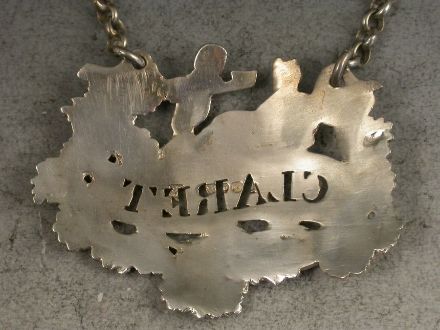 George IV Cast Silver Wine Label 'Claret' Reclining Dionysus