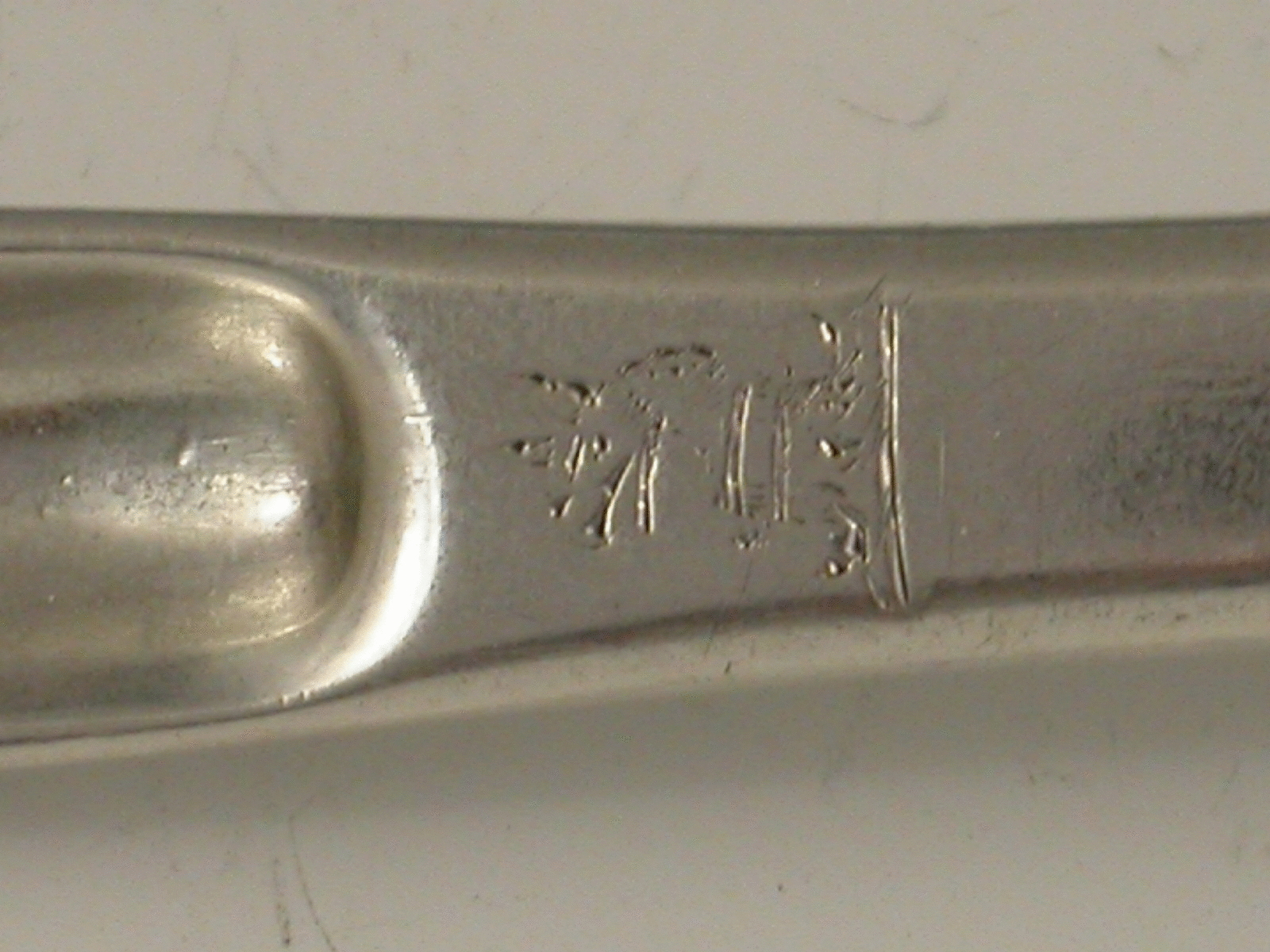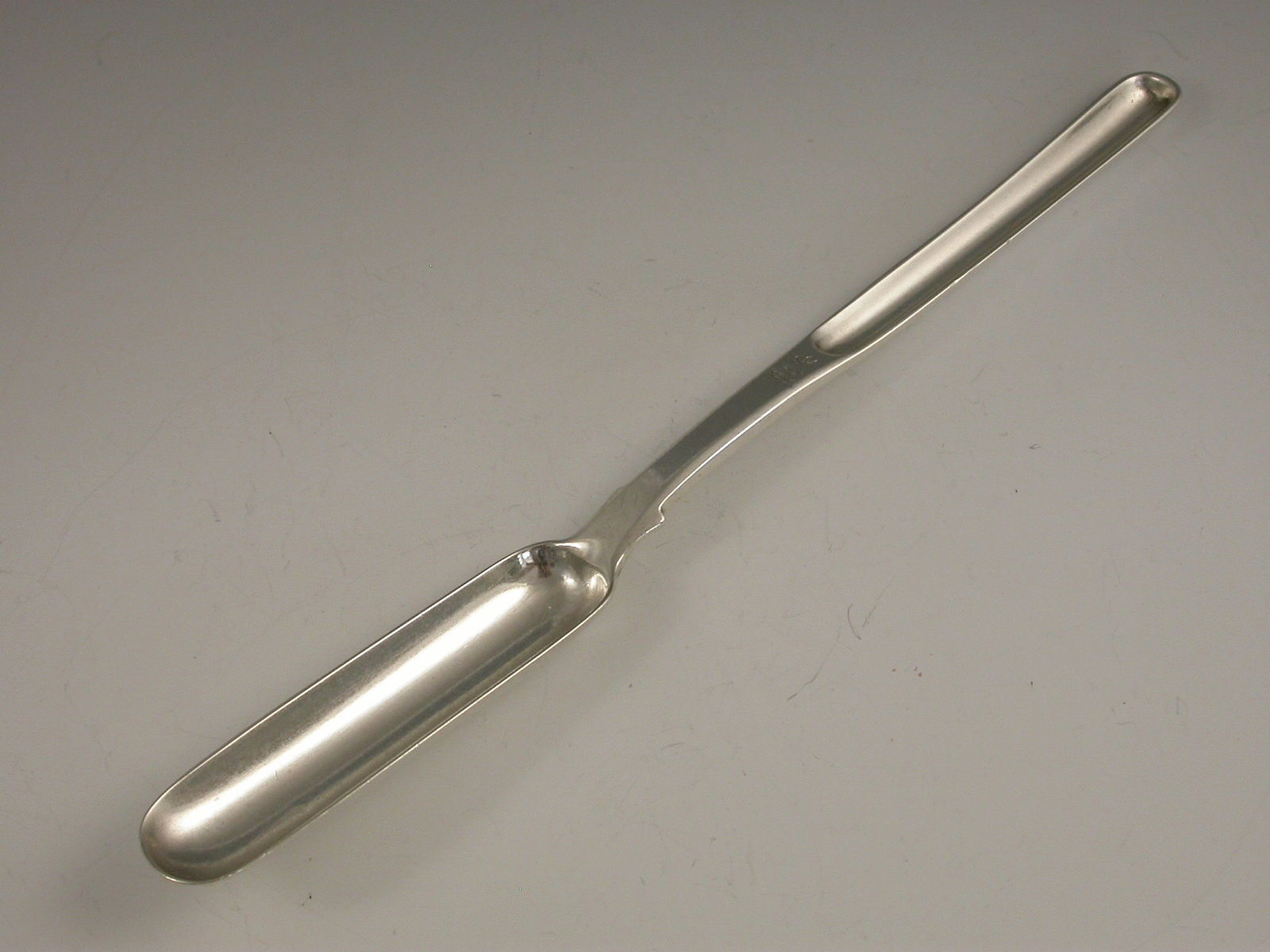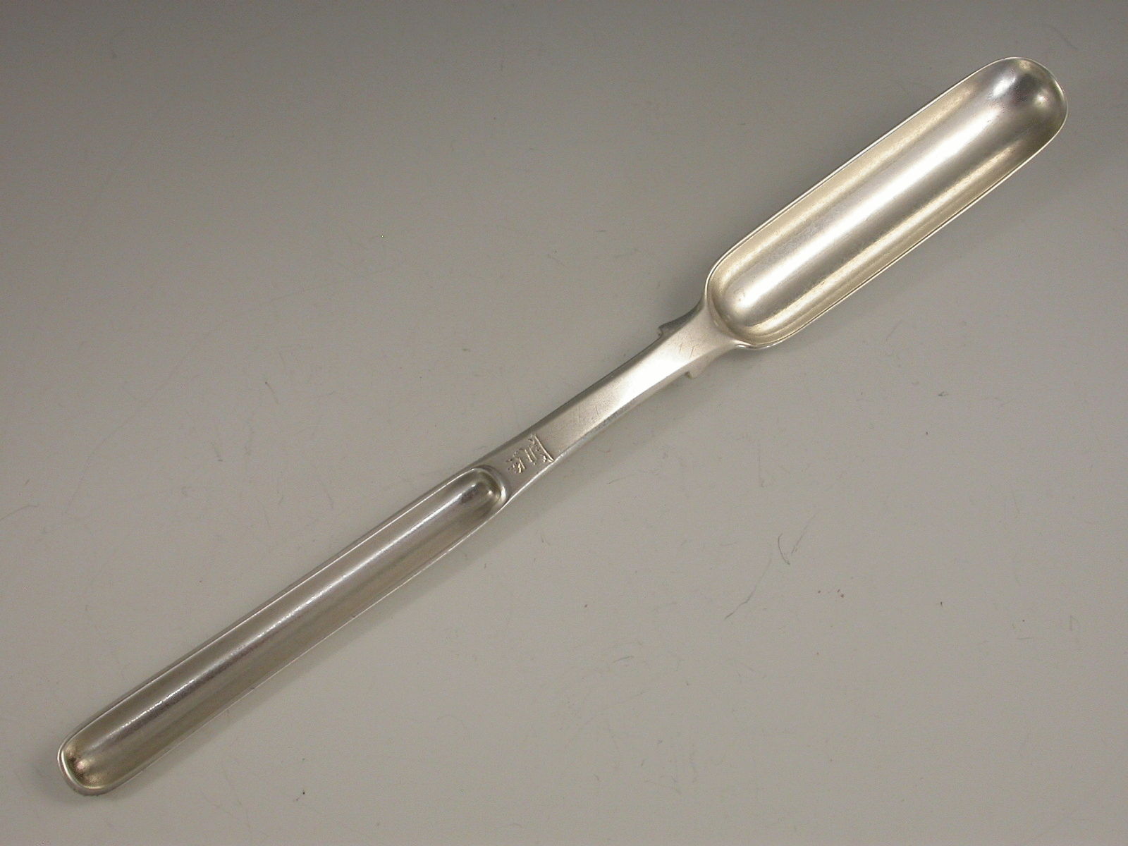 A good George IV silver double ended Marrow Scoop, the handle engraved with a crest of a collared Gryphons head.