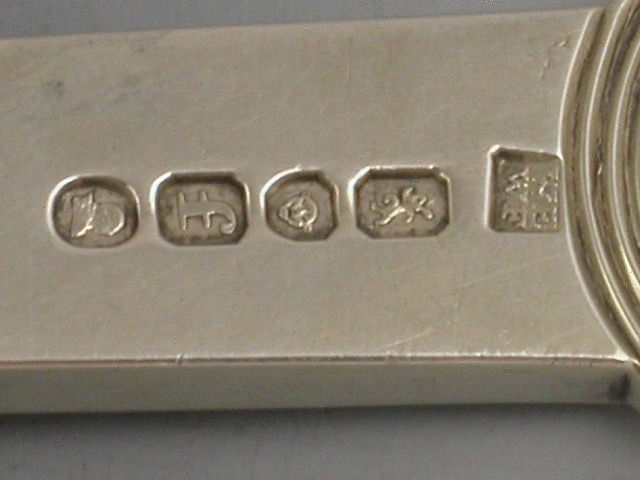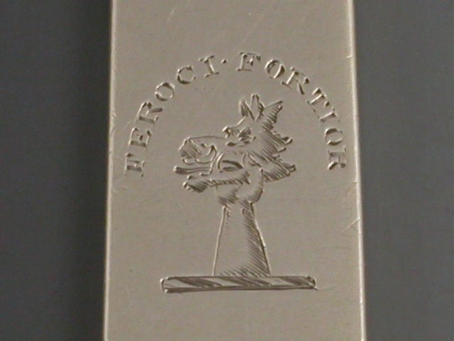 A good George IV silver Meat Skewer with solid reeded circular handle. Engraved with the crest and motto of Lockhart of Lanarkshire, Scotland.