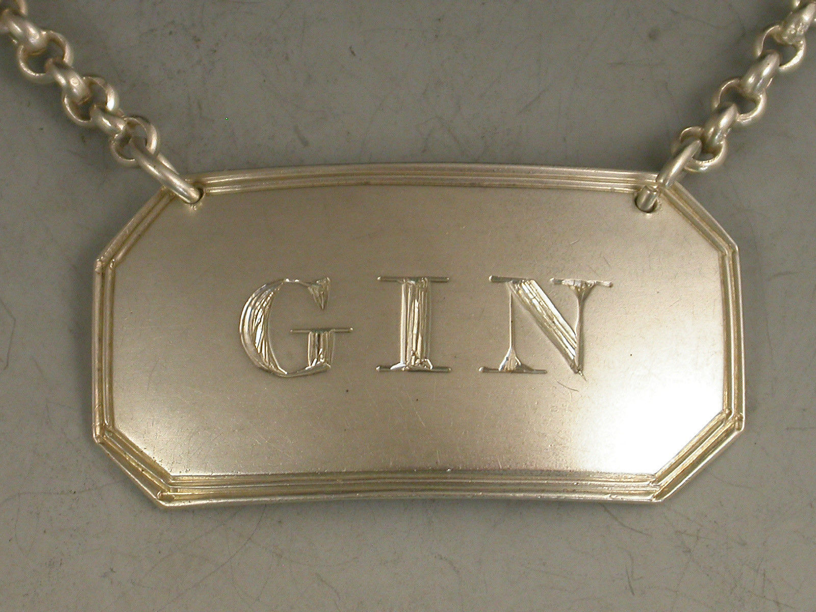 A good George IV Scottish silver Wine Label of cut-cornered rectangular form with double reeded border, incised for Gin.