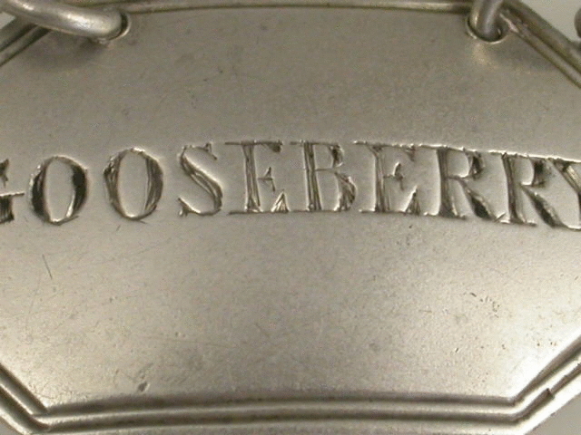 A rare George IV silver Cordial or Liquor Label of rectangular form with cut corners and double reeded border, incised for GOOSEBERRY