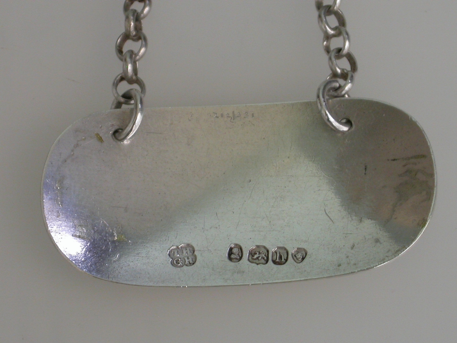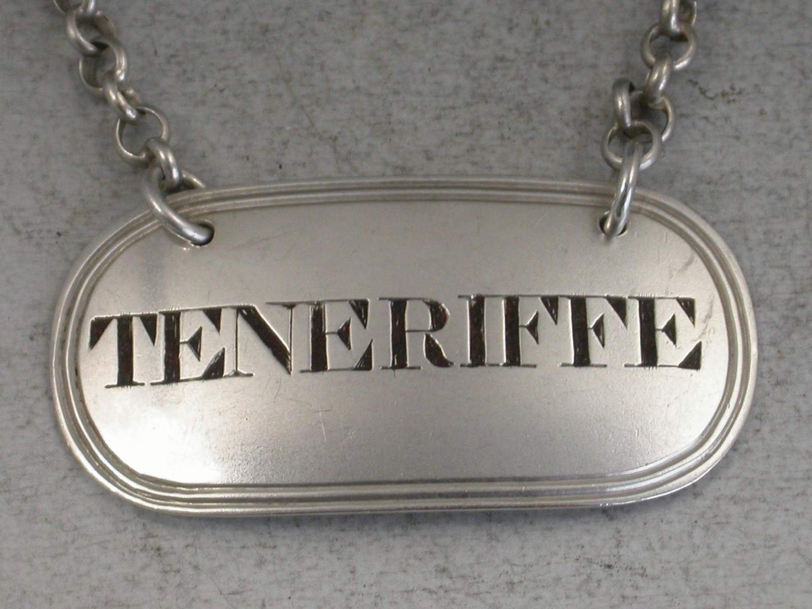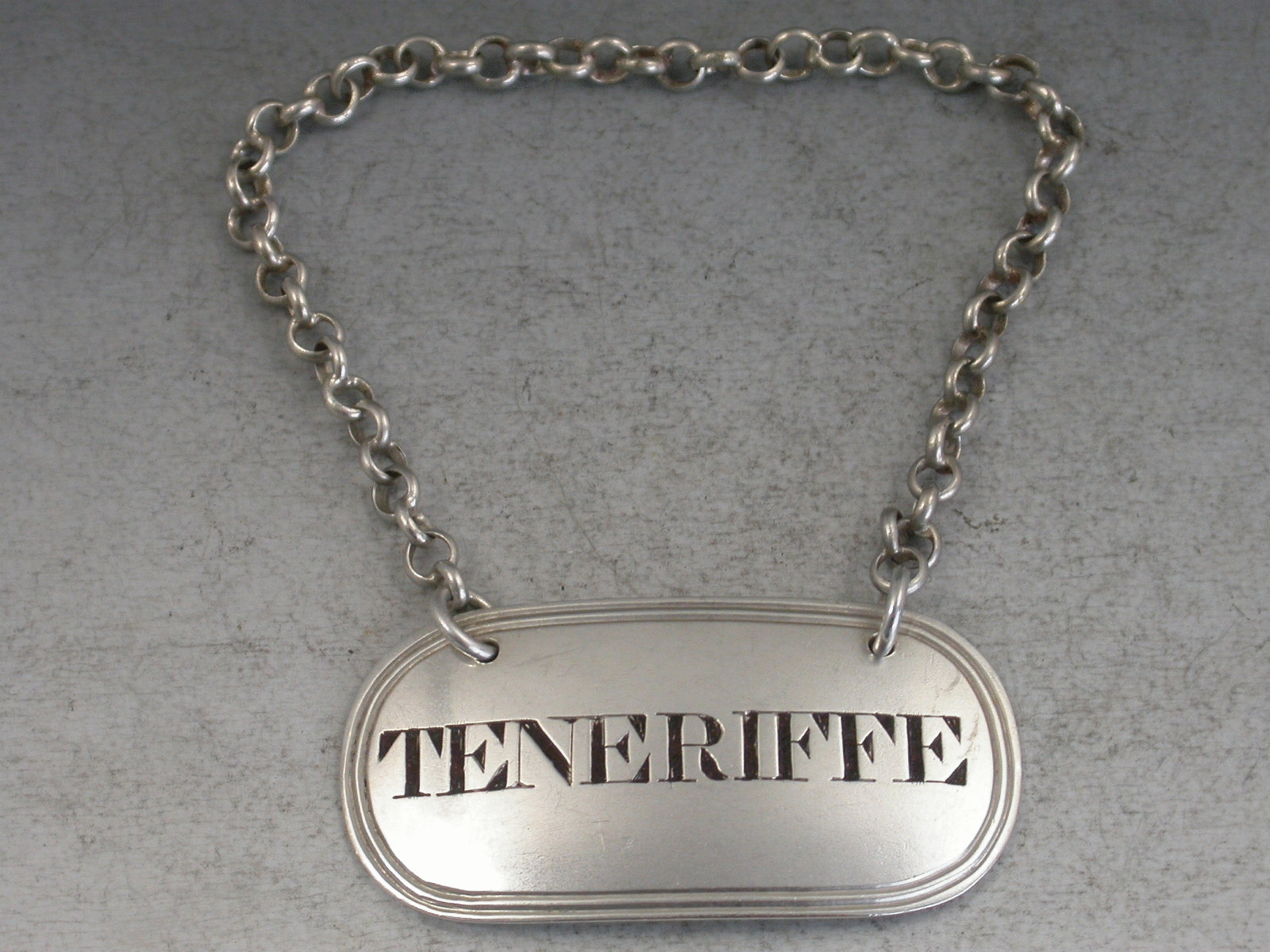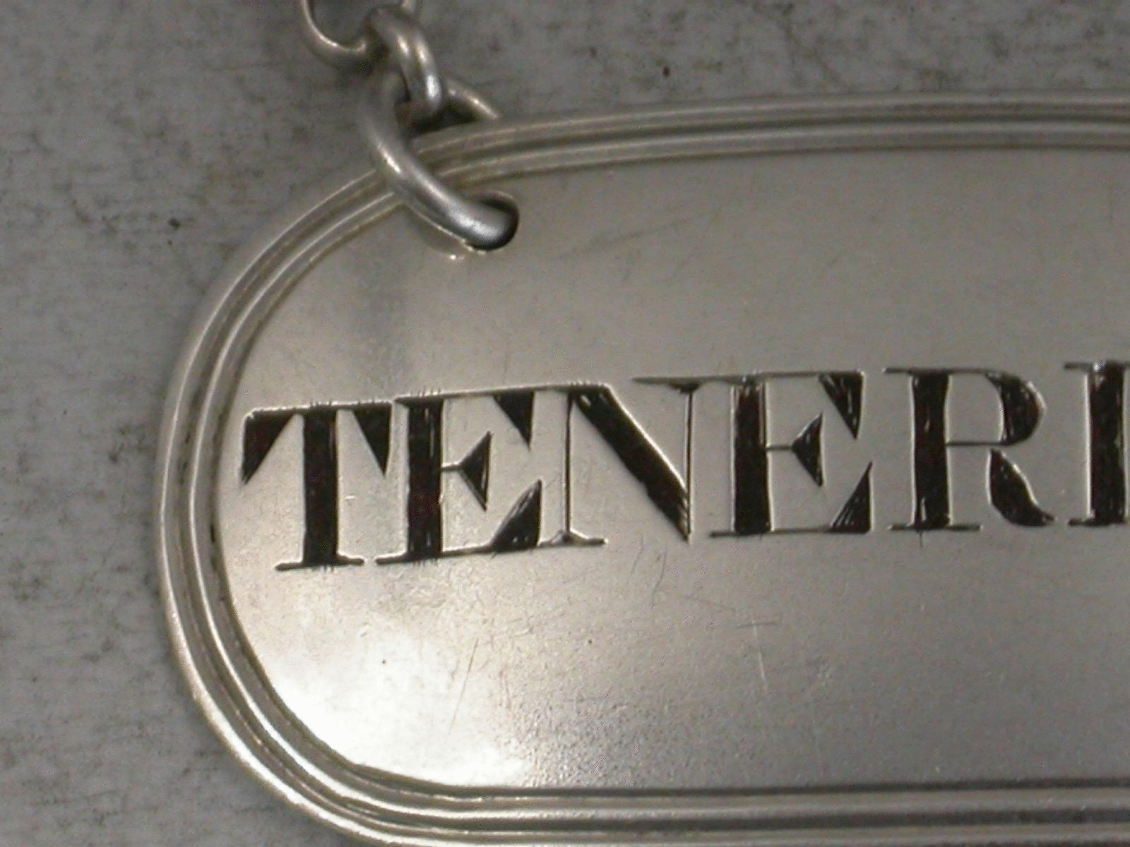 A good George IV silver Wine Label of oval form with double reeded border, incised and niello filled for Teneriffe.