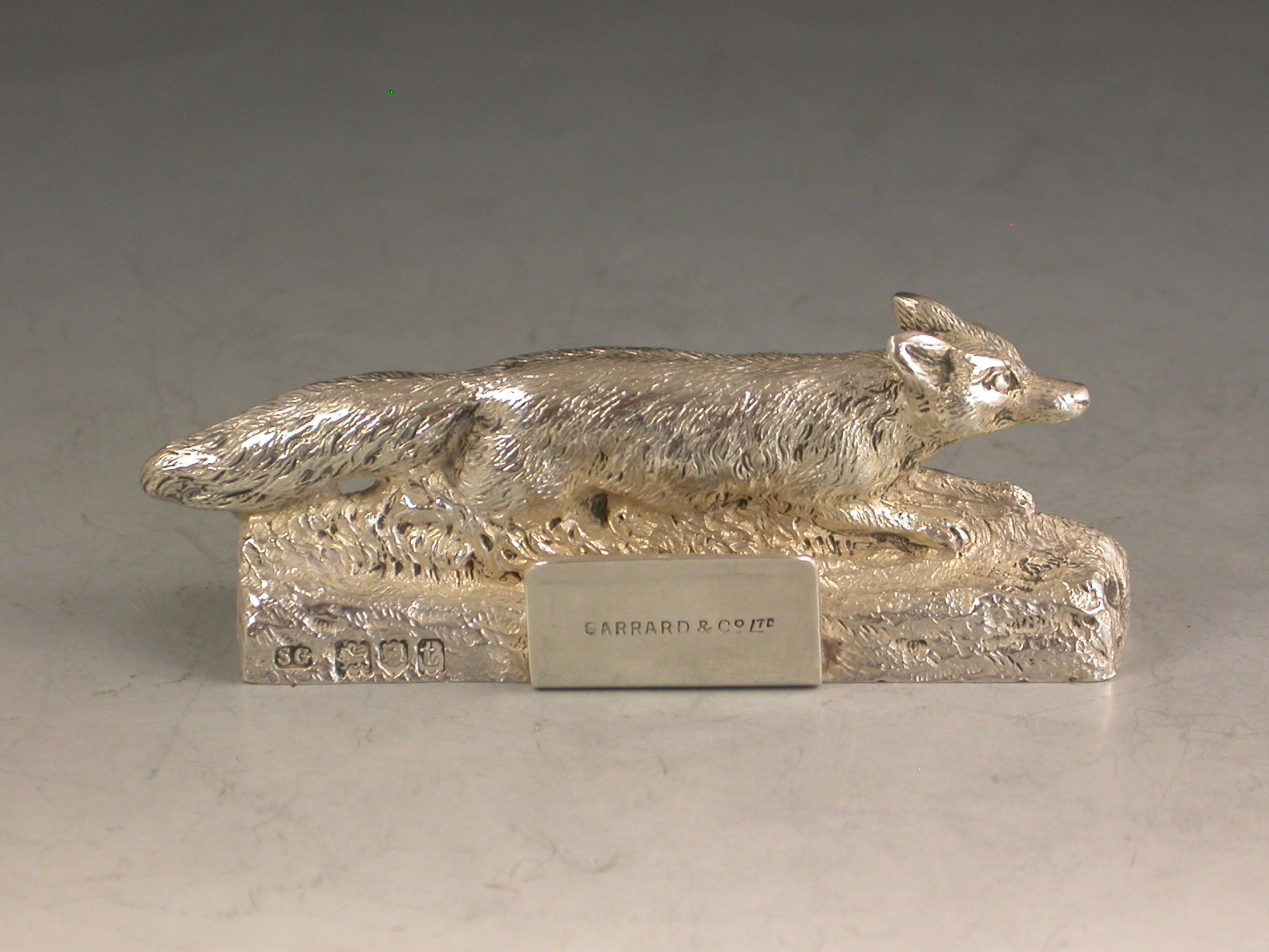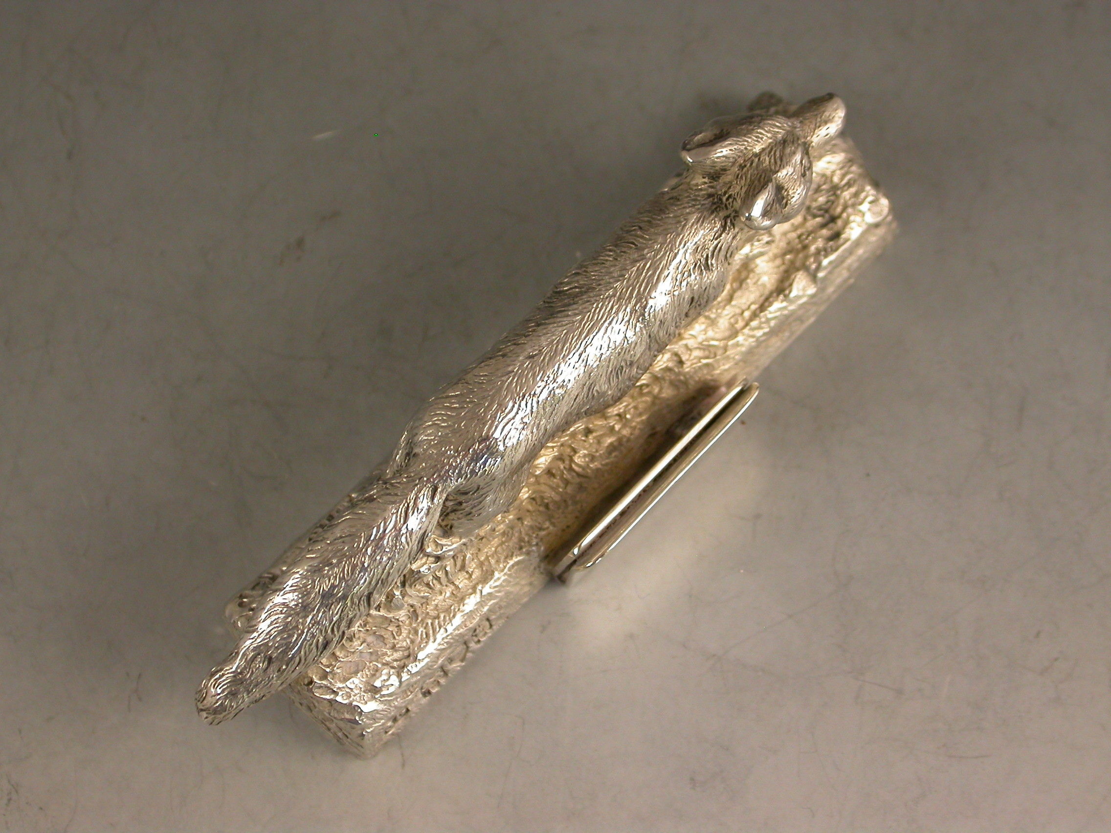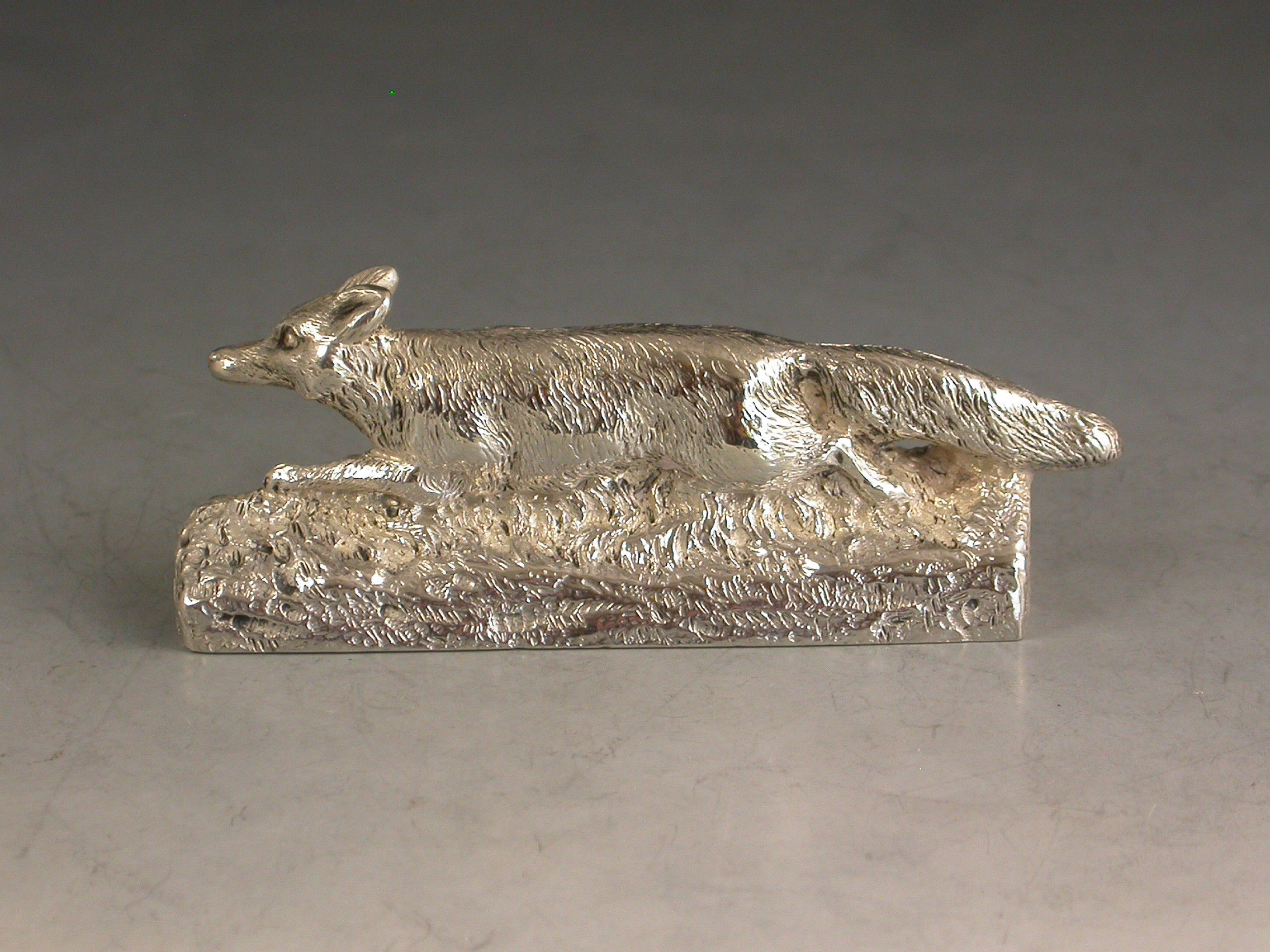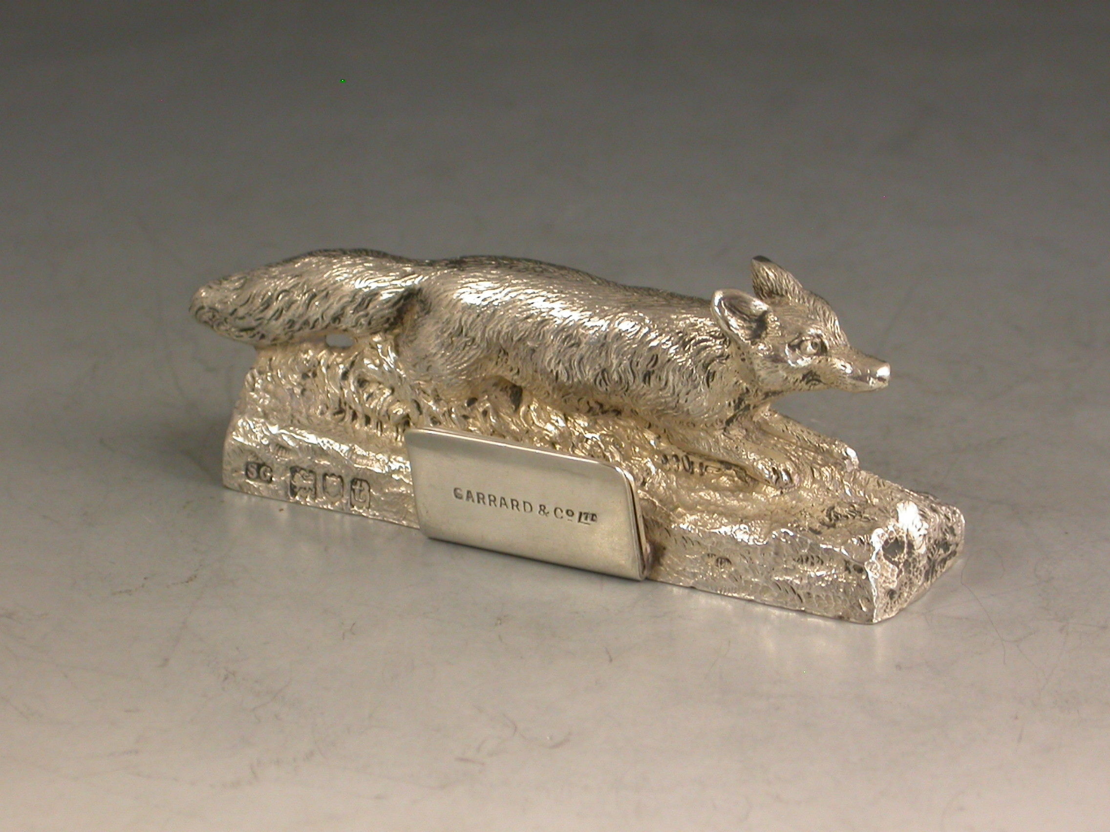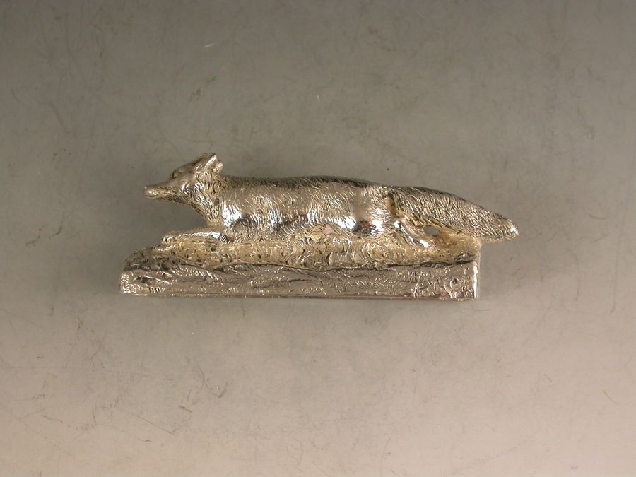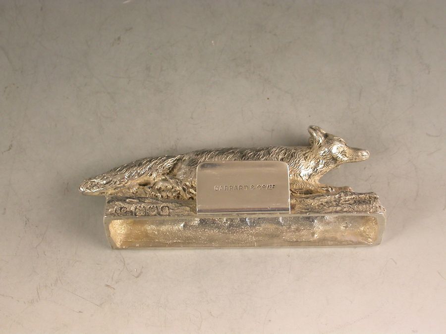 A good quality early 20th century cast silver Menu Holder made in the form of a running fox.