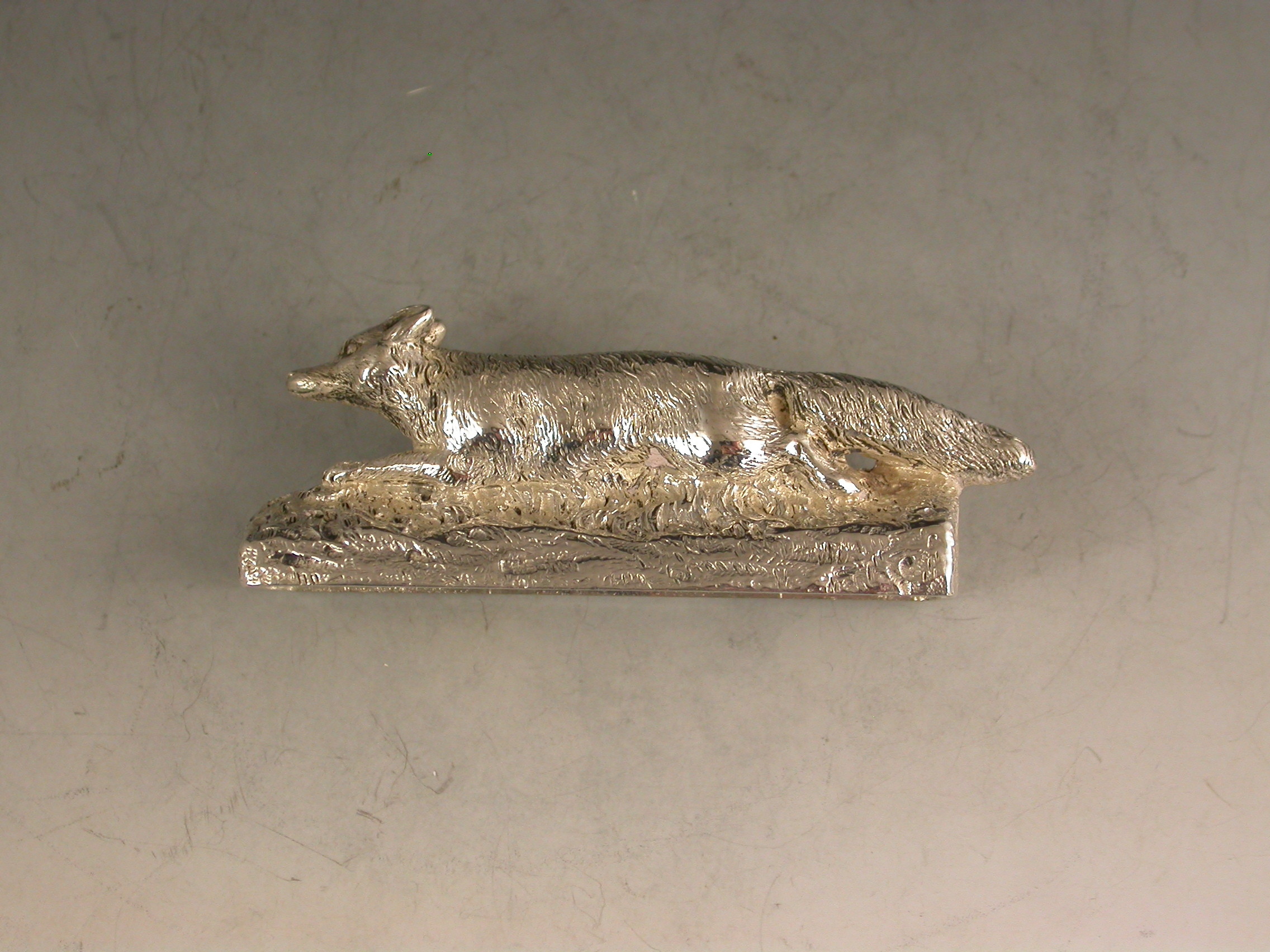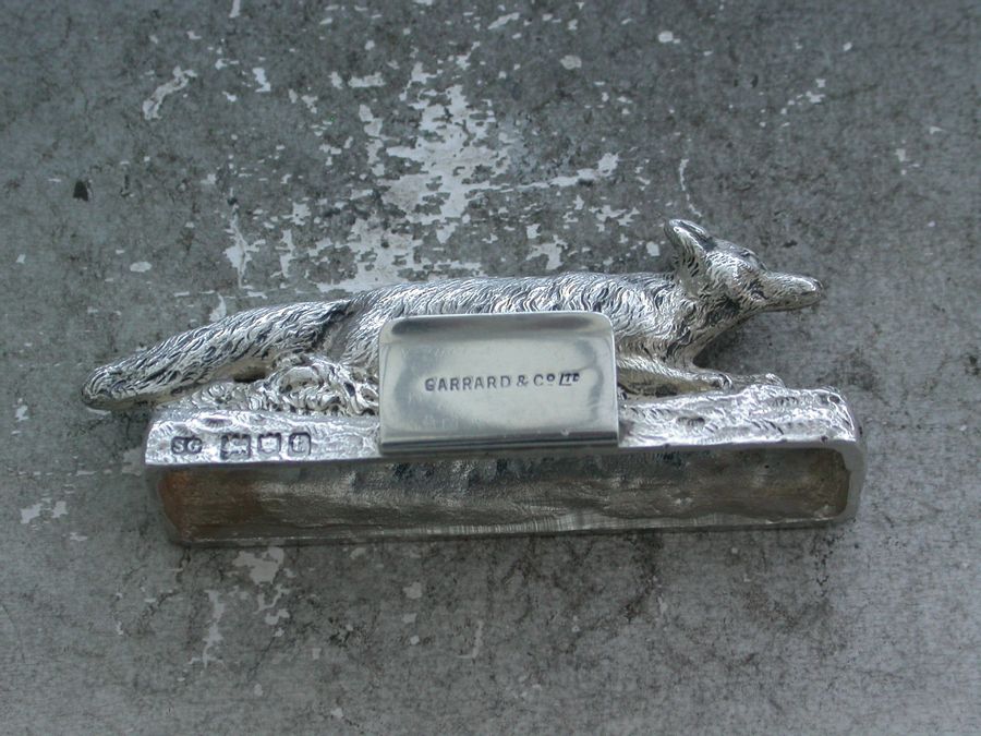 George V Cast Silver Running Fox Menu Holder