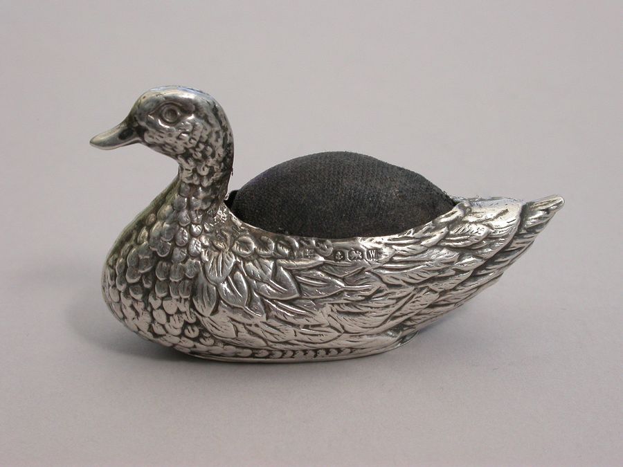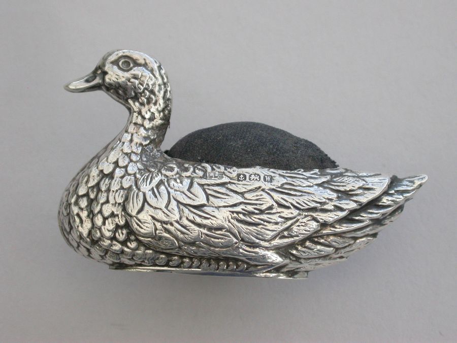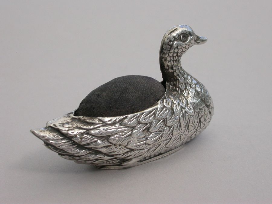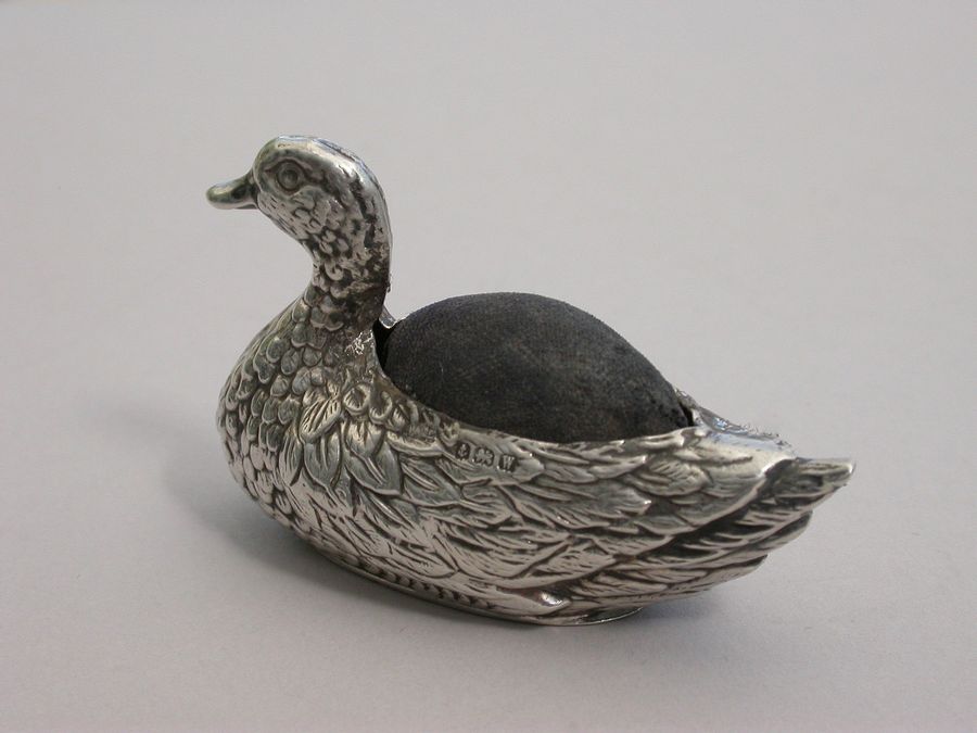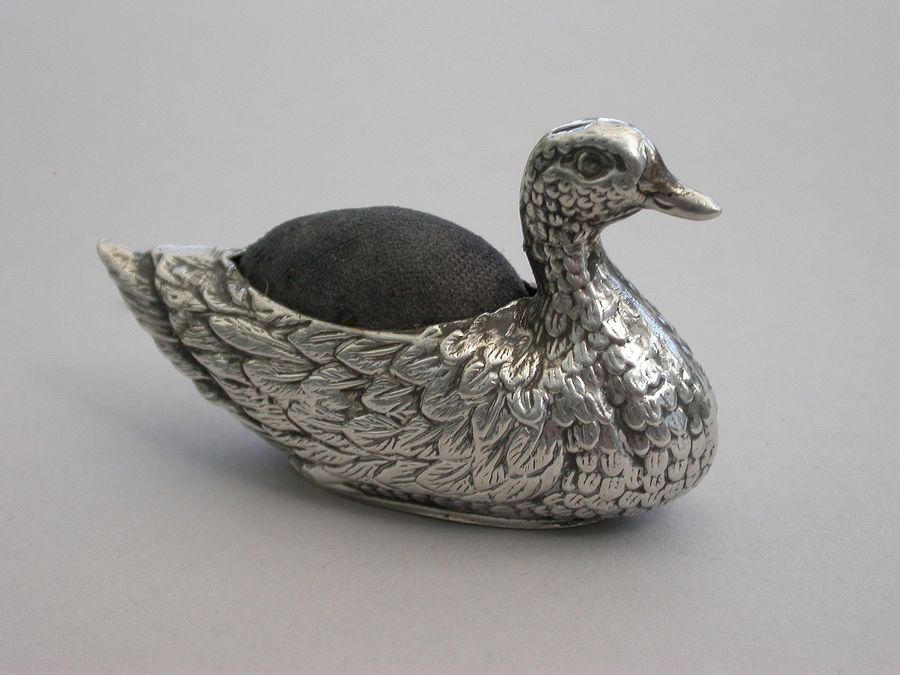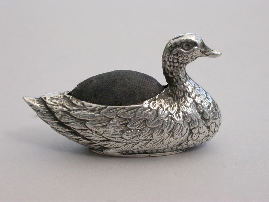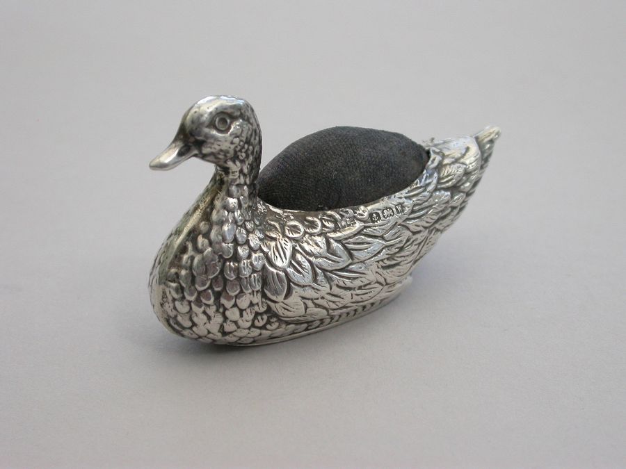 A good early 20th century novelty silver Pin Cushion, made in the form of a swimming duck, with textured feathers and complete with original velvet cushion.