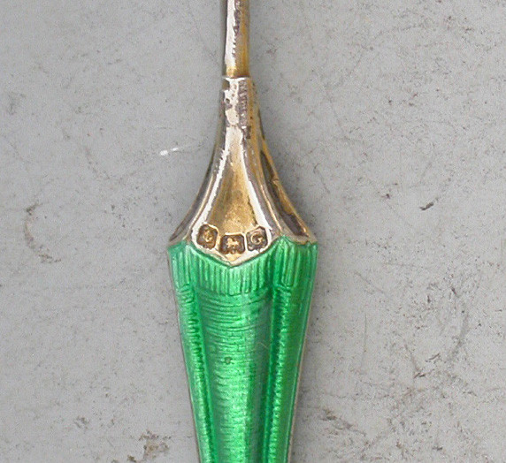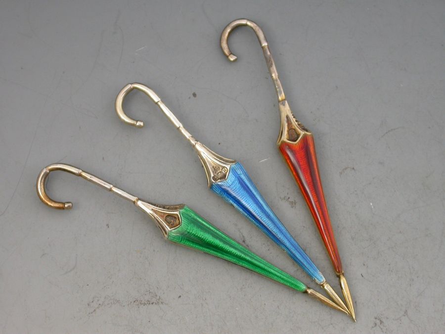 George V Set 12 Novelty Silver & Enamel Umbrella Cocktail Sticks