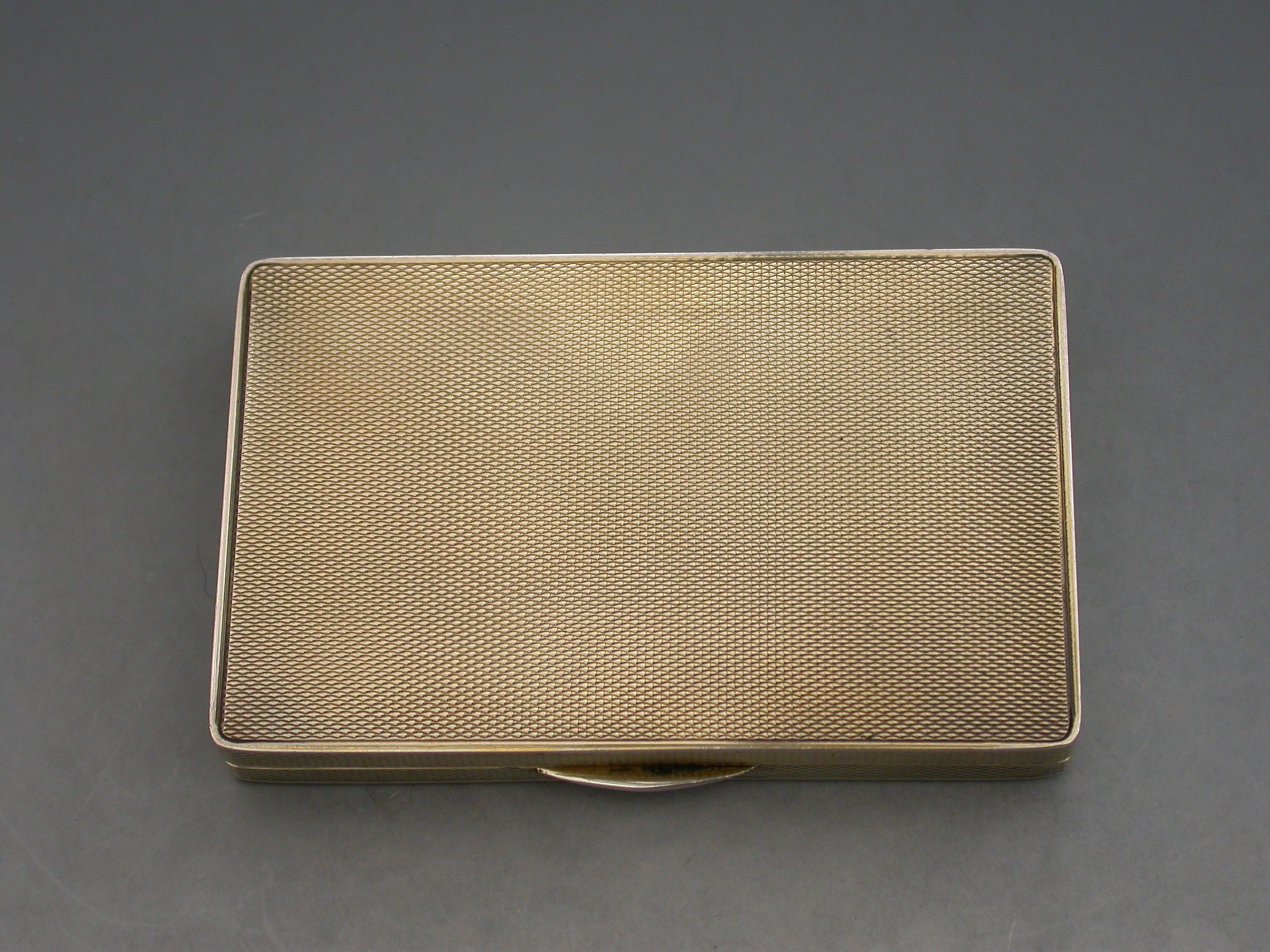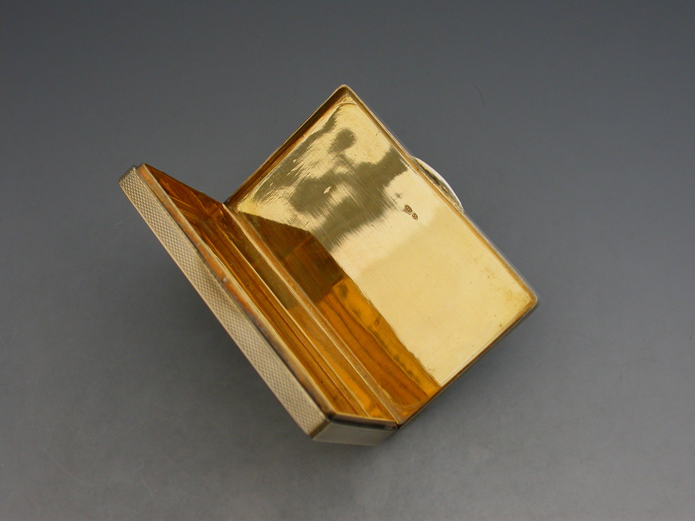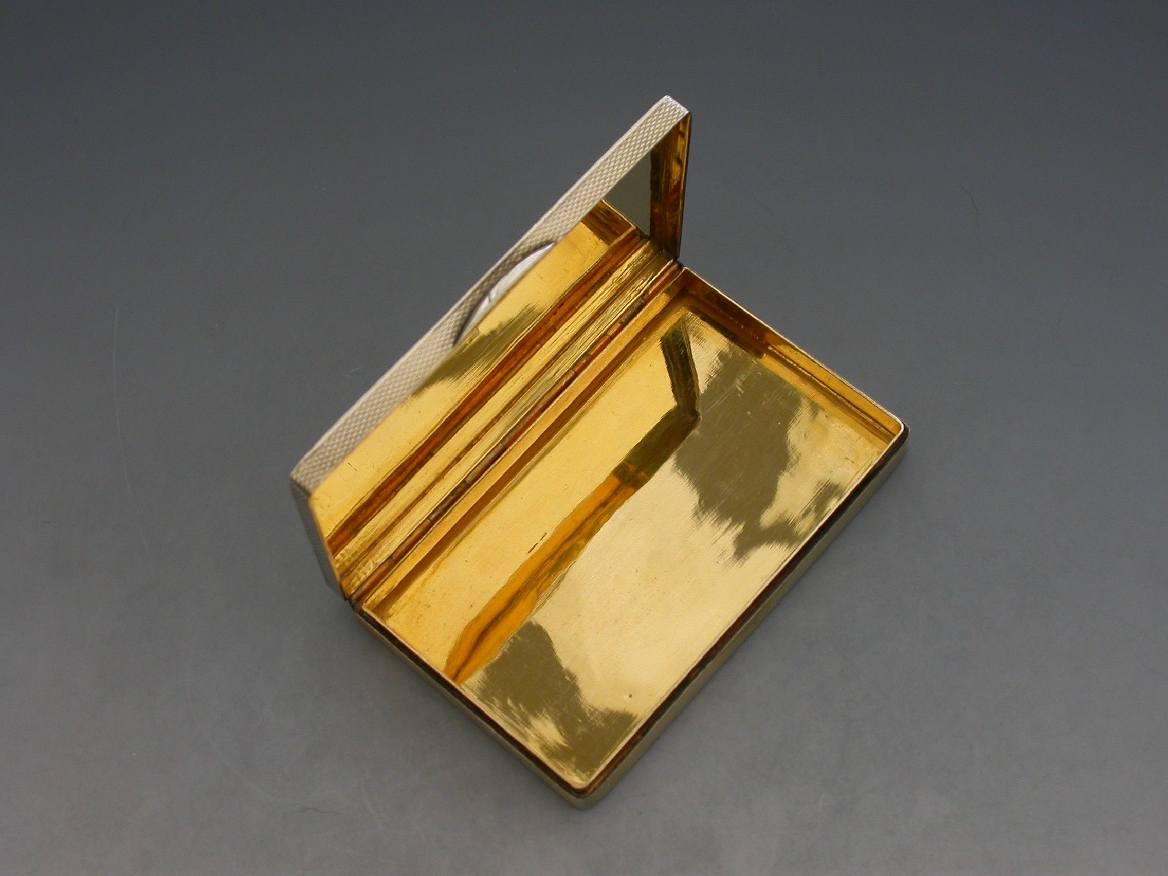A rare early 20th century silver and enamel Snuff Box of rectangular form with engine turned base and sides, the lid inset with an enamel panel depicting a satirical cartoon by H M Bateman. Hinged lid and silver gilt interior.