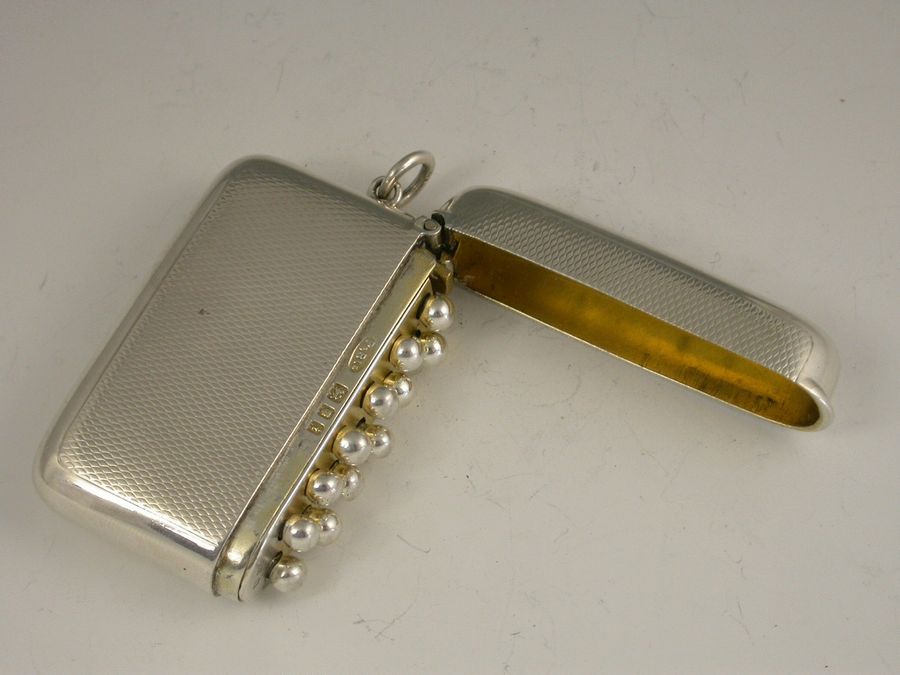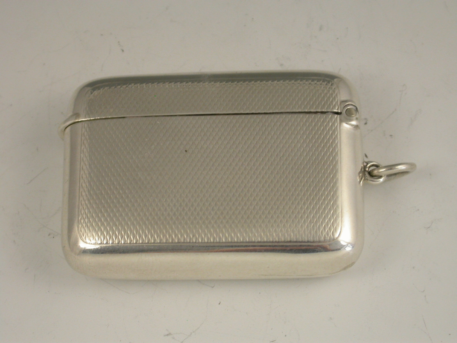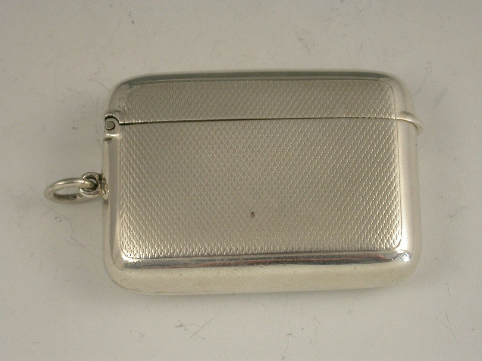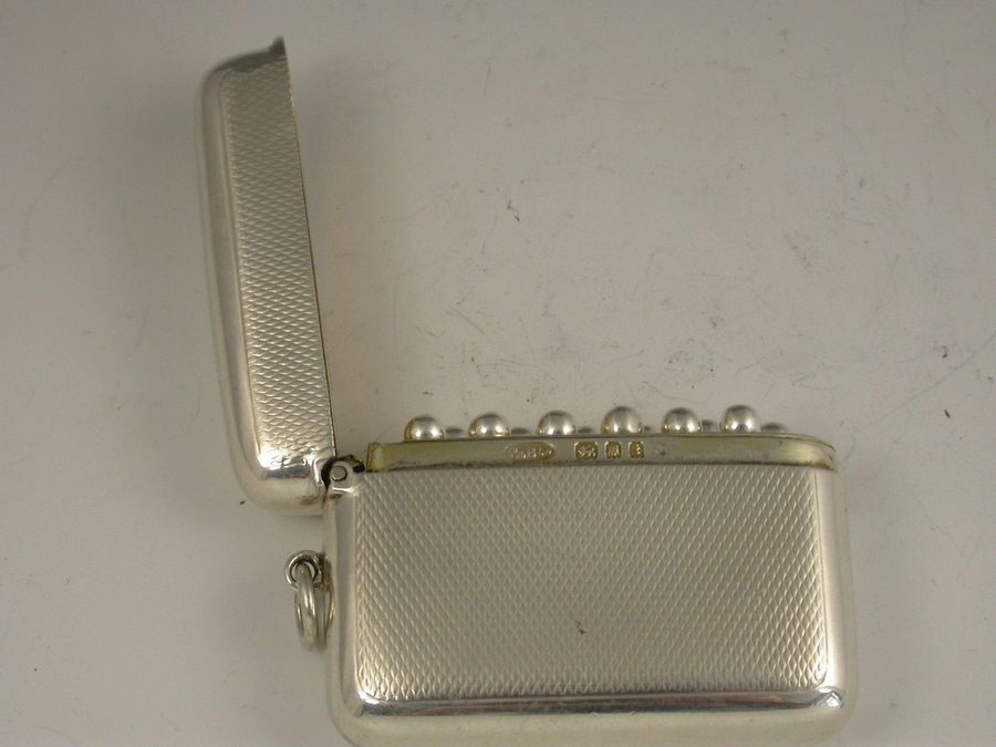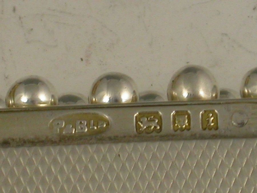 A good quality George V silver Butt Marker of rounded rectangular form and hinged flip top lid, engine turned decoration to the body, silver gilt interior fitted with twelve pegs with ball finials, numbered to eight with four spares.