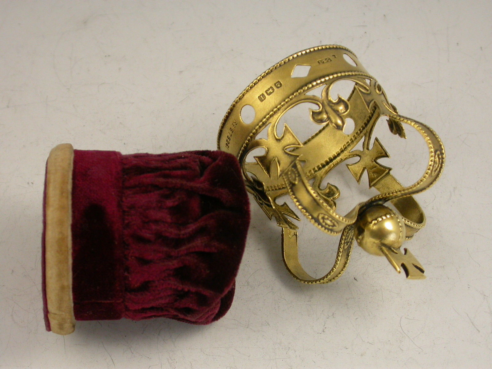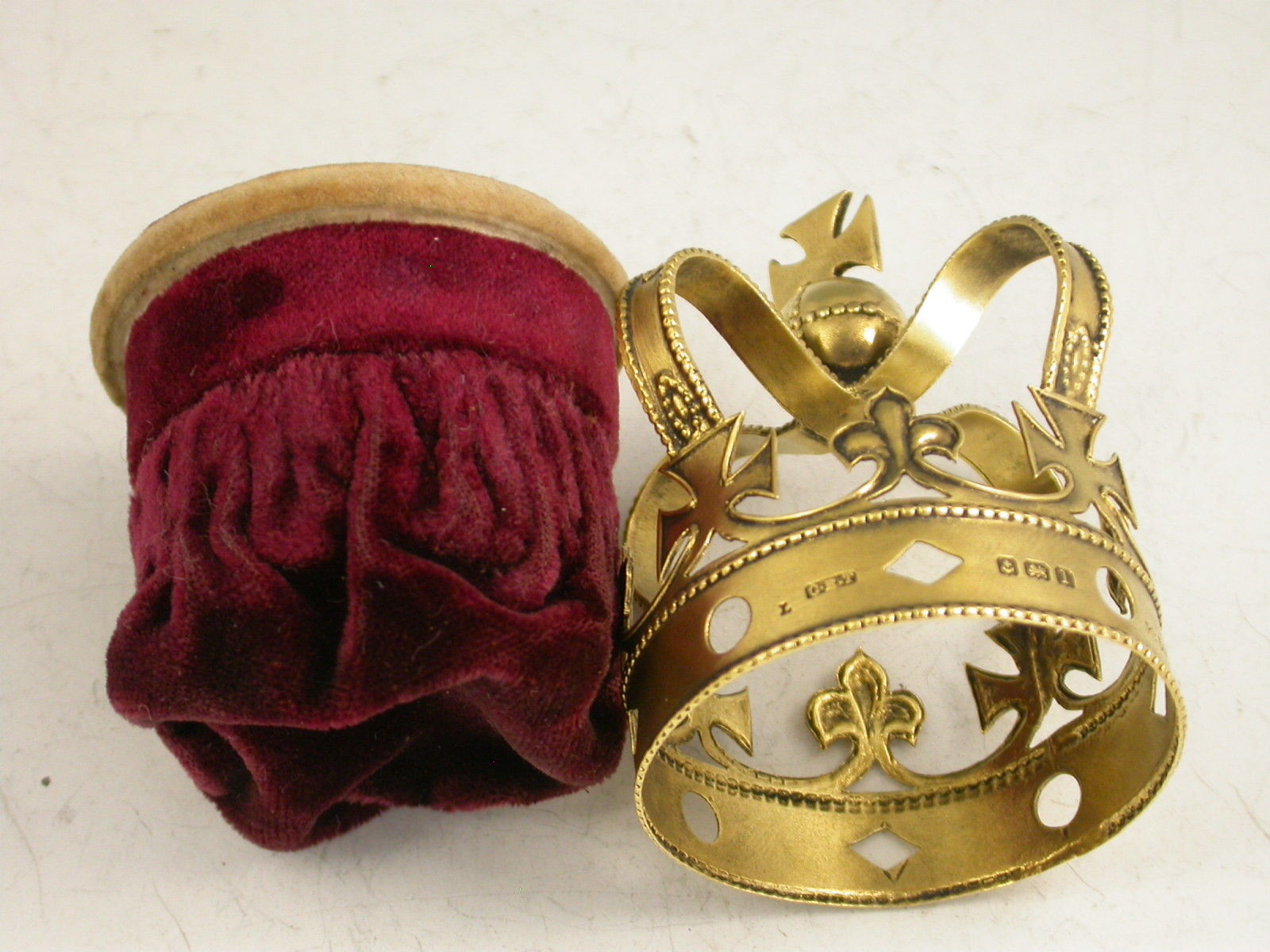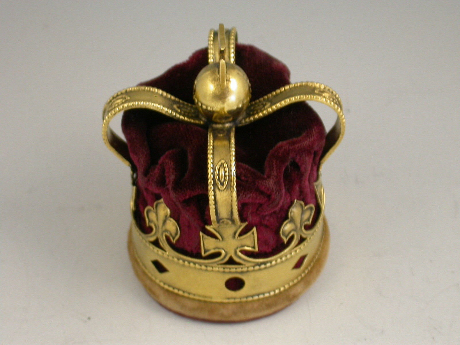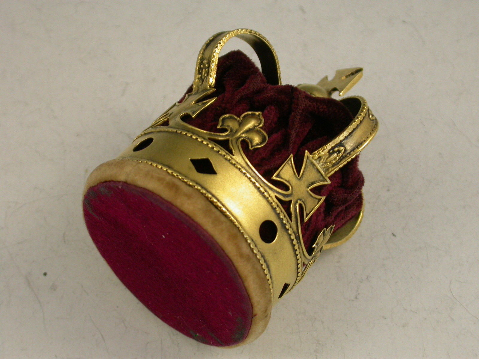 An early 20th century silver gilt and velvet Pin Cushion formed as the Coronation Crown of George V. Complete with original burgundy coloured velvet cushion.